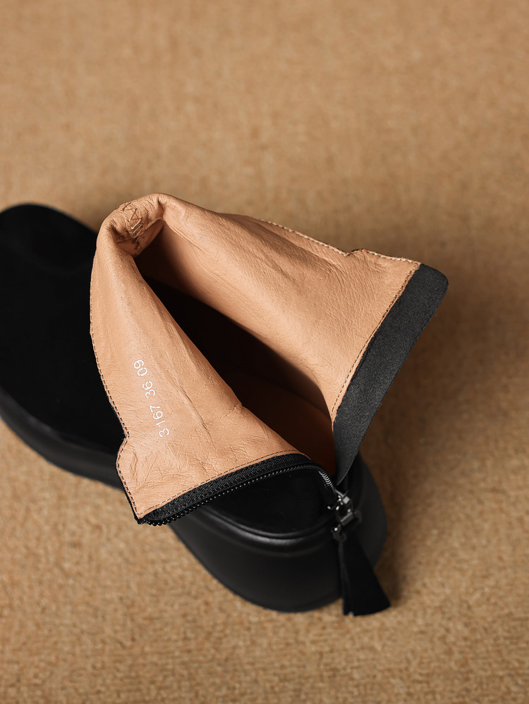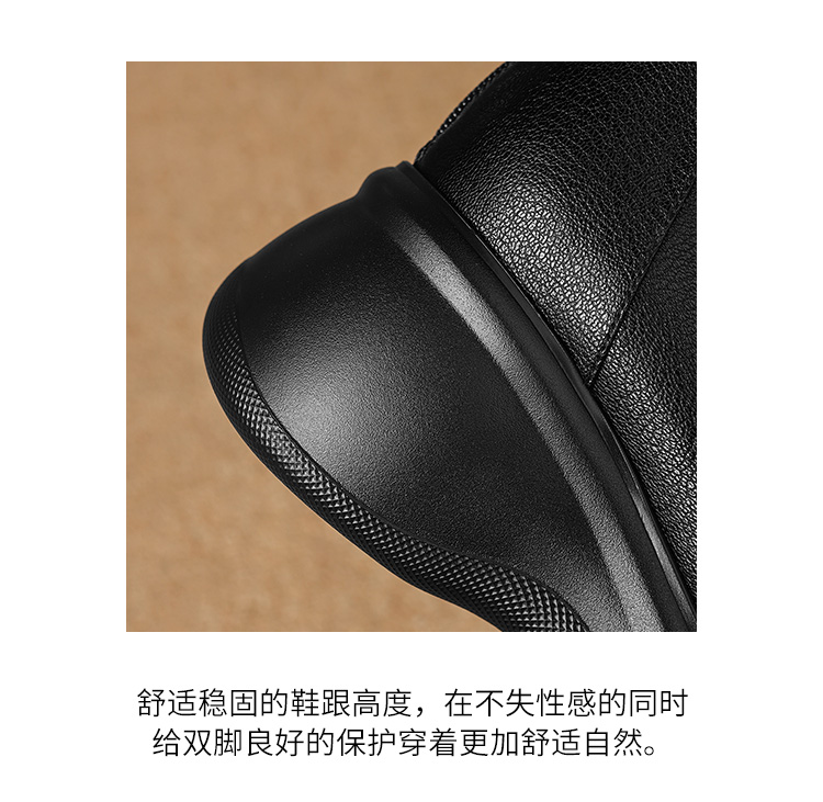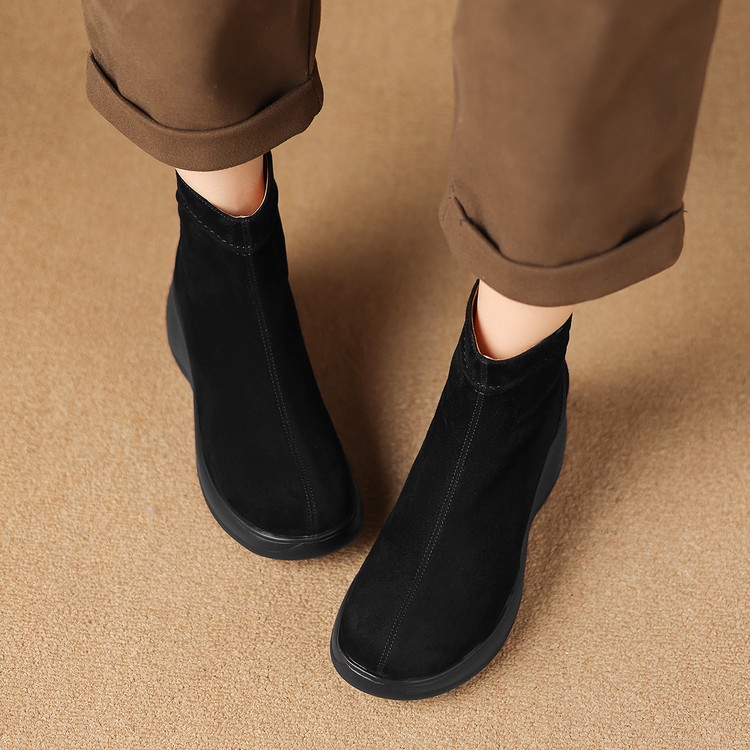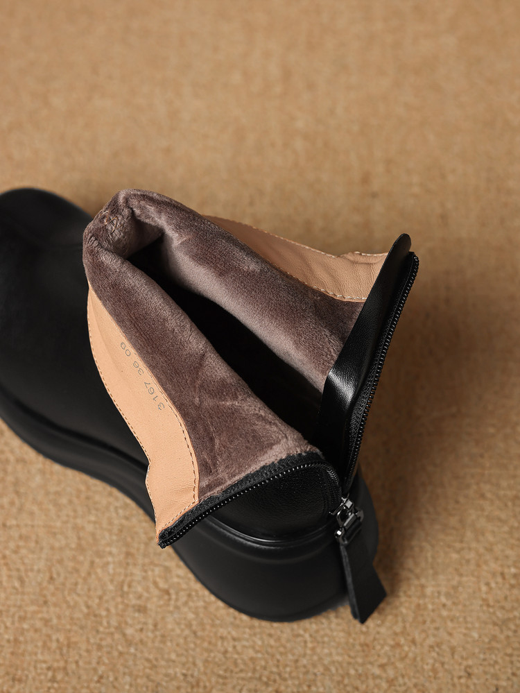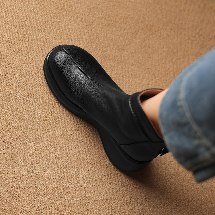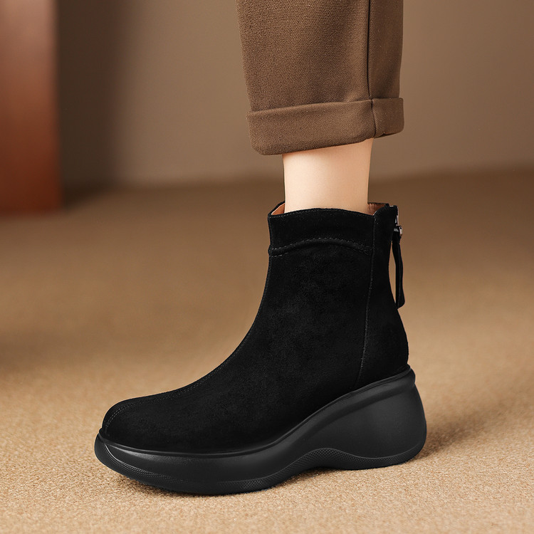 【预售5天】复古风真皮圆头厚底松糕短靴女新款百搭增高休闲马丁靴ASN&3167
