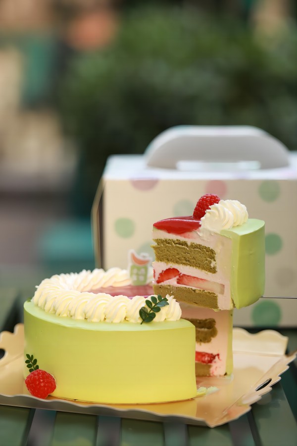特调开心覆盆子蛋糕:用开心果酱做的特调法国奶油包裹着覆盆子草莓果酱蛋糕,适合所有年龄段吃货。蛋糕三分坚果香气七分莓果酸甜的迂回交错,能让您在一小口一小口的慢慢品尝里完成一次短途的味蕾旅行。