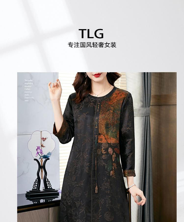 TK-8061 连衣裙长袖旗袍秋装洋气复古刺绣长裙
