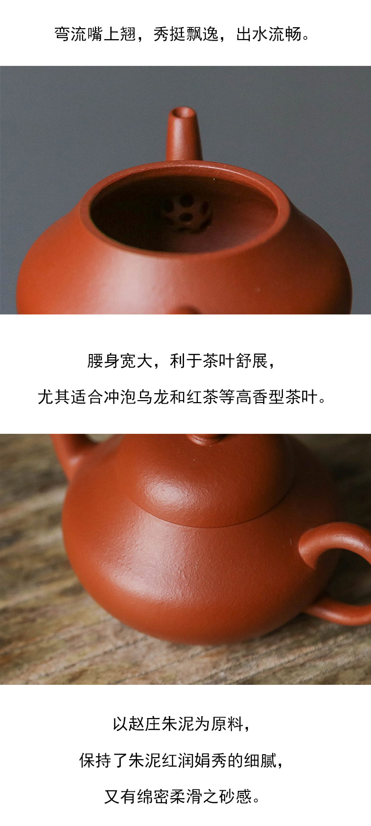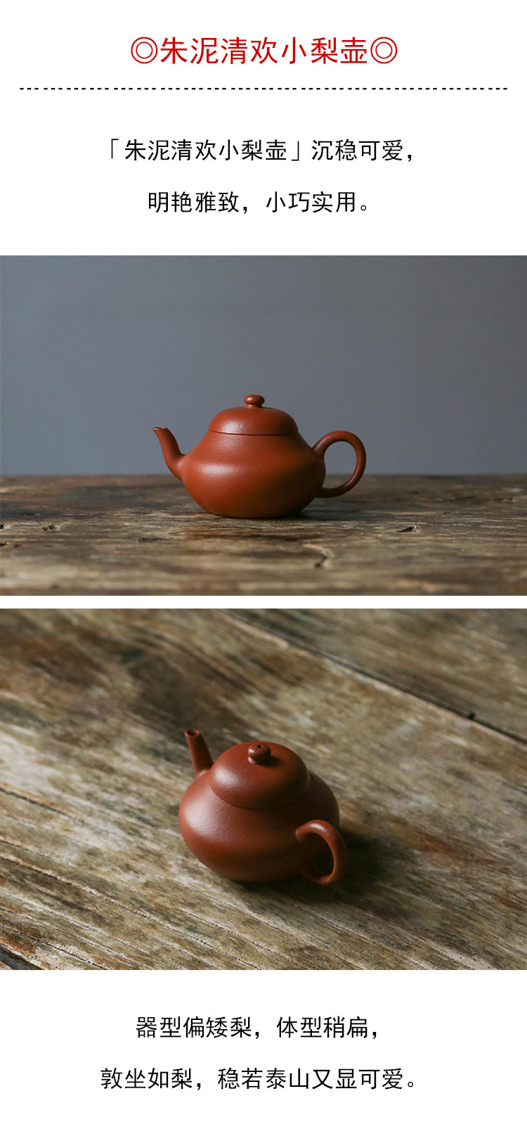 茶香记 紫砂壶朱泥清欢小梨壶80ml经典器型小巧可爱茶壶明艳古雅