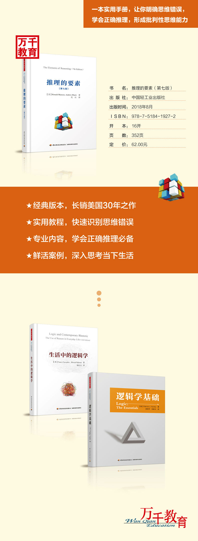 鲜活的例子和习题是本书的另一大特色。书中大量的例子和习题直接取材于当下社会,呼应对现实问题的思考,帮助读者将掌握的推理知识运用于日常生活。