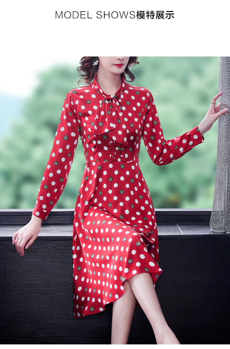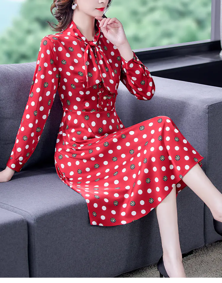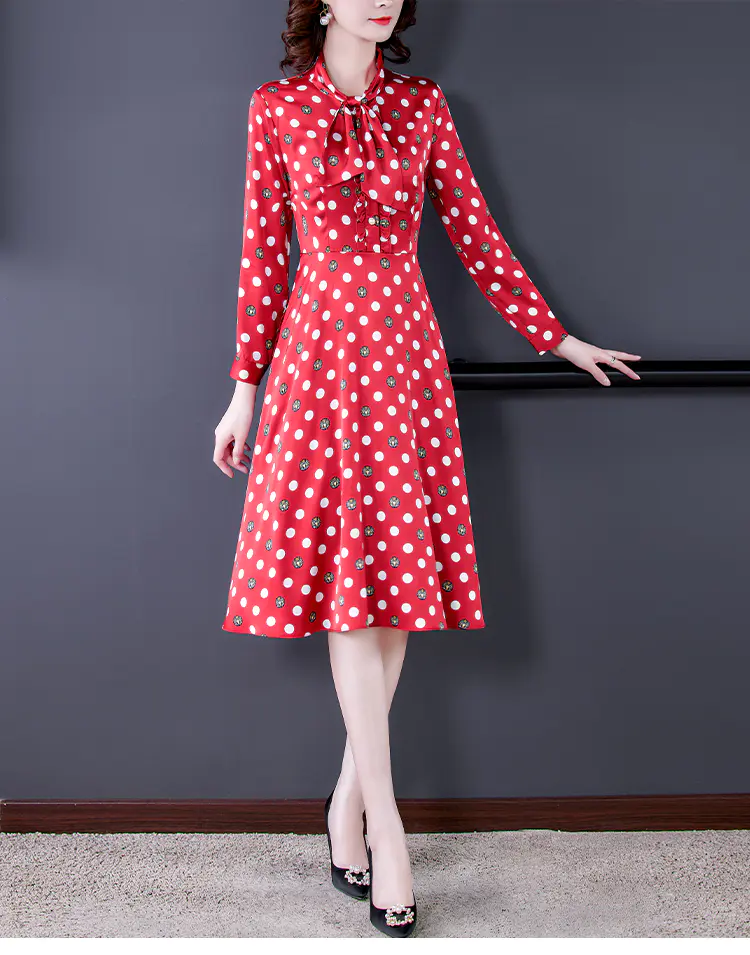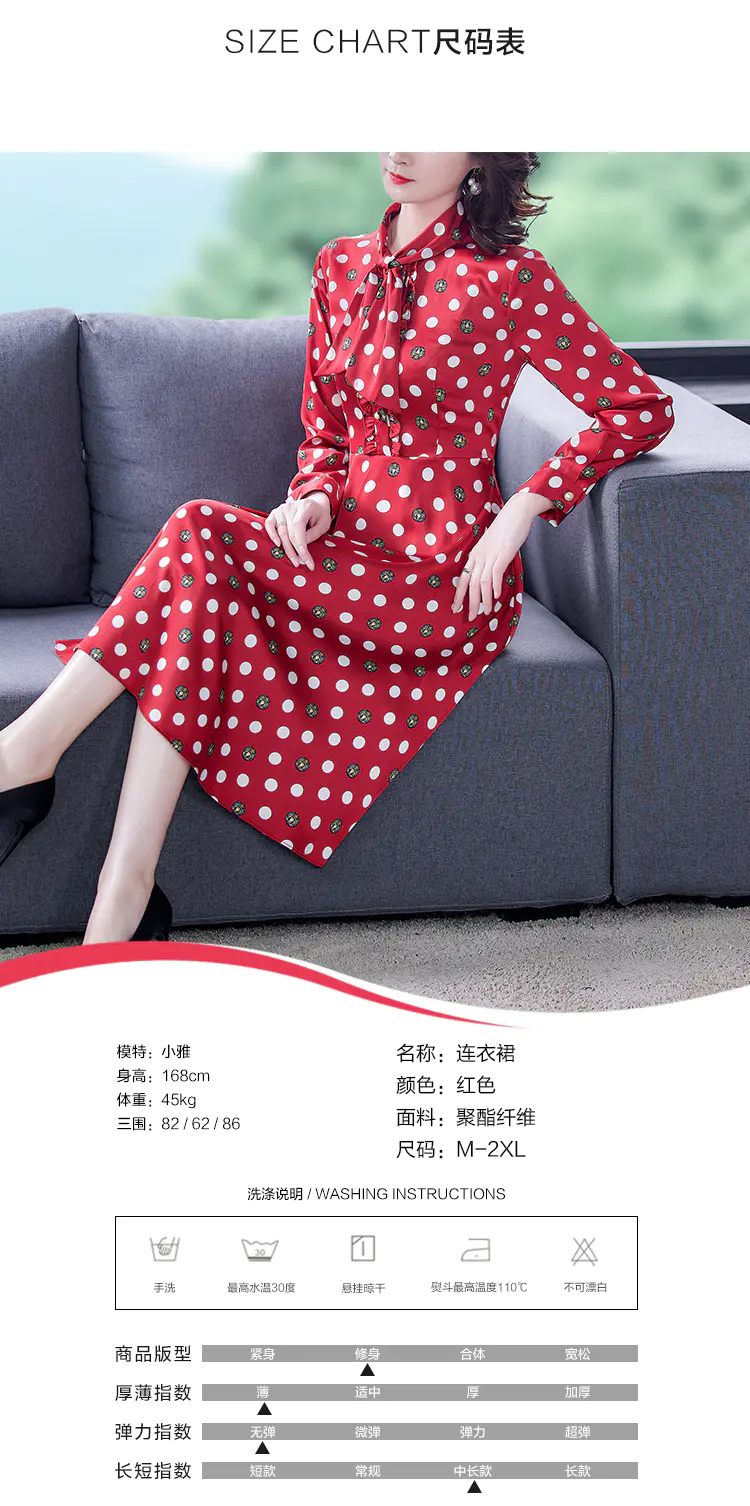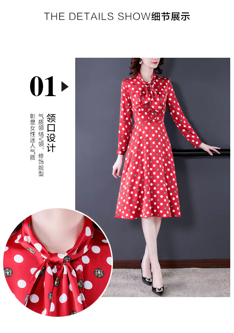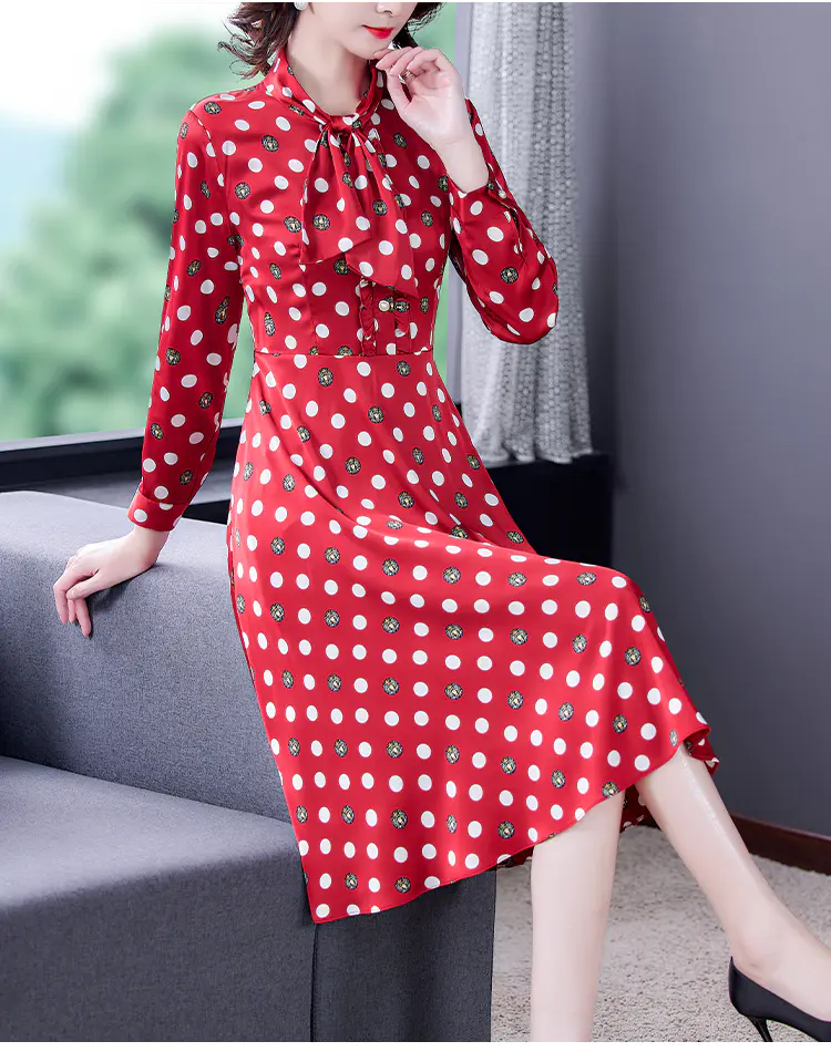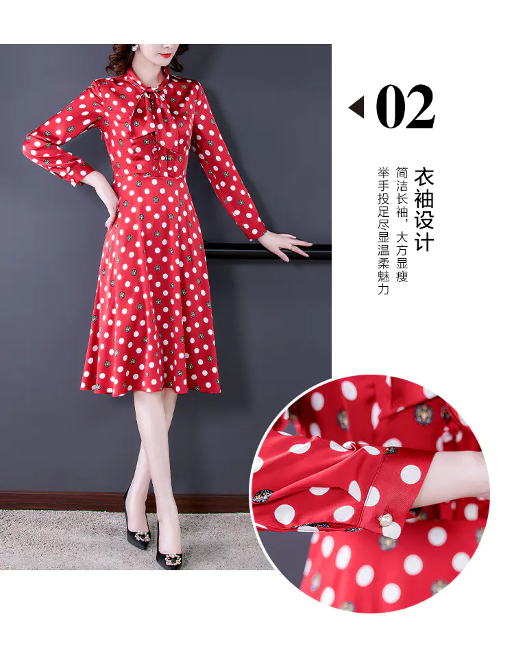 KLJ2184 2021新款春装收腰显瘦气质波点印花名媛连衣裙