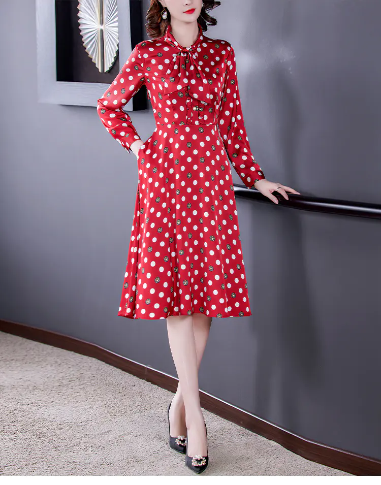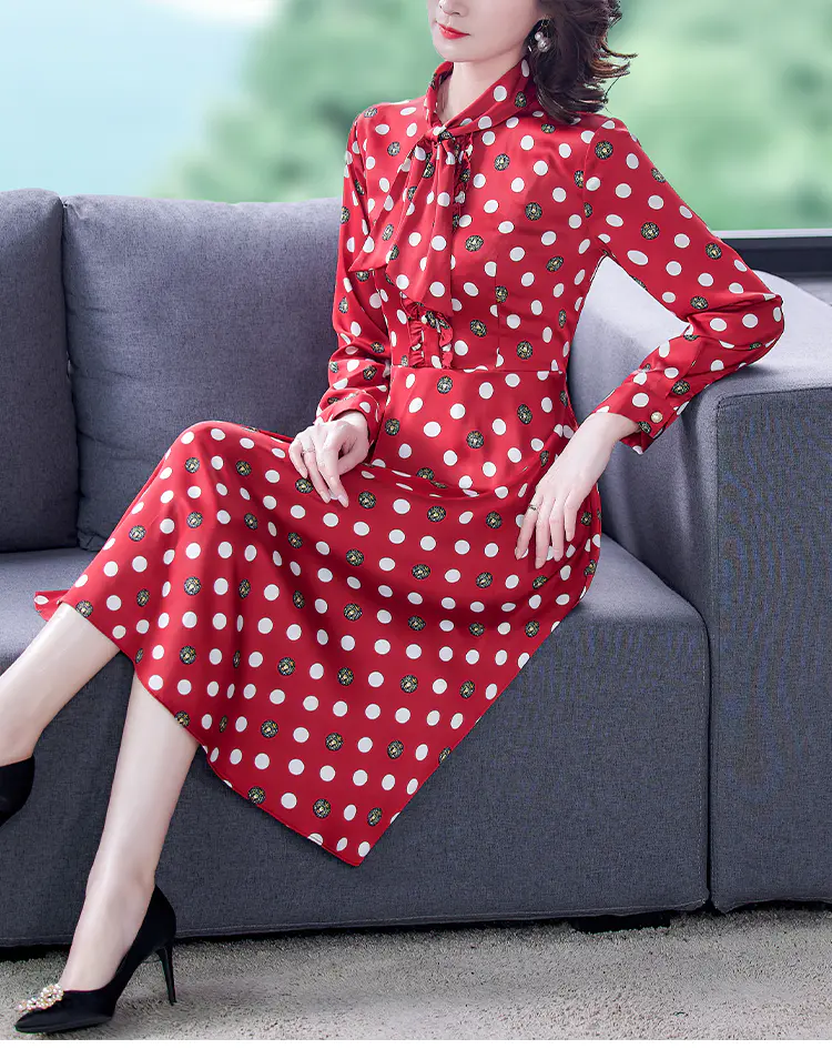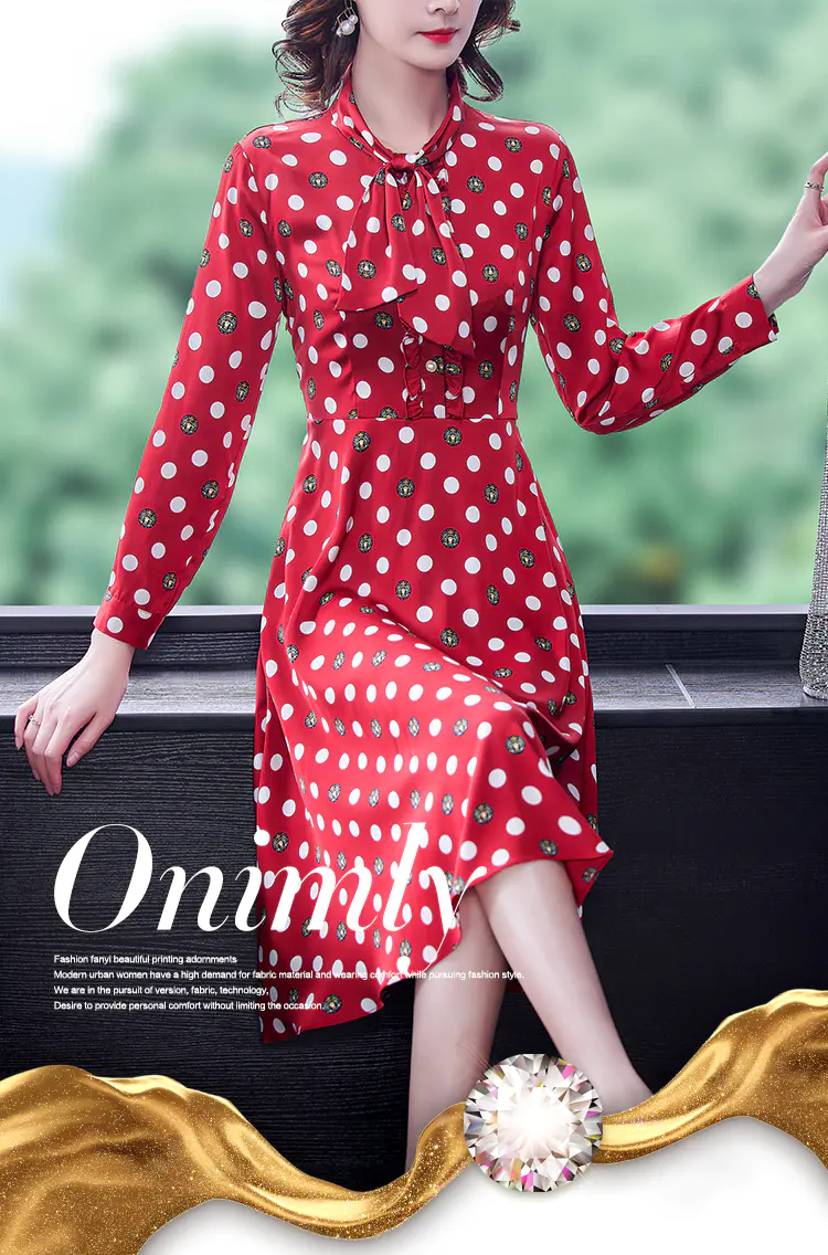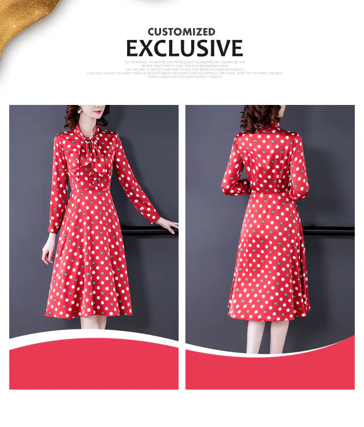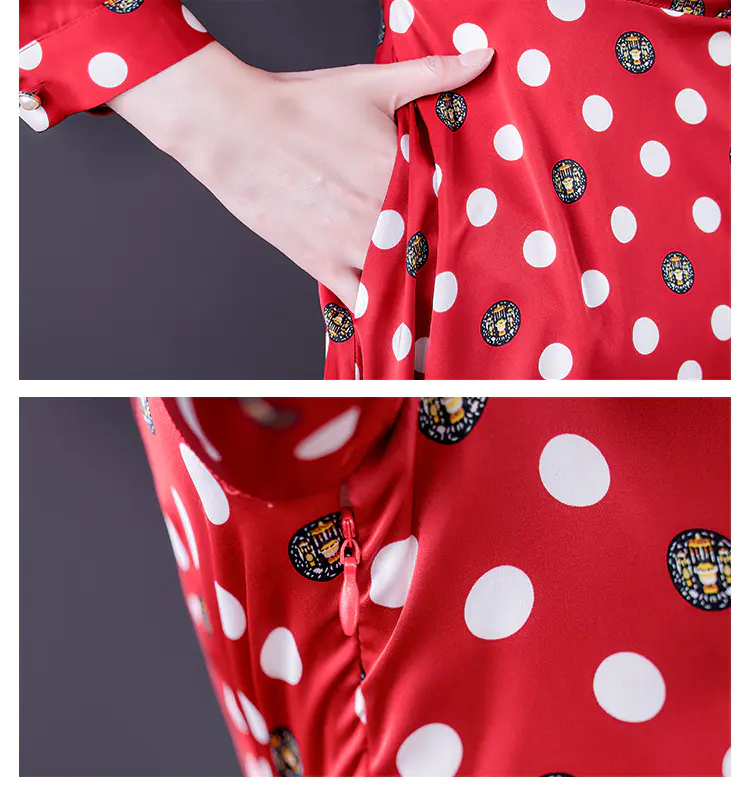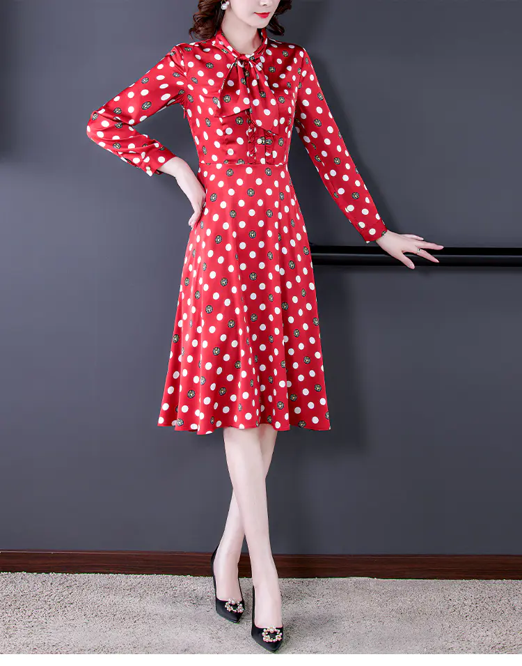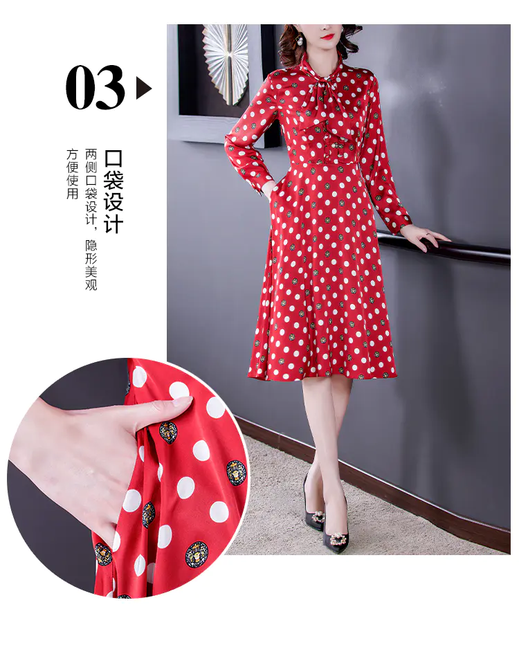 KLJ2184 2021新款春装收腰显瘦气质波点印花名媛连衣裙
