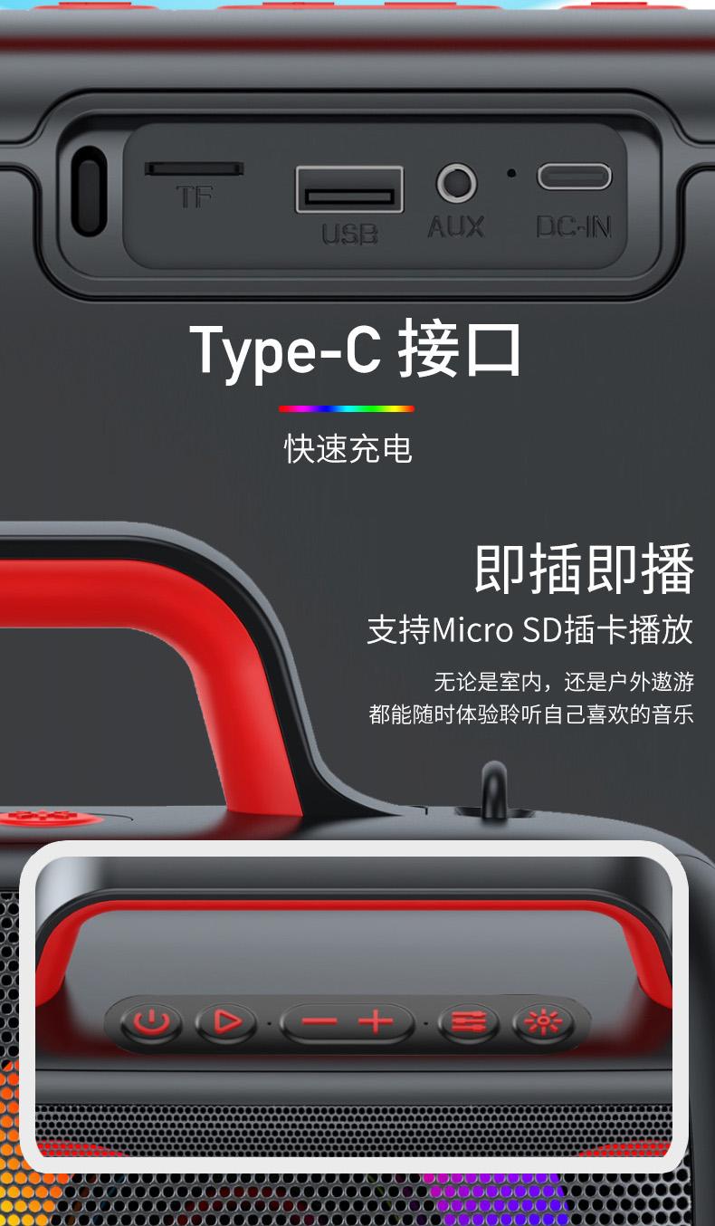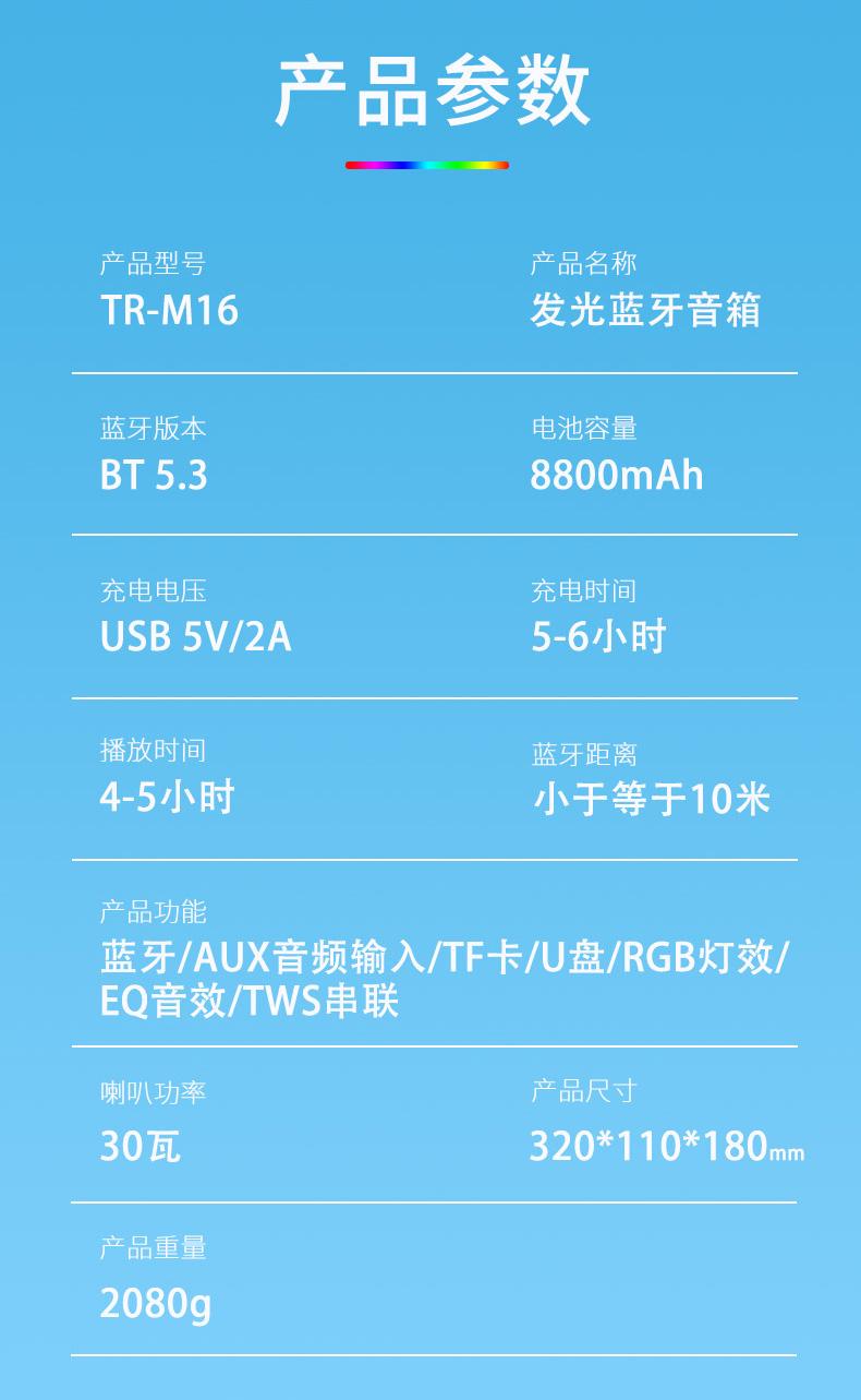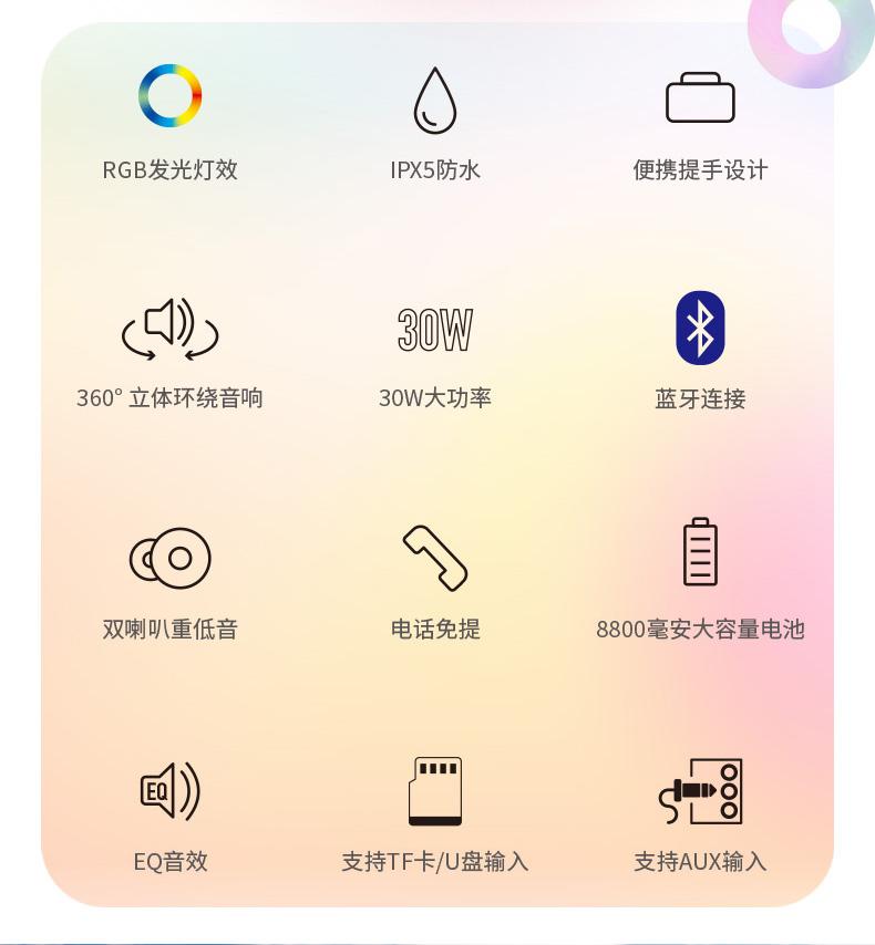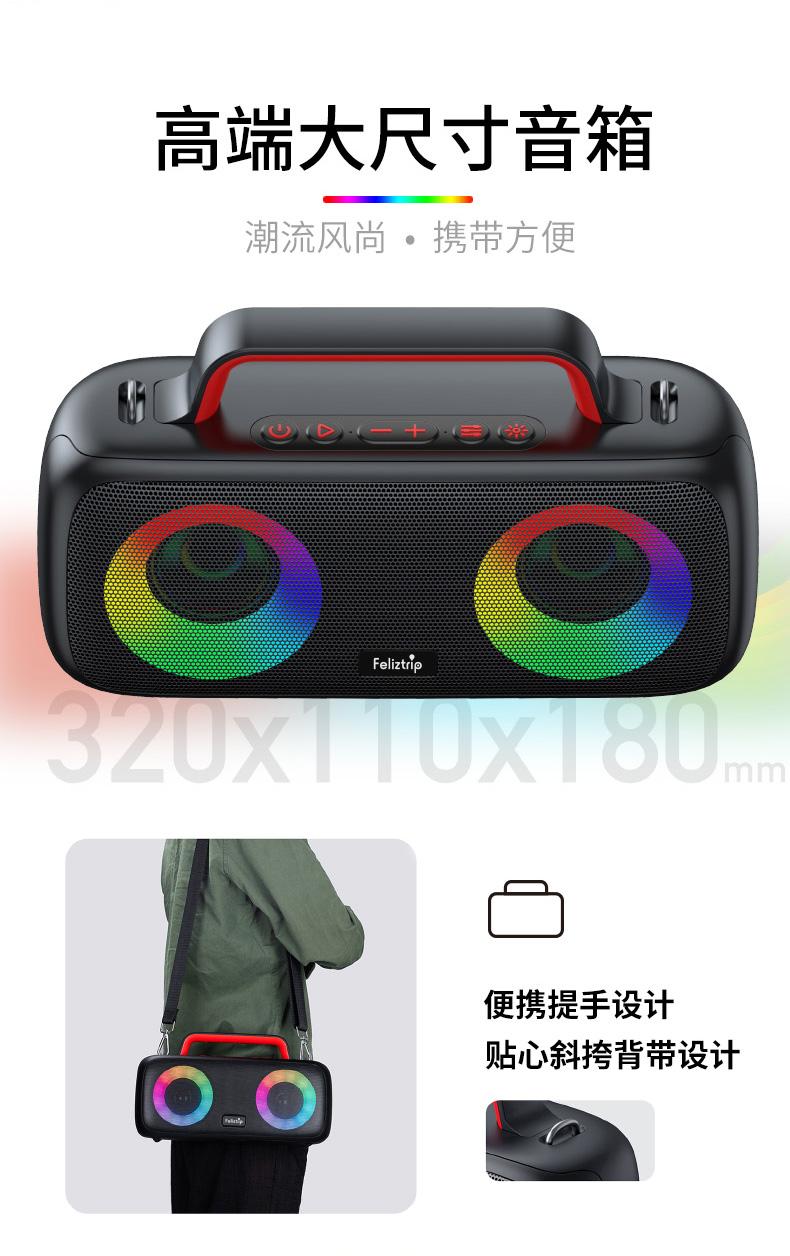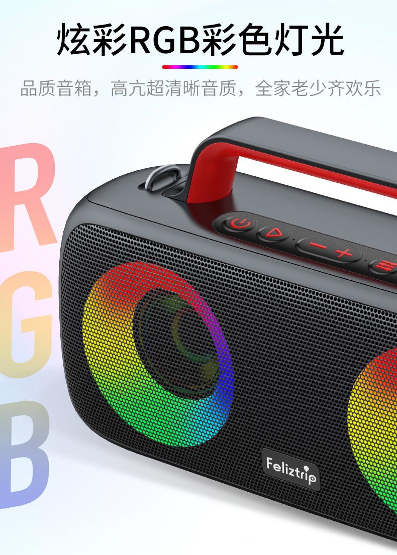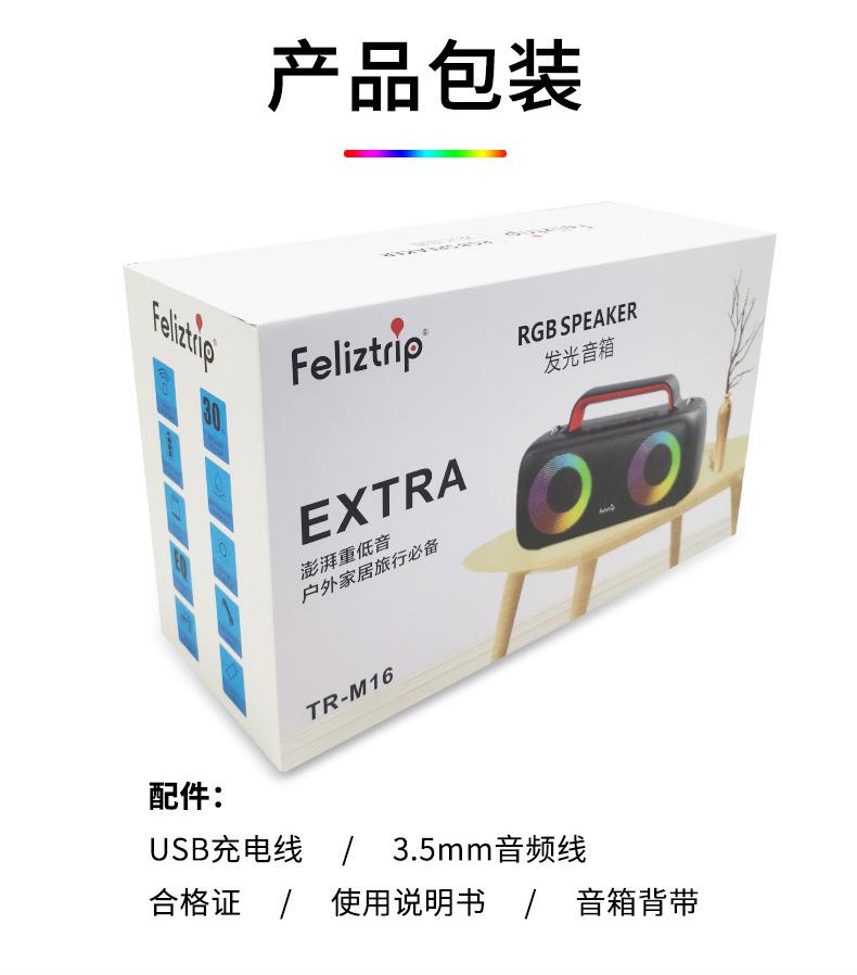 Feliztrip斐利斯 30瓦大功率RGB发光蓝牙音箱 可通话 TF卡/U盘/AUX模式 5级防水 TR-M16