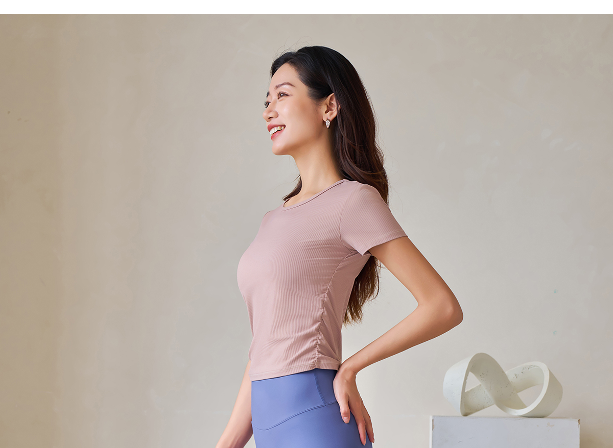 春夏lulu条纹显瘦瑜伽服短袖女专业健身衣运动T恤速干普拉提上衣A25189NSL