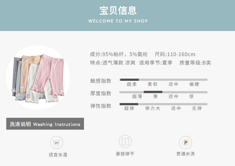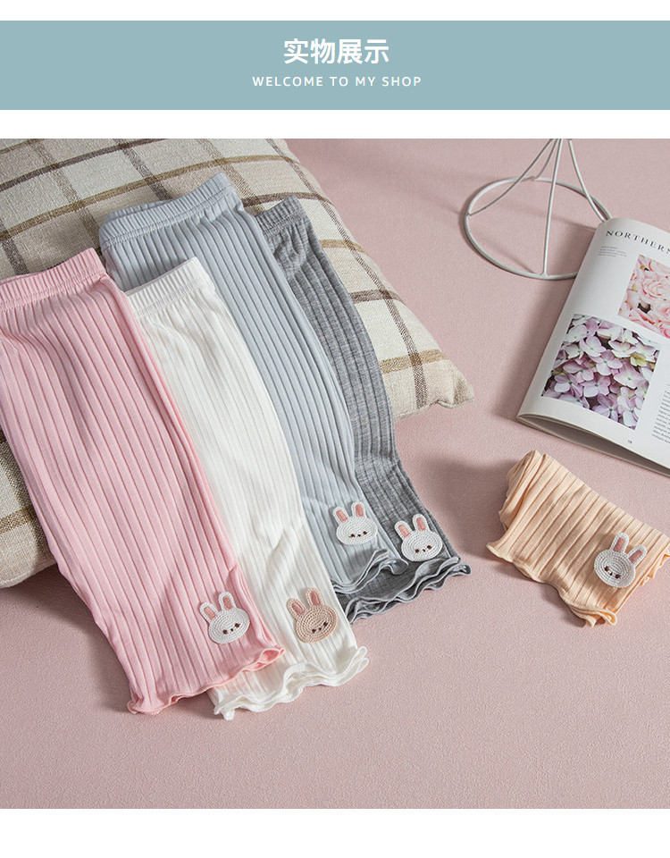 【薄款五分裤,可爱兔子图案~】女童打底裤五分裤 夏季薄款可爱兔子打底短裤 安全裤外穿中裤-QQ