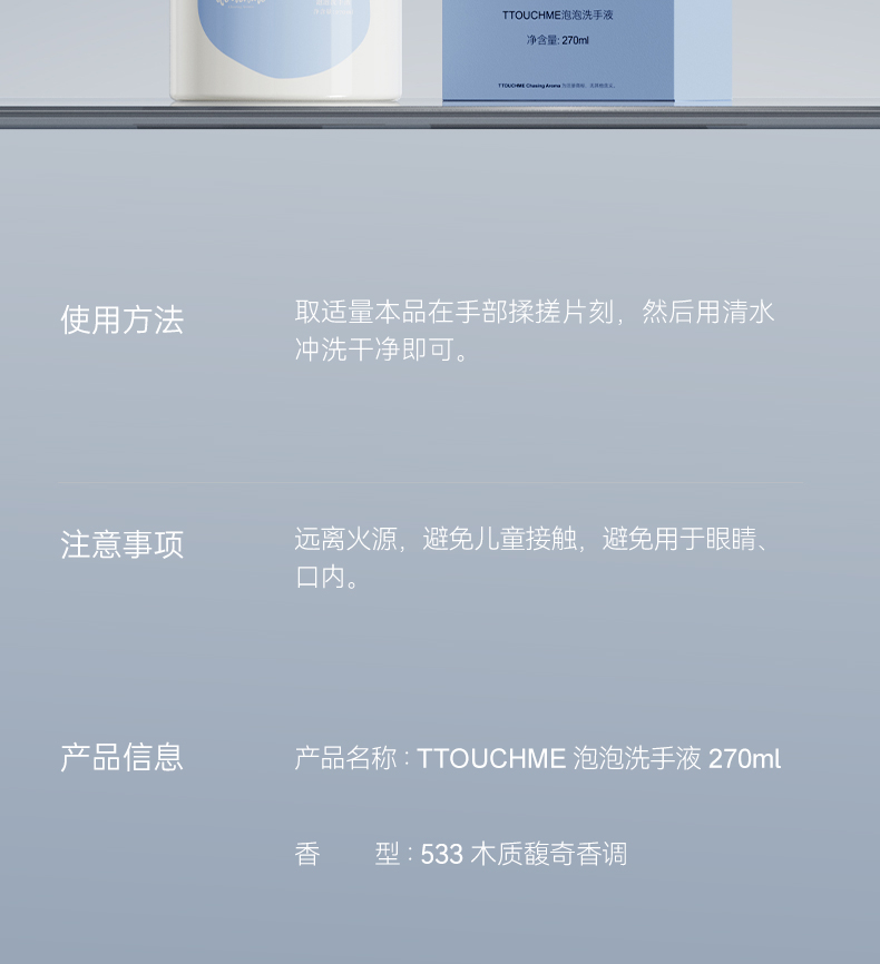 【19.9加购】TTOUCHME泡泡洗手液泡沫型洗手液 一泵出泡 533木质馥奇香270ml
