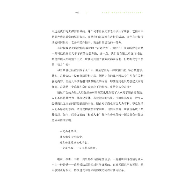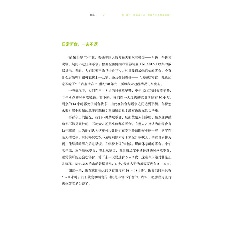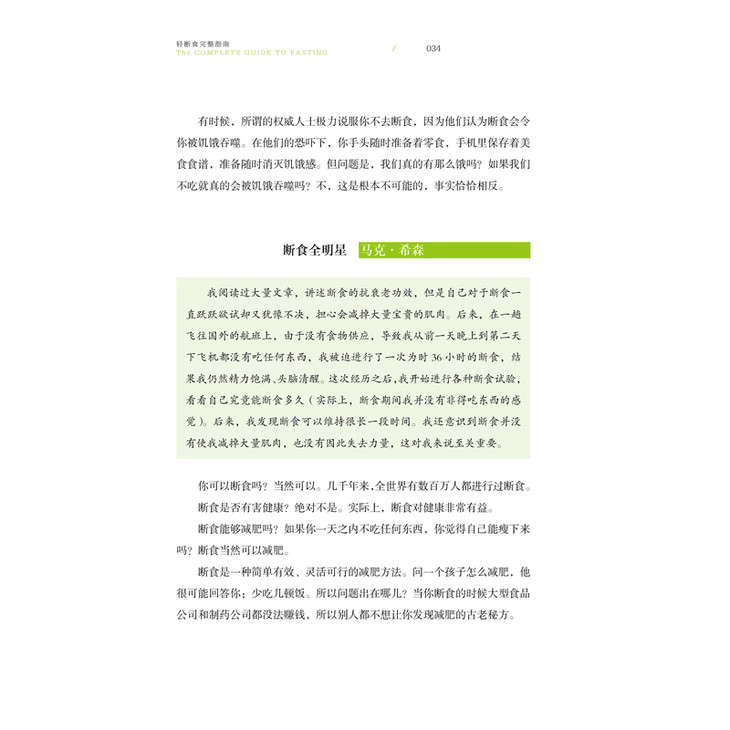 在《轻断食完整指南》中,著名医生杰森·冯博士和畅销书作者吉米·摩尔通过大量的科学权威证明,得出了:传统的少吃多动的减肥方式,效果并不好,而且容易反弹;而常伴有肥胖症状的2型糖尿病,通过补充胰岛素来治疗,只能是越来越严重。肥胖和2型糖尿病的罪魁祸首,是你体内的胰岛素水平太高了!你只要通过轻断食饮食法,降低体内的胰岛素水平,肥胖和2型糖尿病就可以分别得到逆转和控制。
