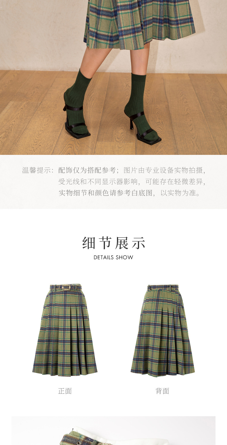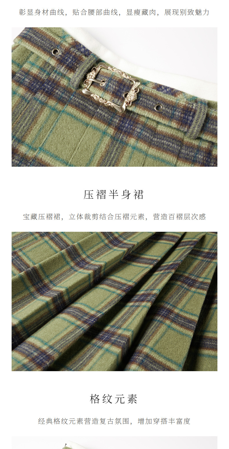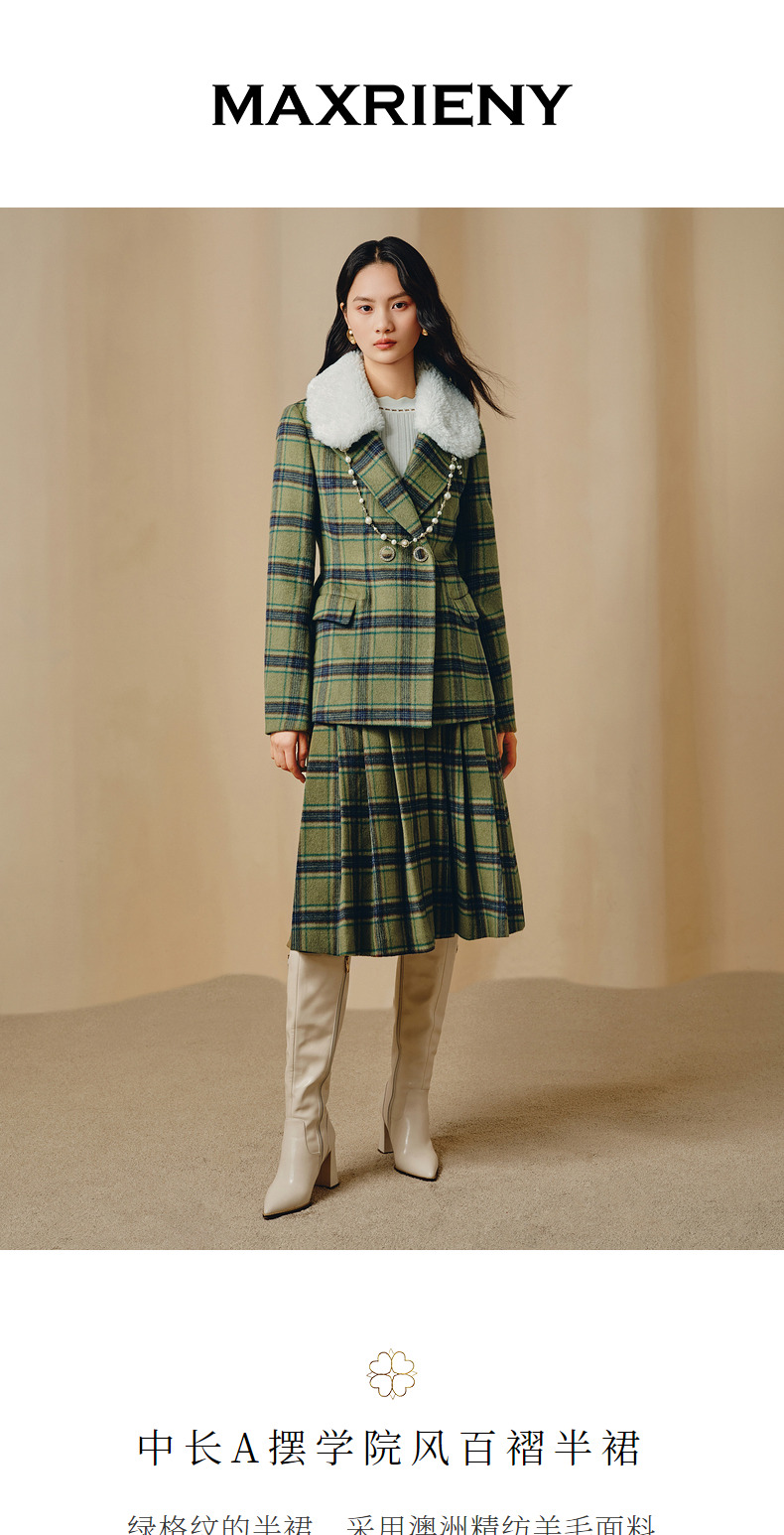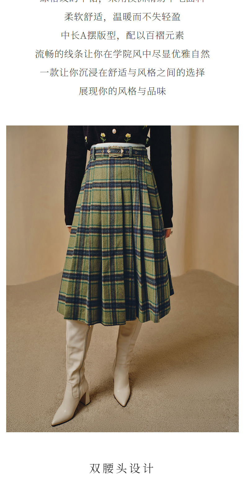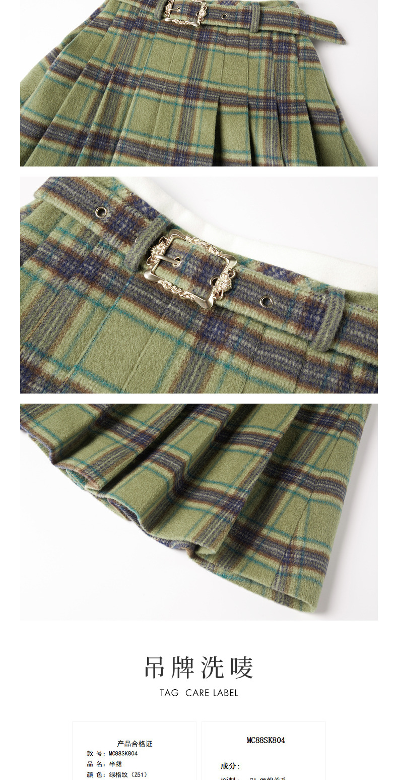 MAXRIENY复古学院风A摆中长格纹百褶半裙冬款羊毛裙(货号:MC88SK804)