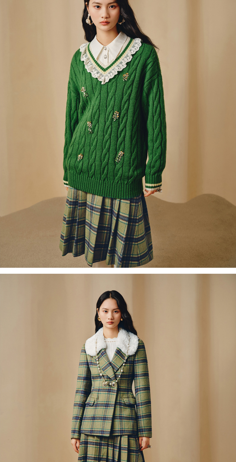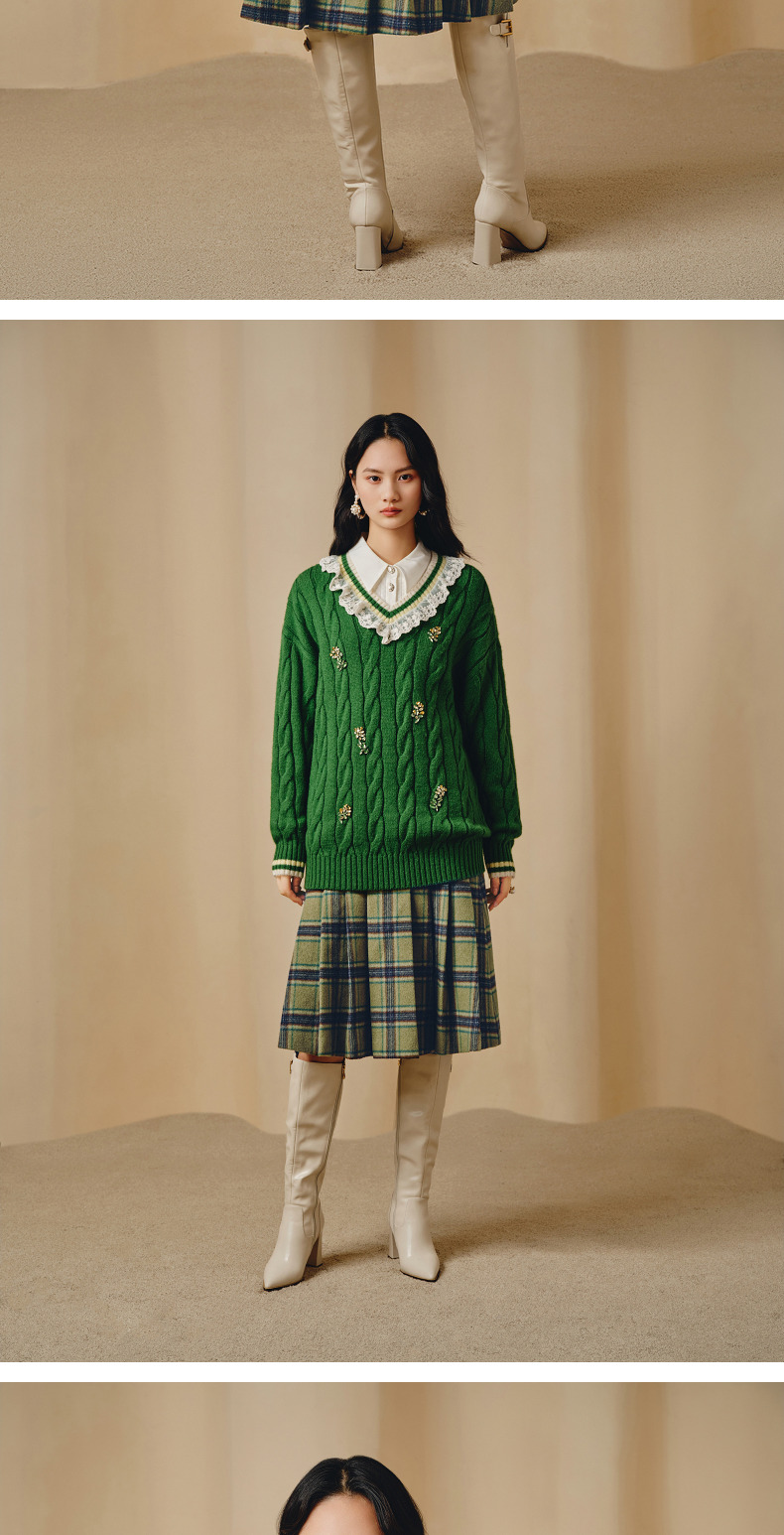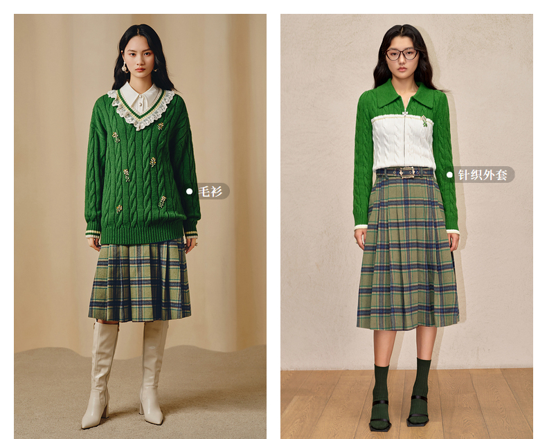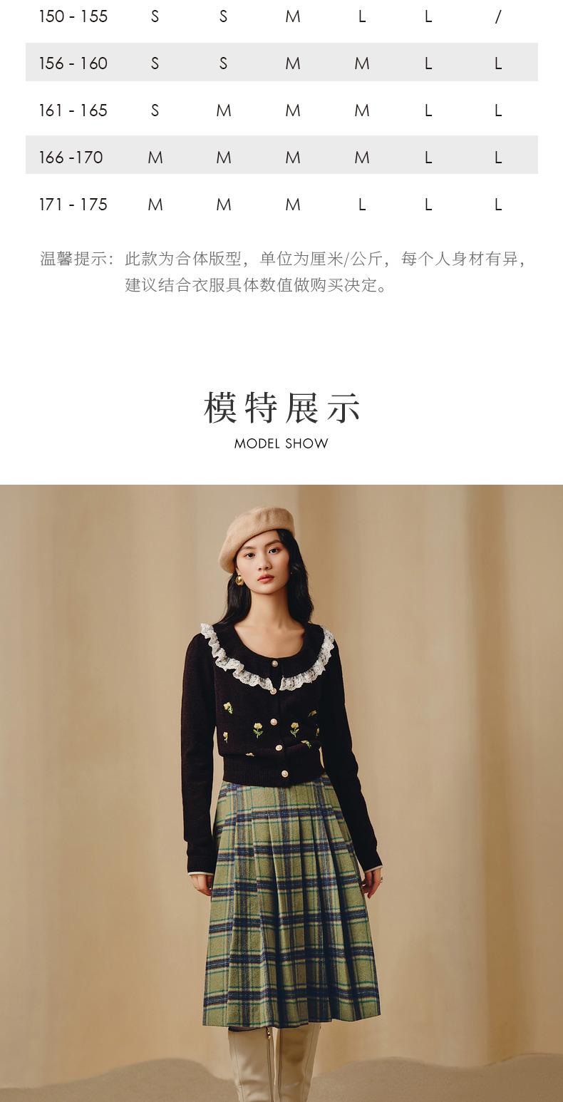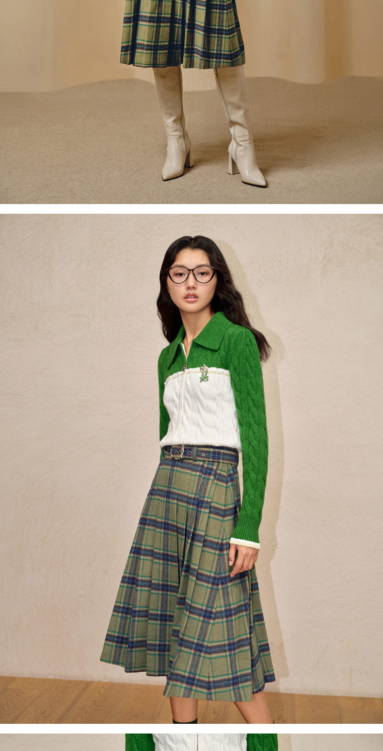 MAXRIENY复古学院风A摆中长格纹百褶半裙冬款羊毛裙(货号:MC88SK804)