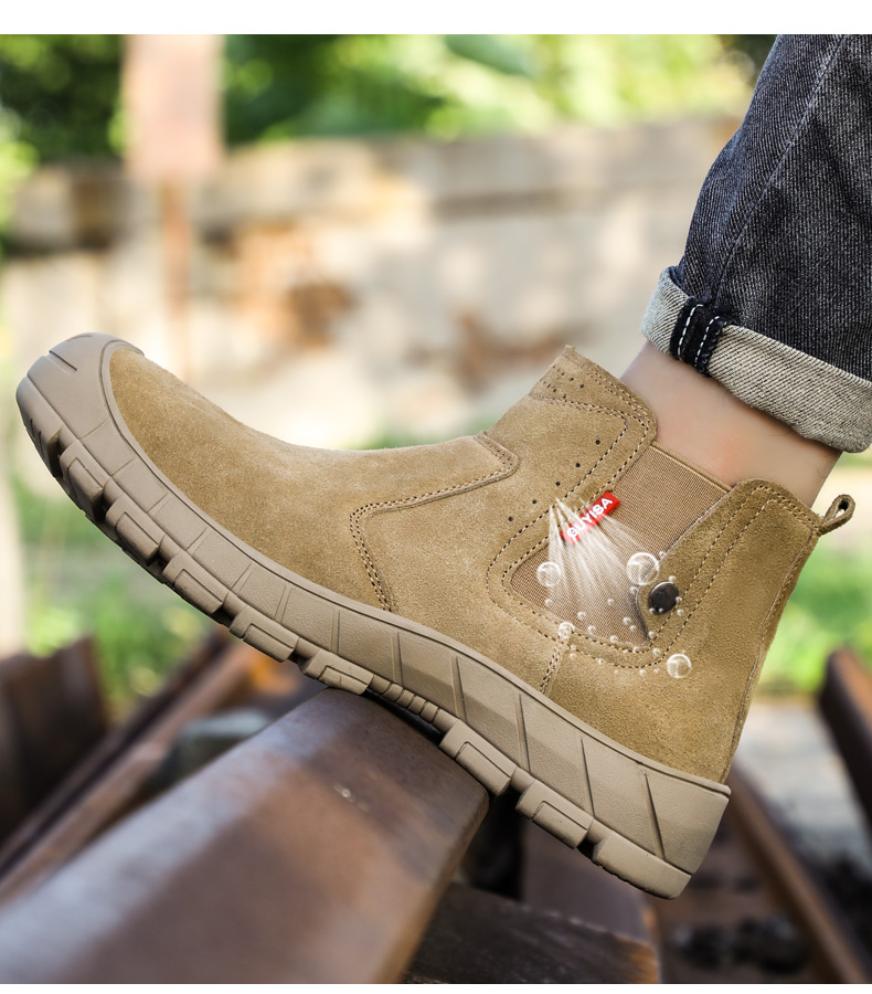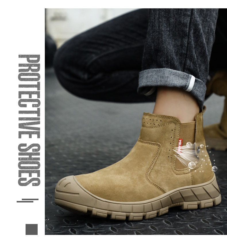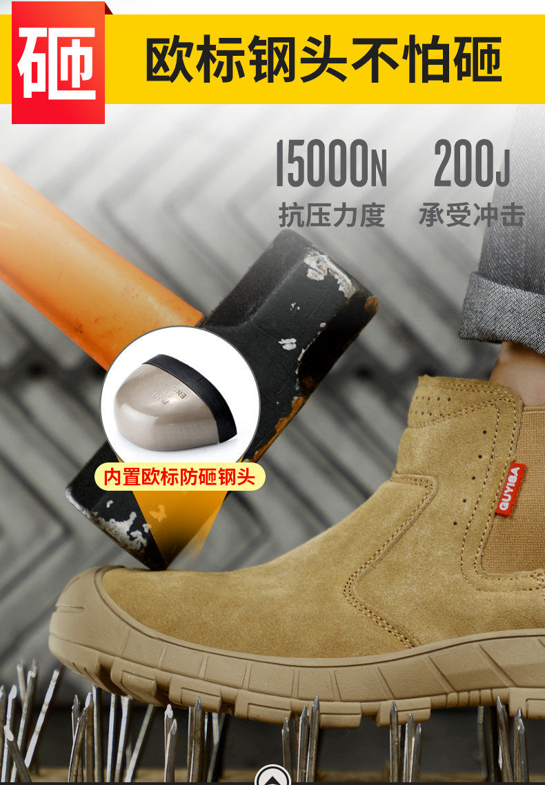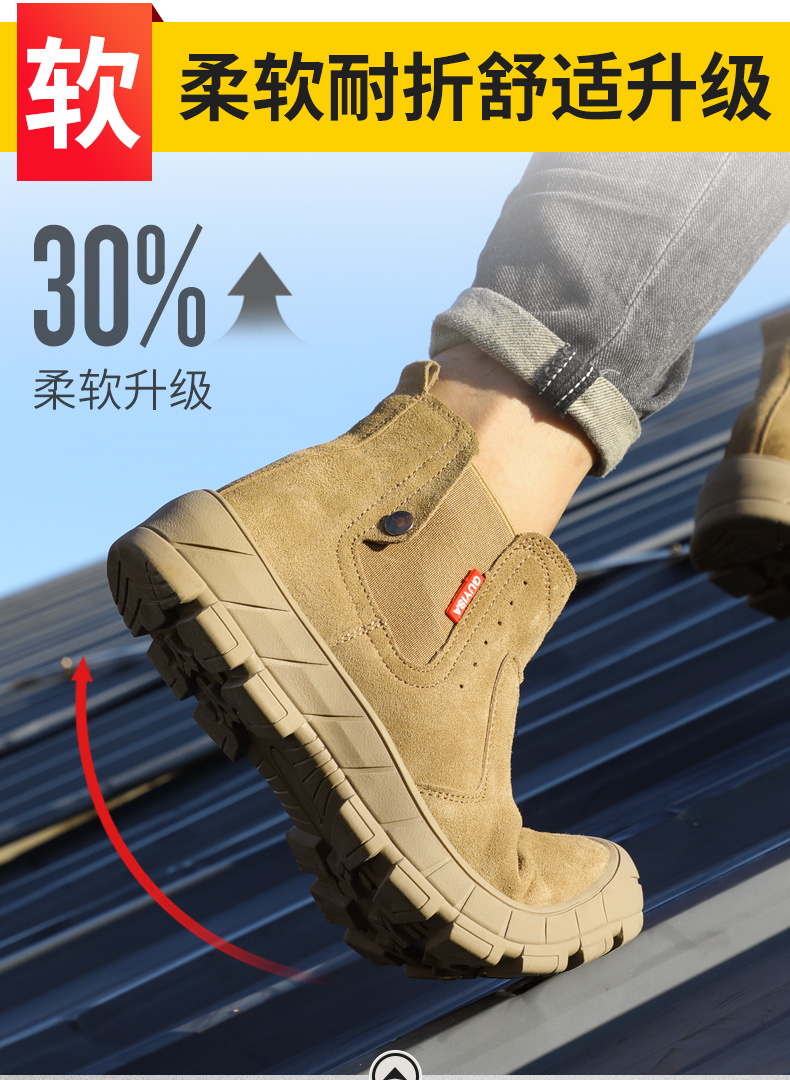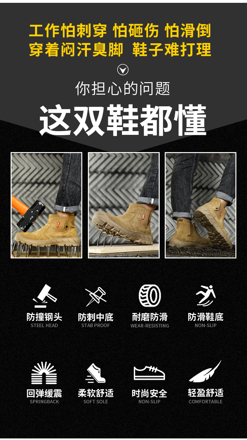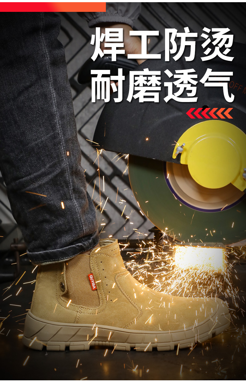 新款焊工劳保鞋男四季款反绒皮透气防砸防刺防烫工作鞋安全鞋钢包头