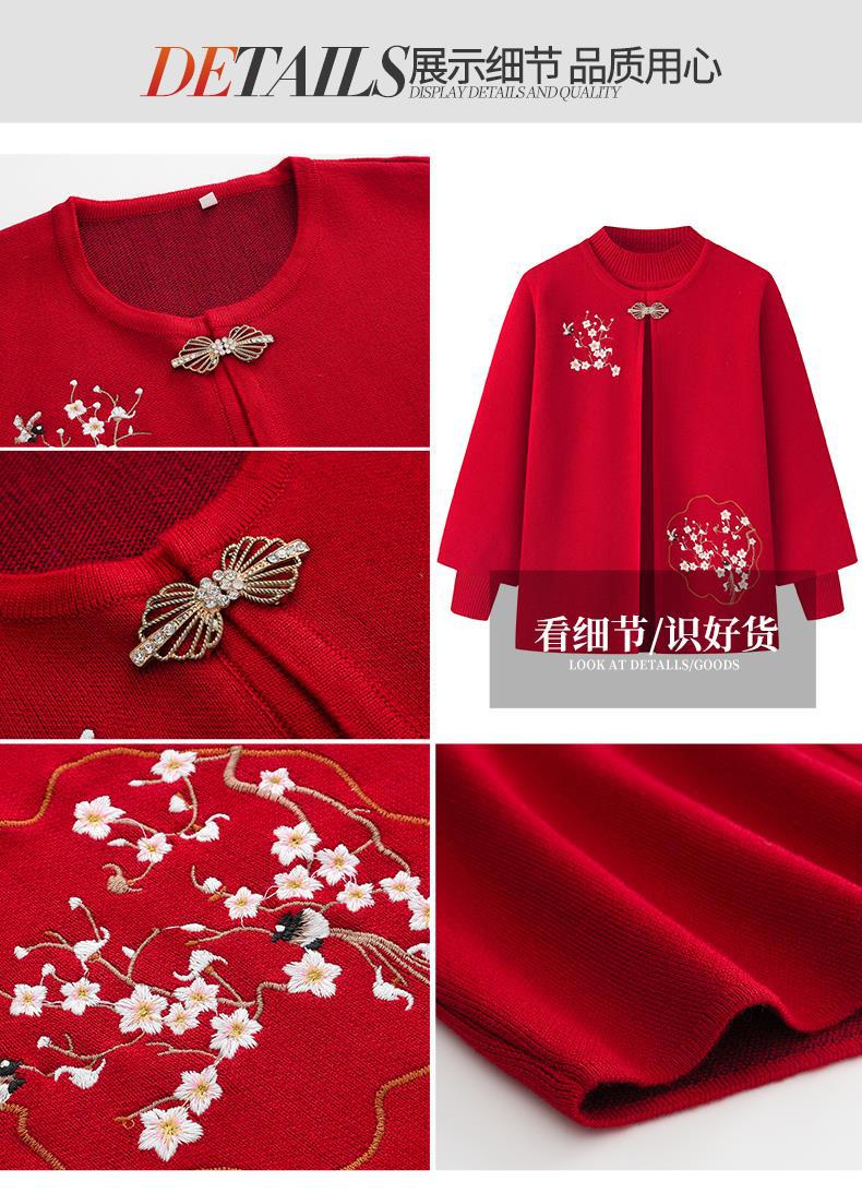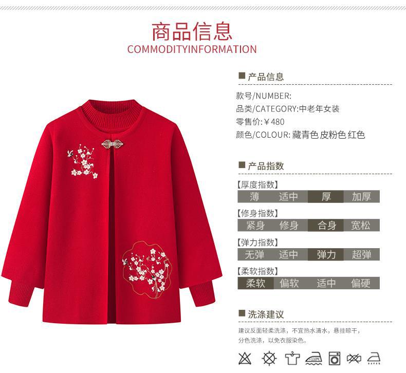 奶奶春秋针织两件套开衫,喜庆婚宴妈妈装外套LX-6117