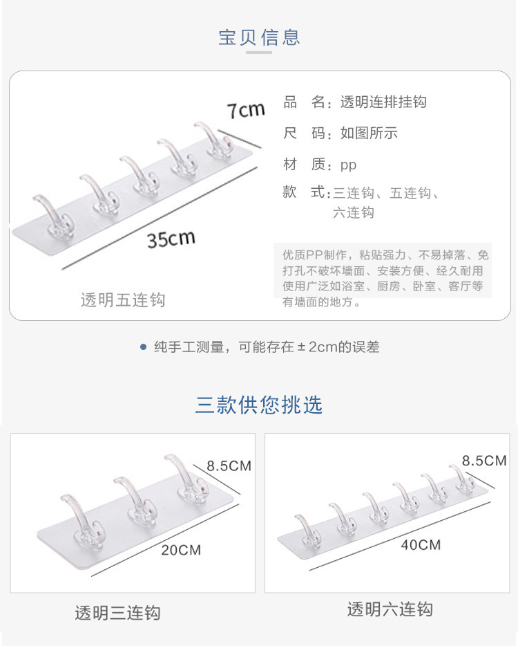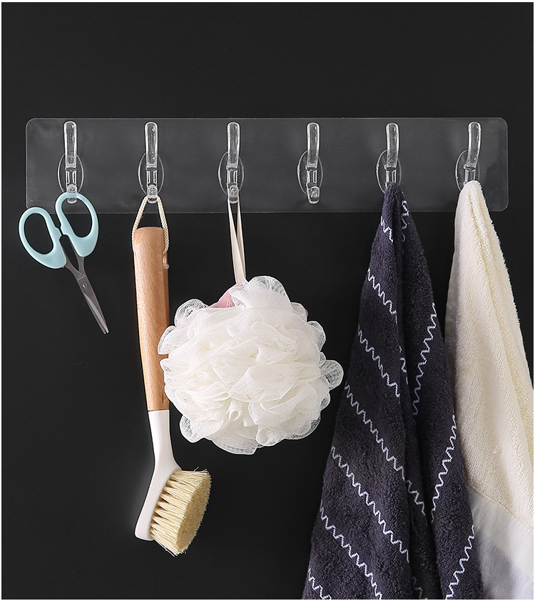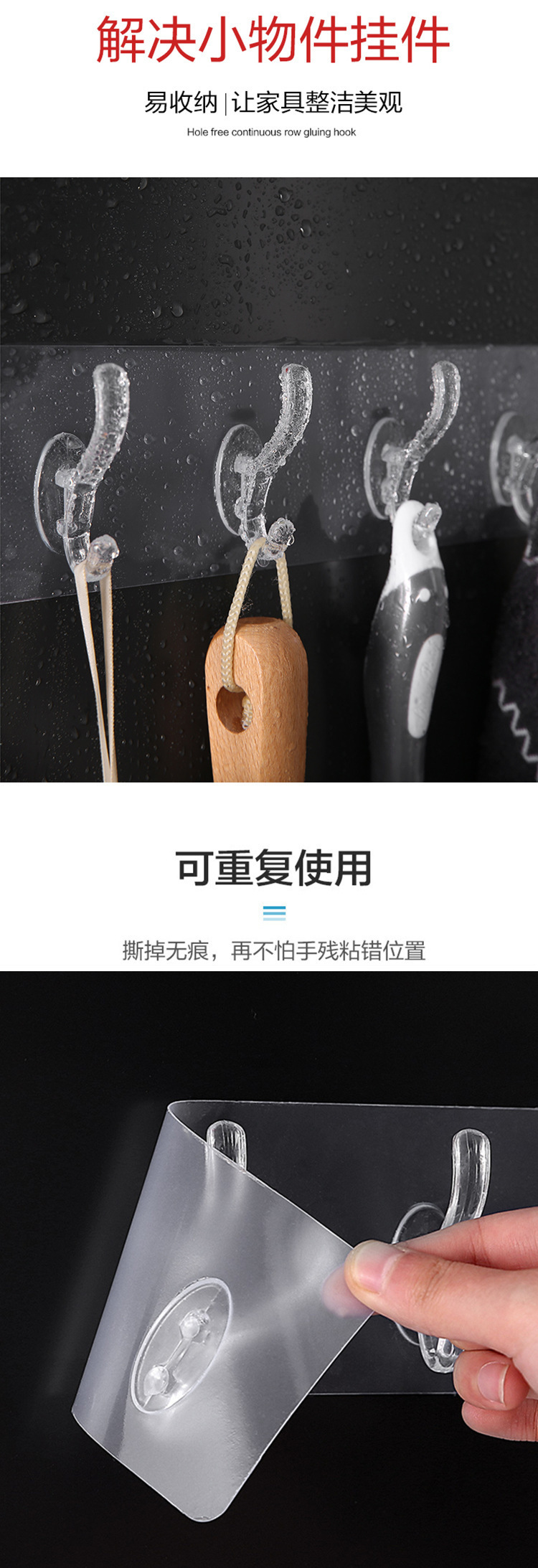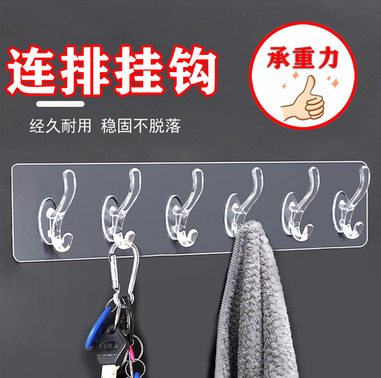 星罗拍1发3厨房多功能收纳钩透明衣帽钩门后浴室一排粘贴长条免打孔挂钩浴室