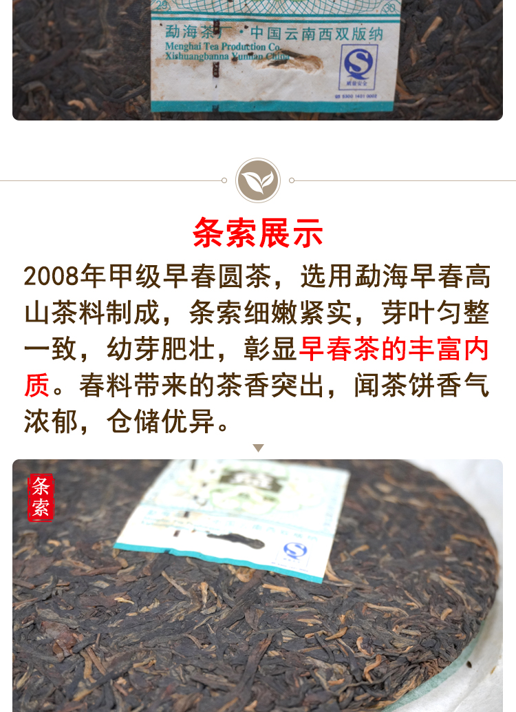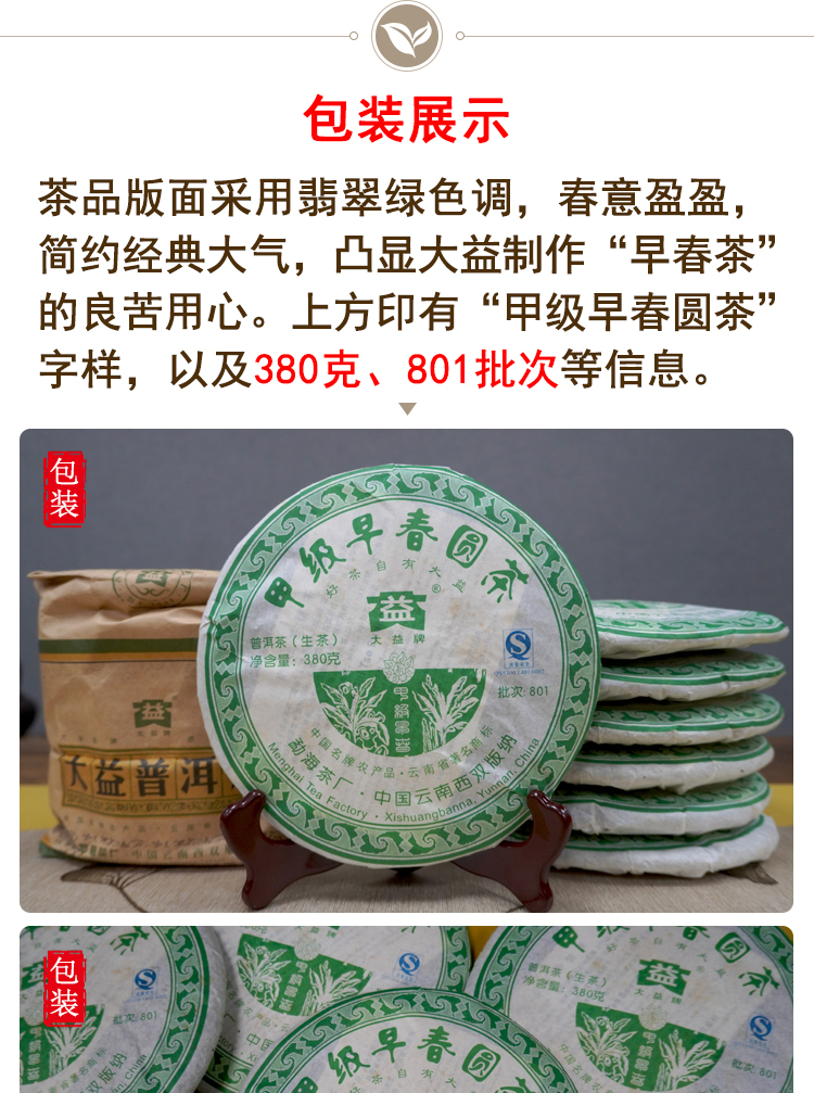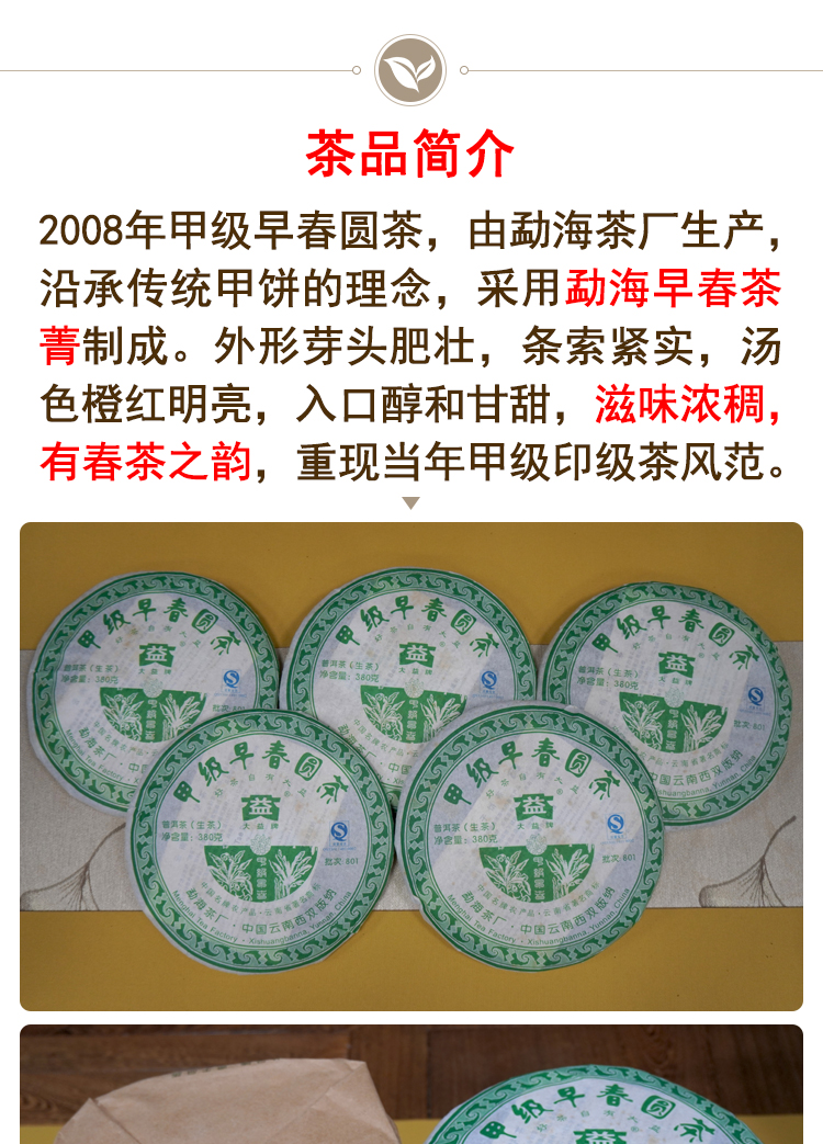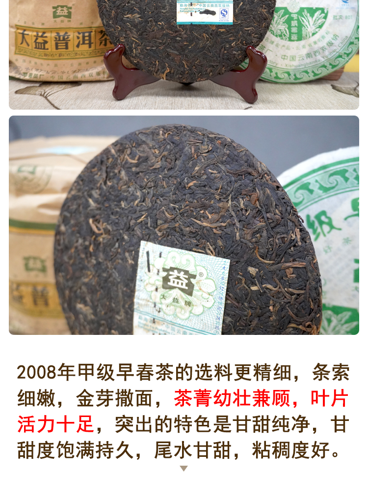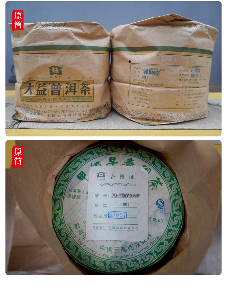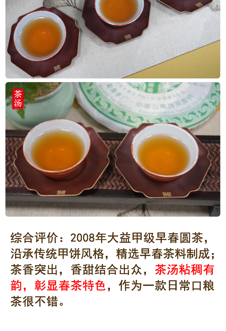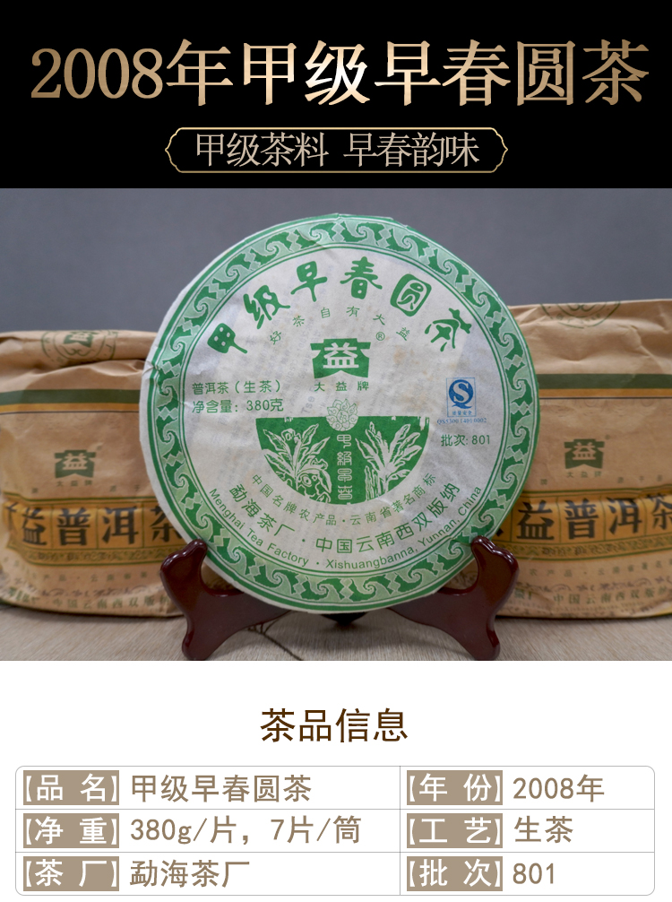 2008年大益甲级早春圆茶801批次380克真品干仓珍藏高性价比经典大益茶