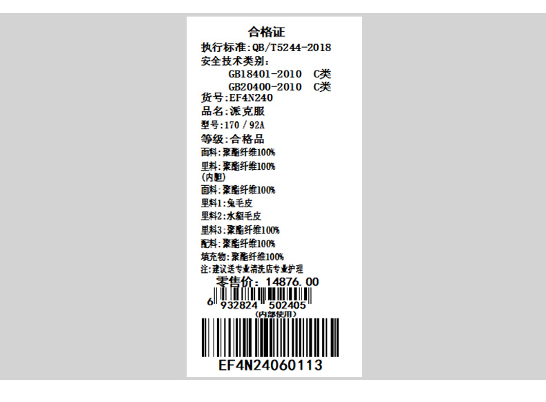 乔万尼新款派克服水貂毛皮草外套EF4N240