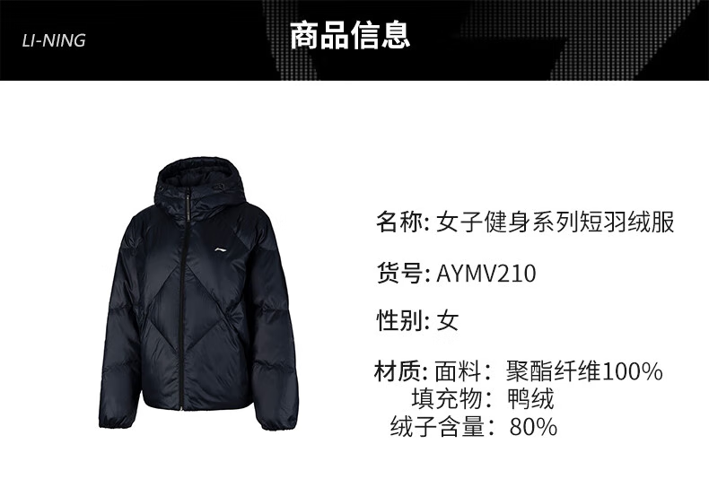 李宁(LI-NING)运动羽绒服女 2025冬季新款时尚保暖鸭绒外套AYMV210