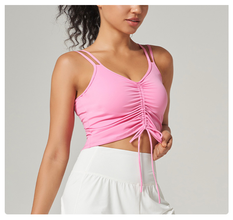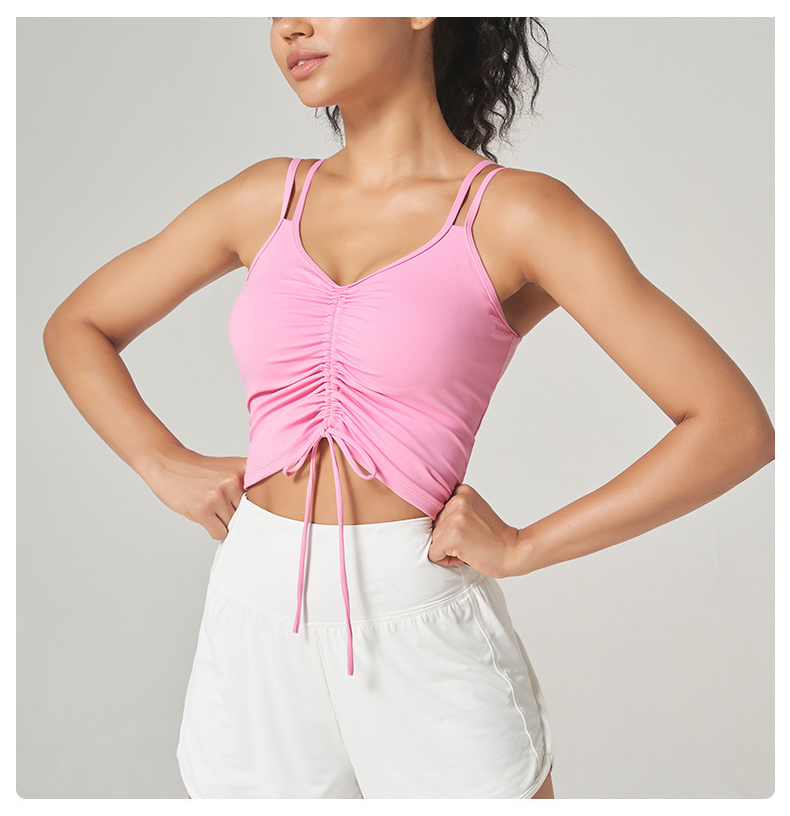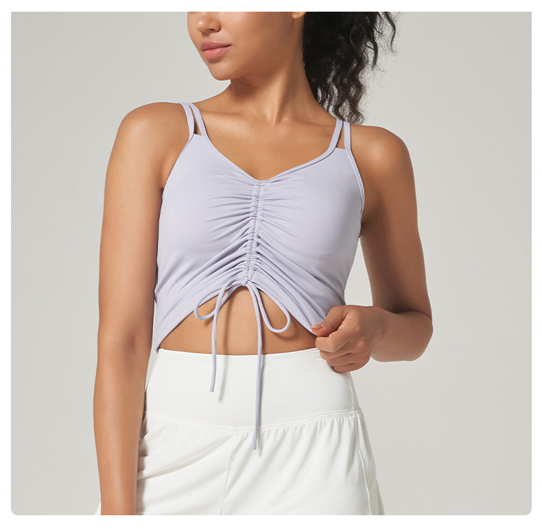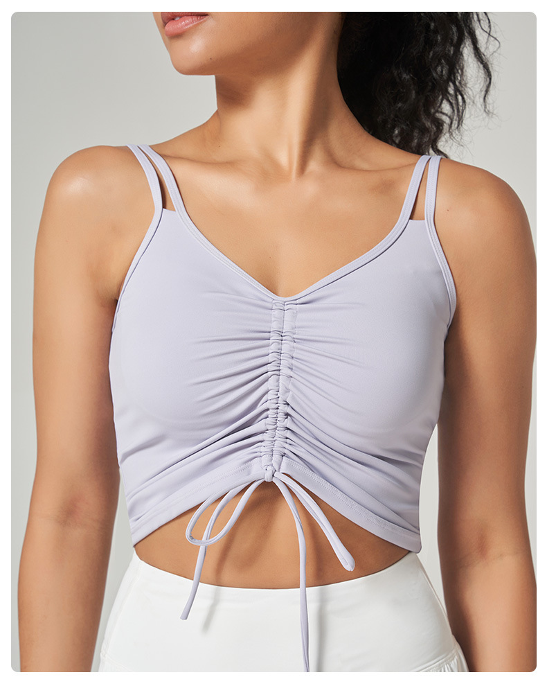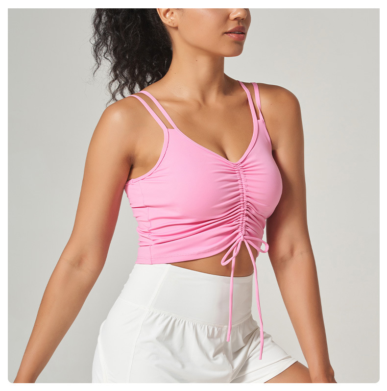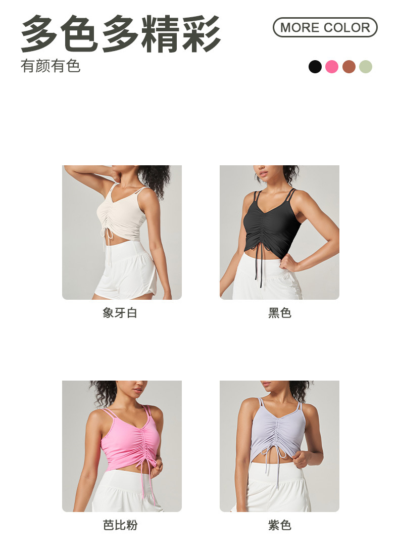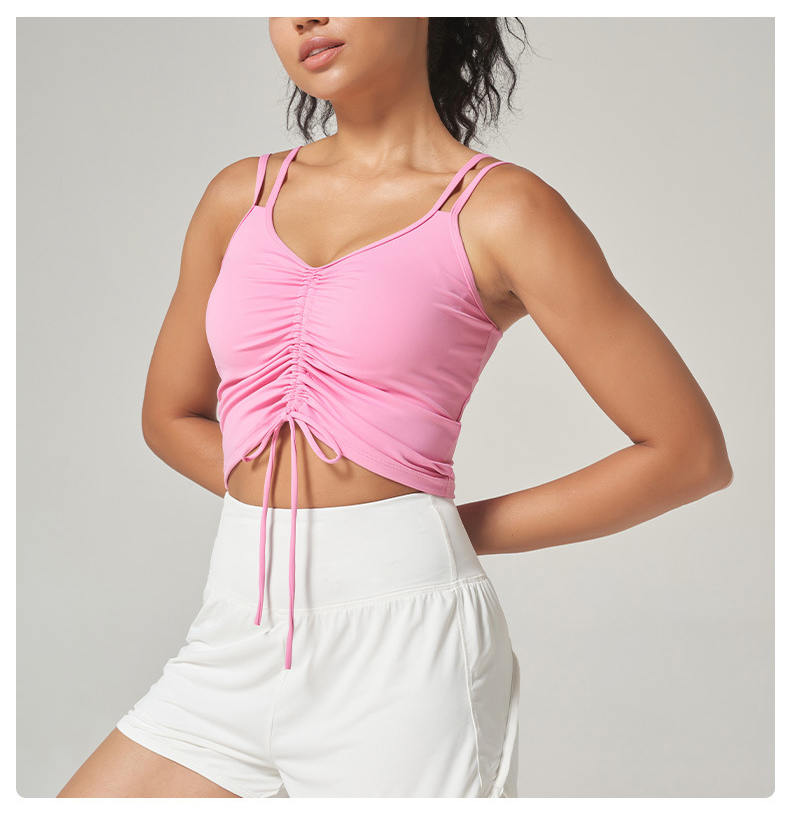 跃牌【瑜见伽人系列】抽绳绑带褶皱美背健身文胸速干运动内衣 YB8052