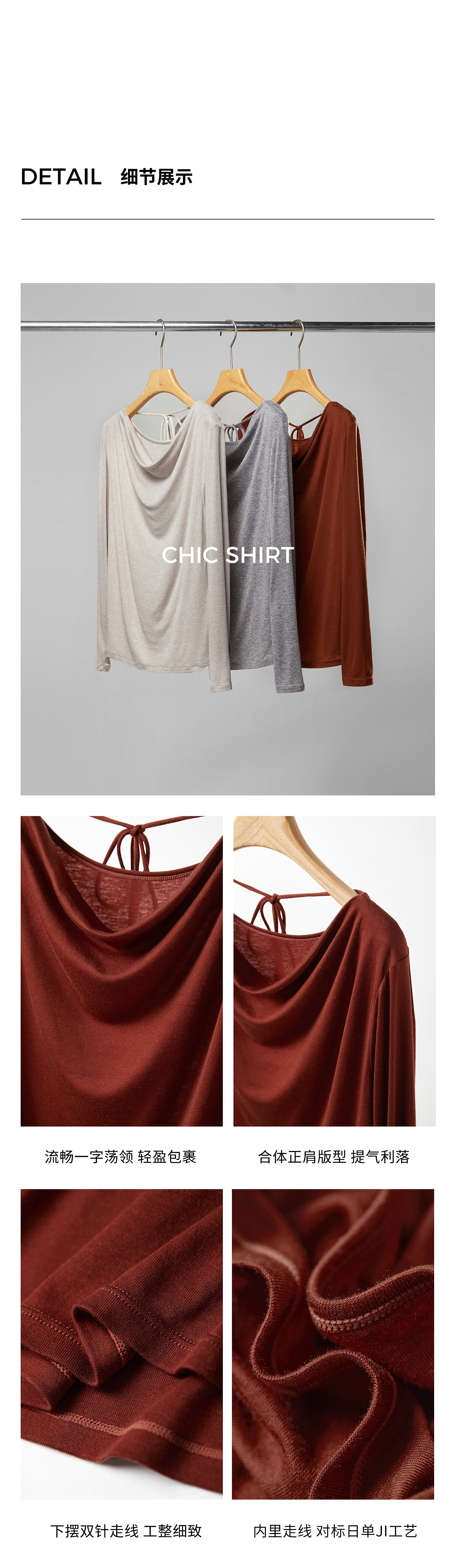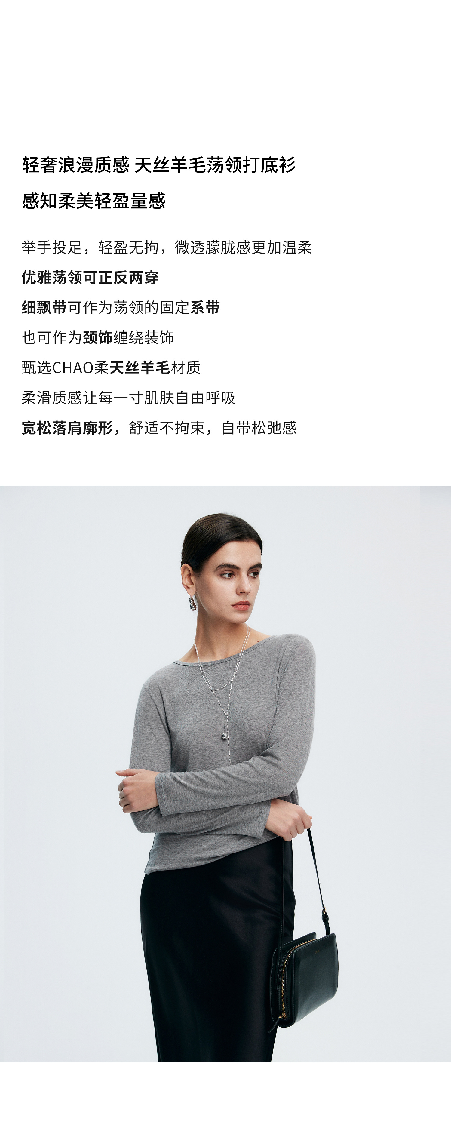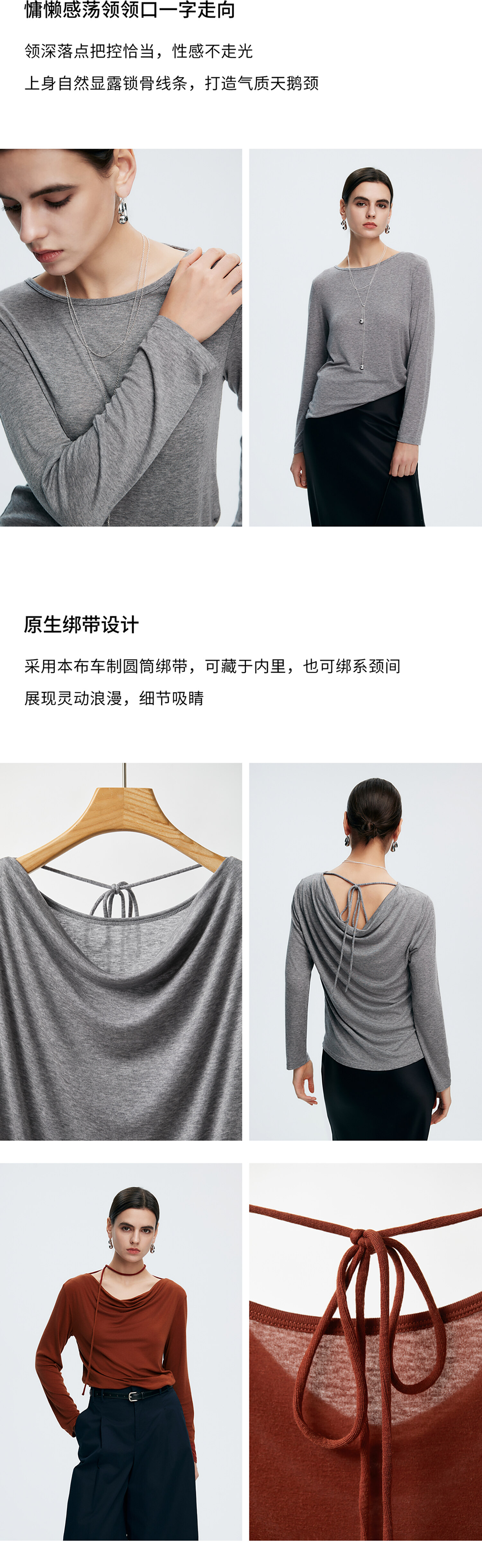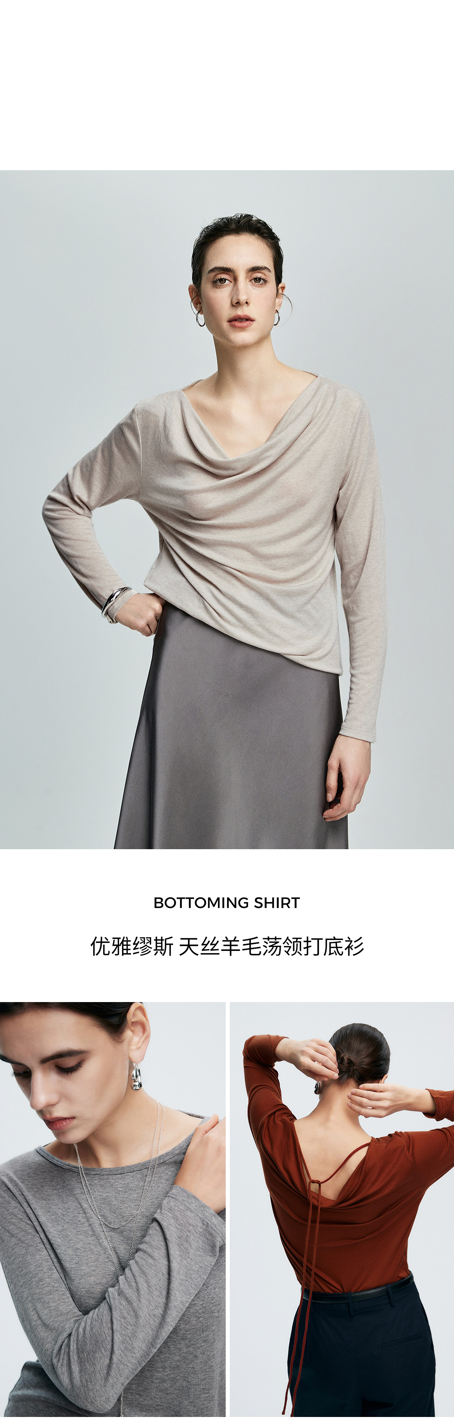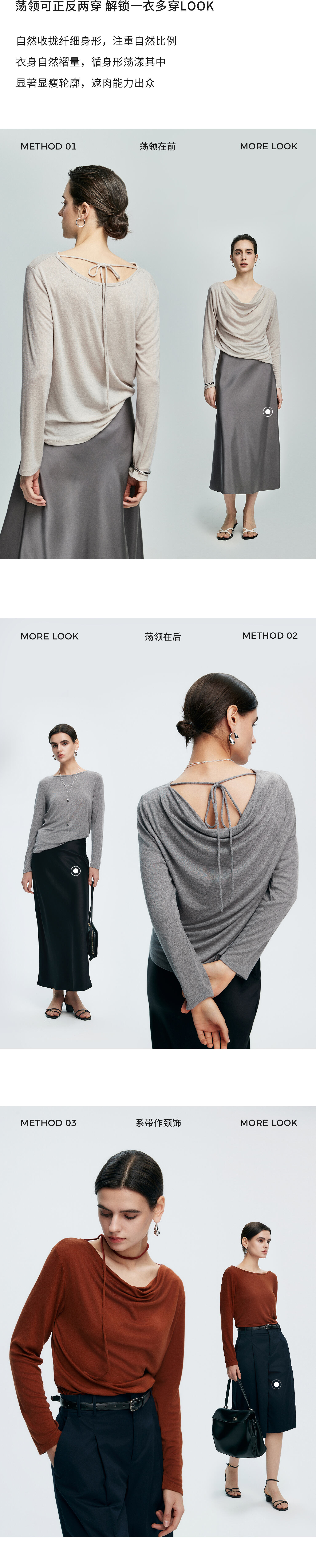 初棉362601007-初棉天丝羊毛荡领正反可穿打底衫奢感微透舒适软糯打底衫