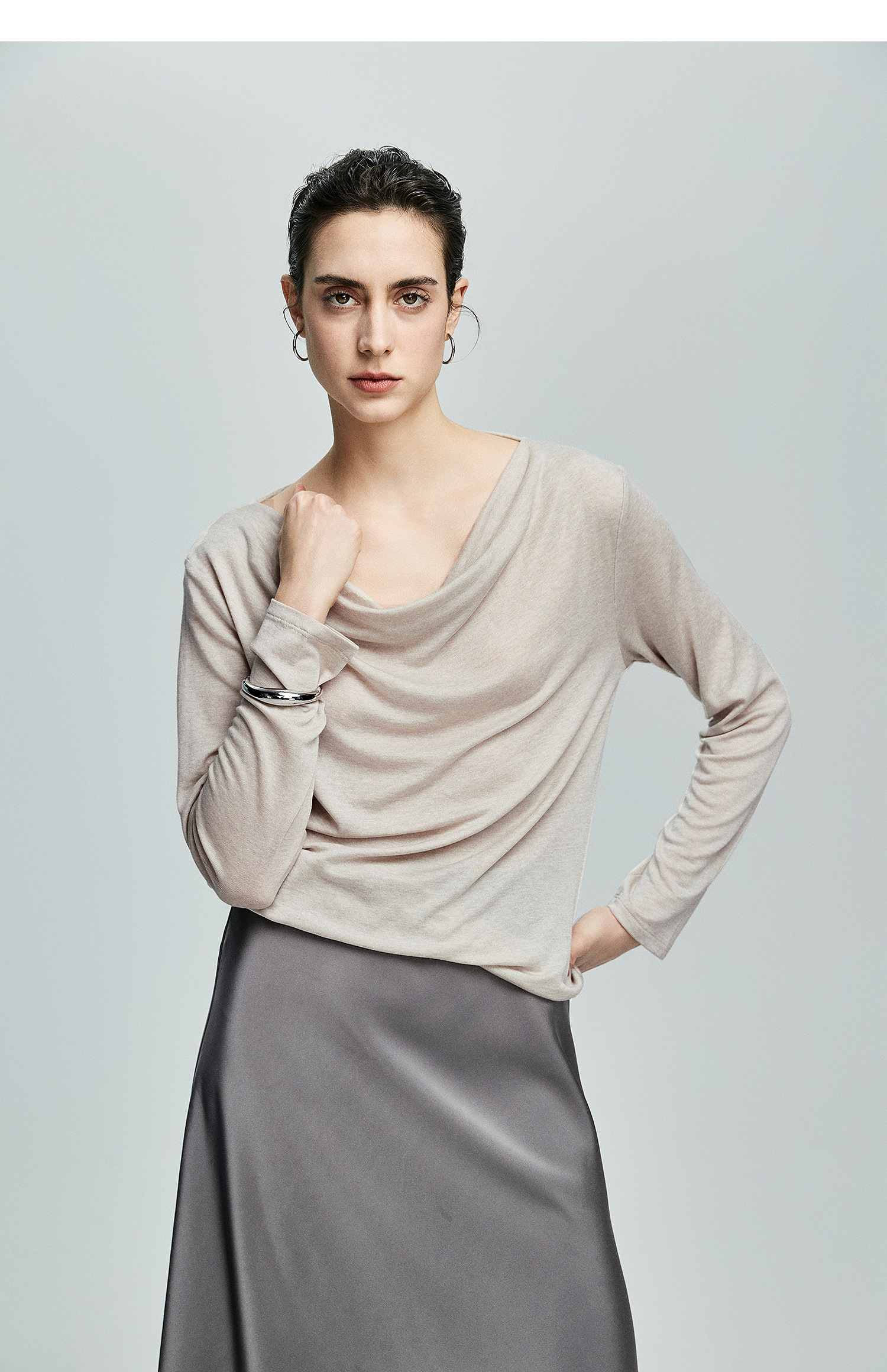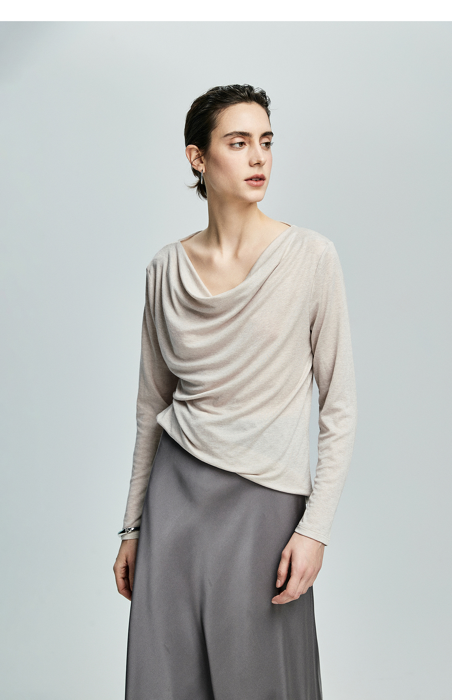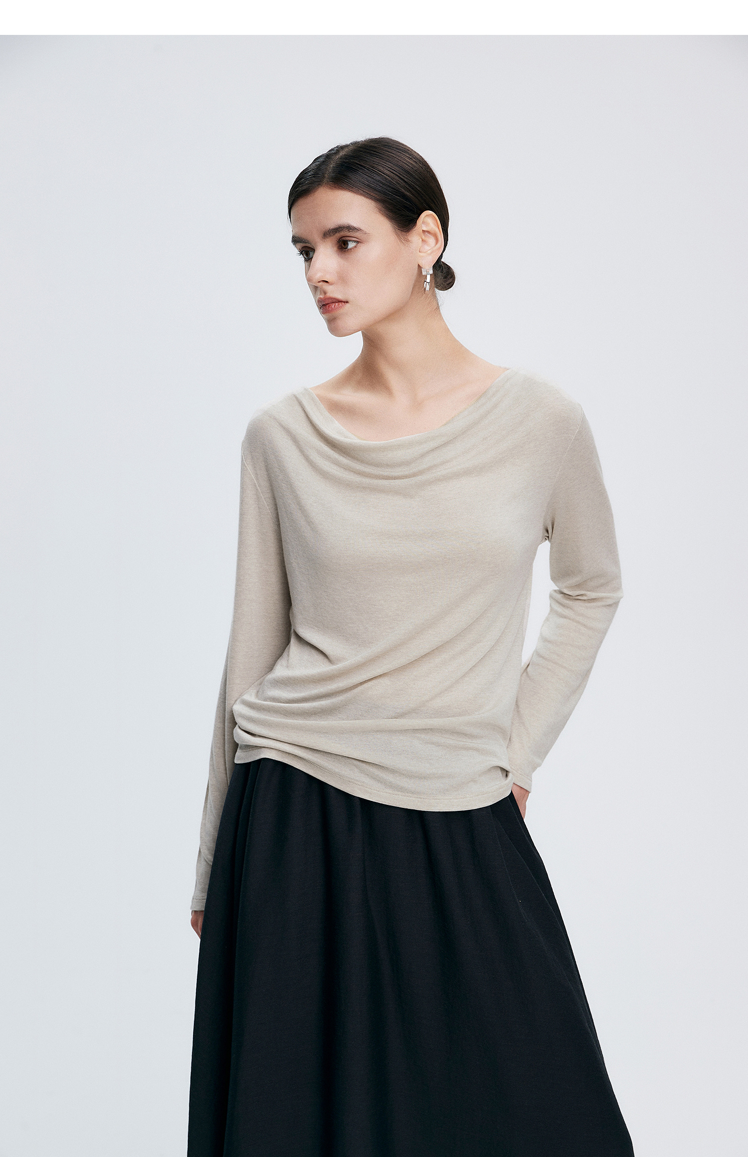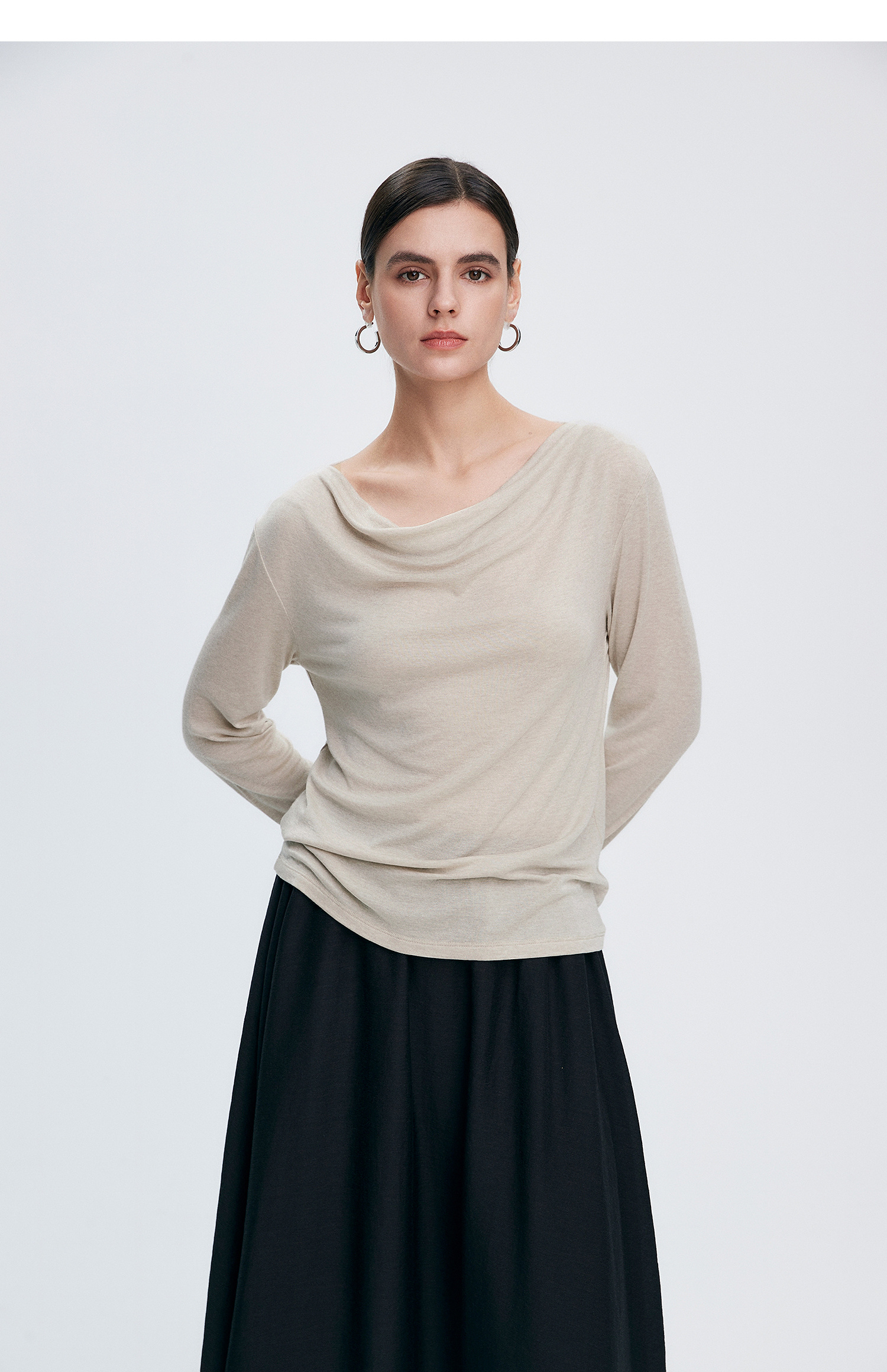初棉362601007-初棉天丝羊毛荡领正反可穿打底衫奢感微透舒适软糯打底衫