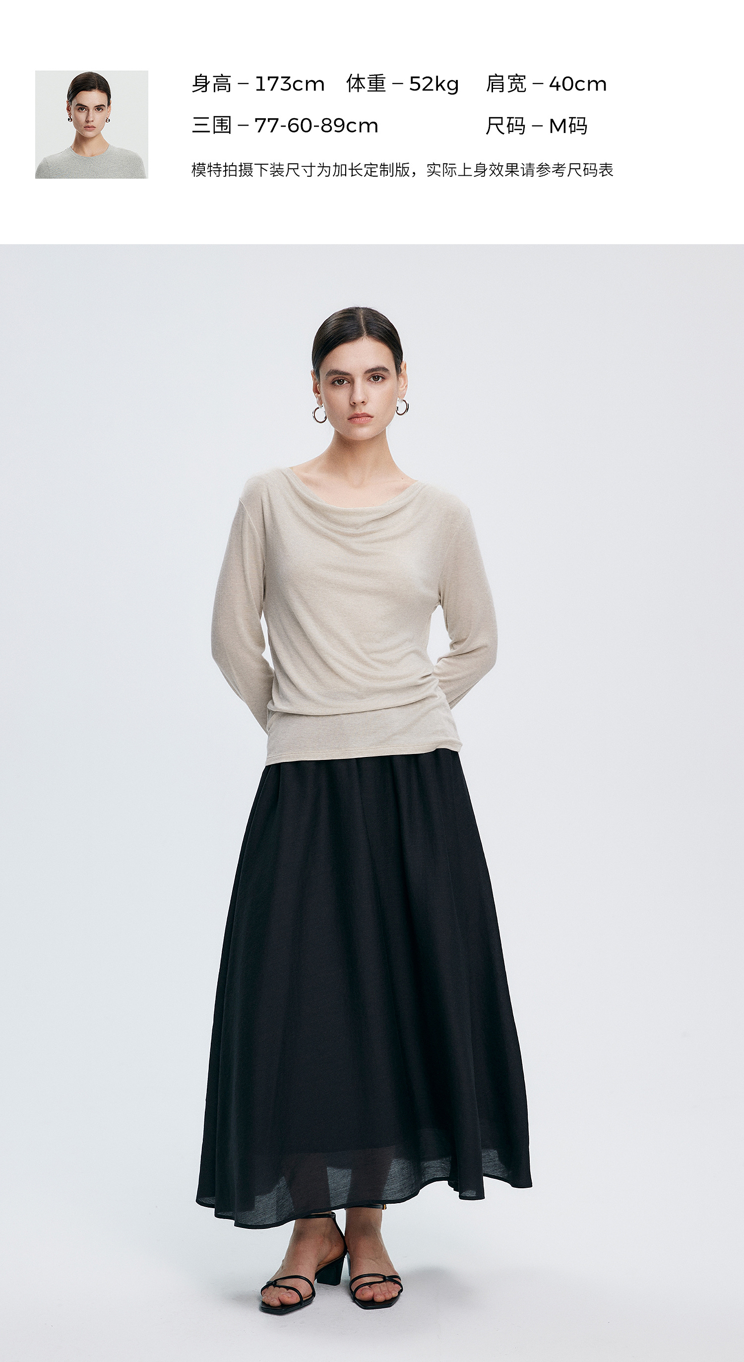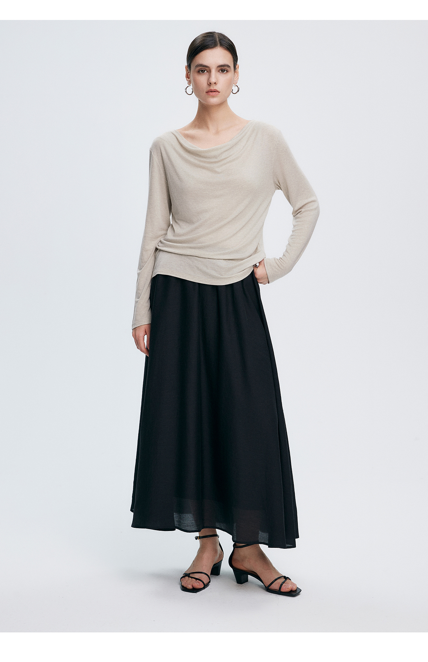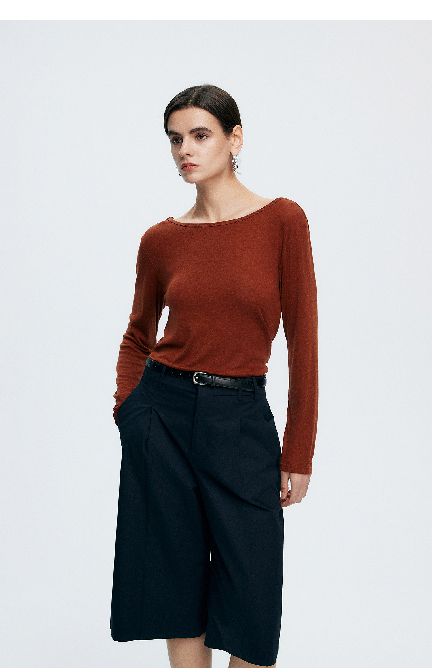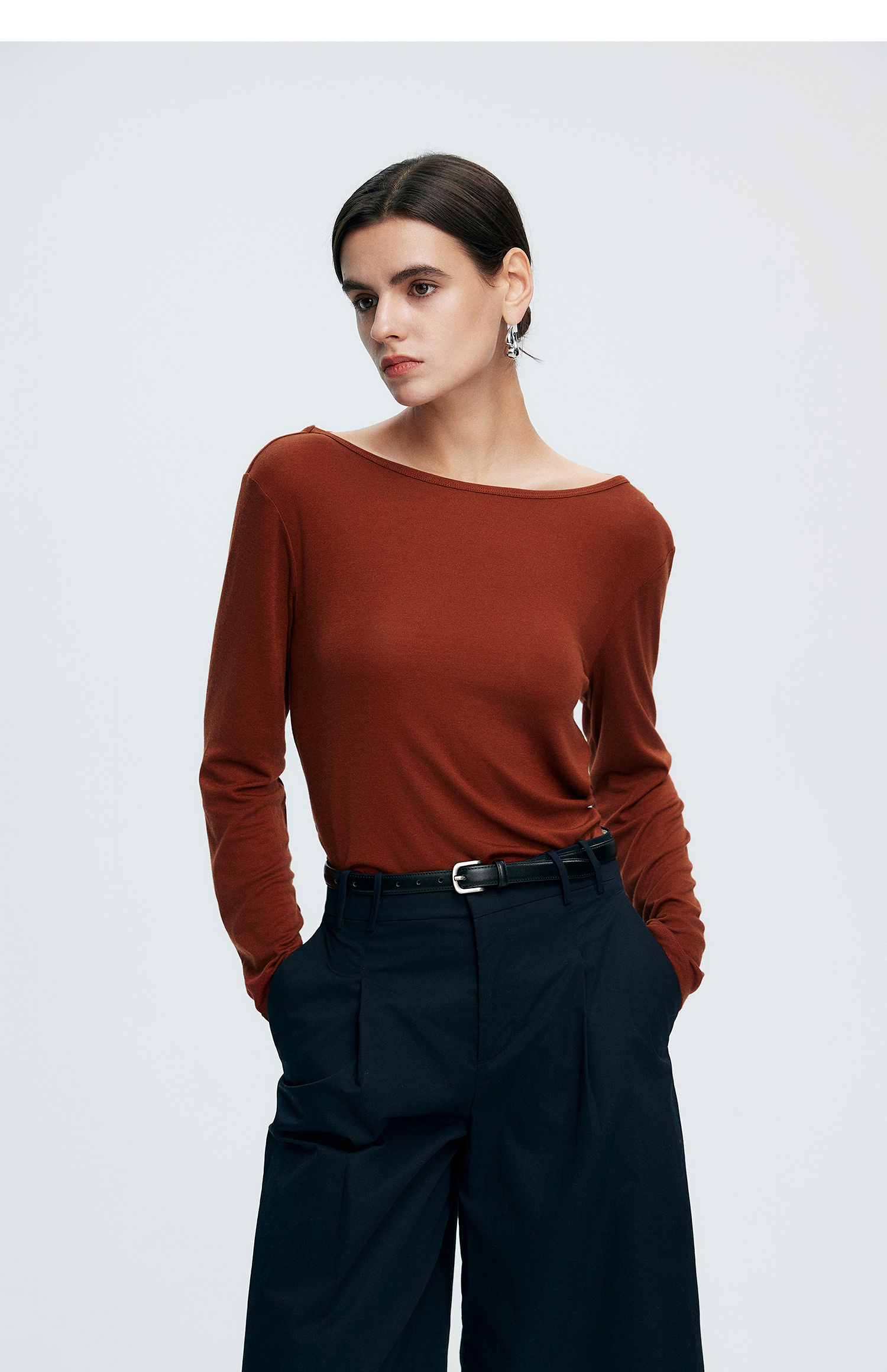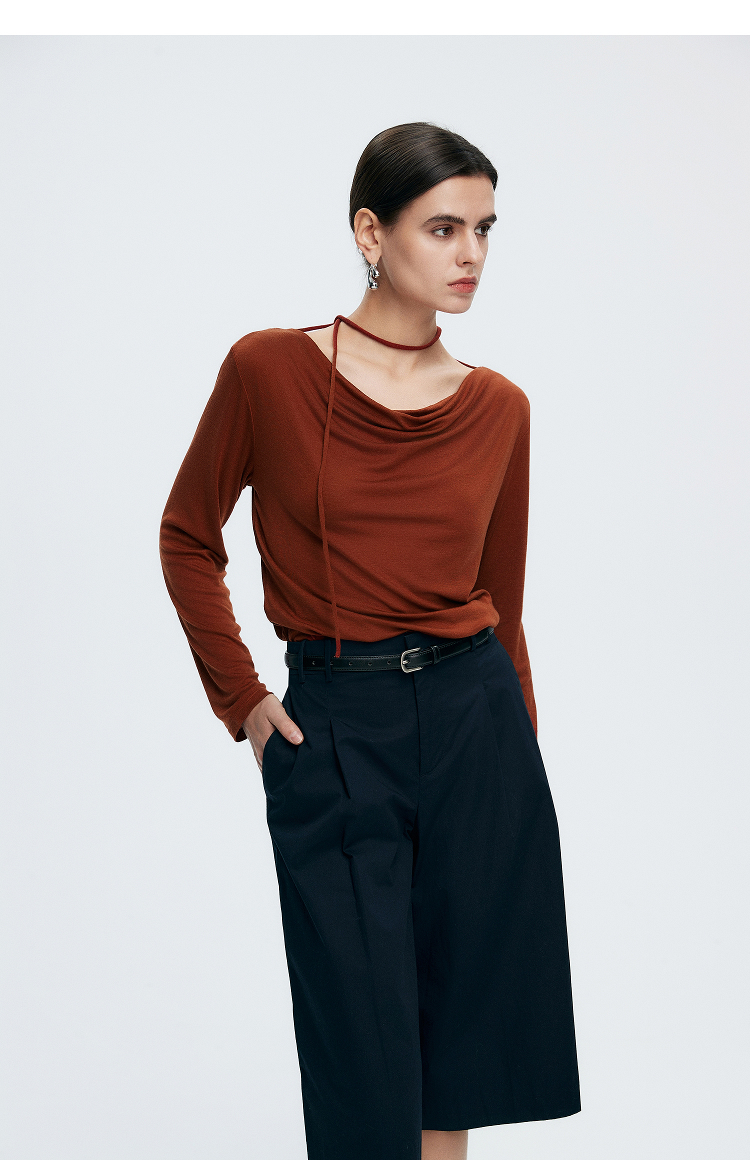 初棉362601007-初棉天丝羊毛荡领正反可穿打底衫奢感微透舒适软糯打底衫