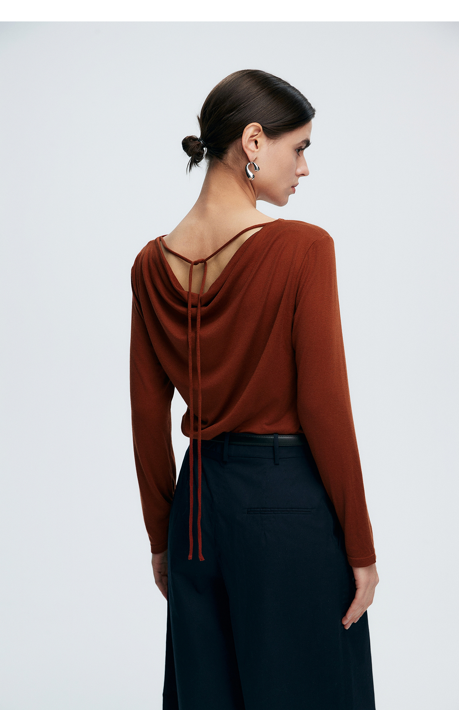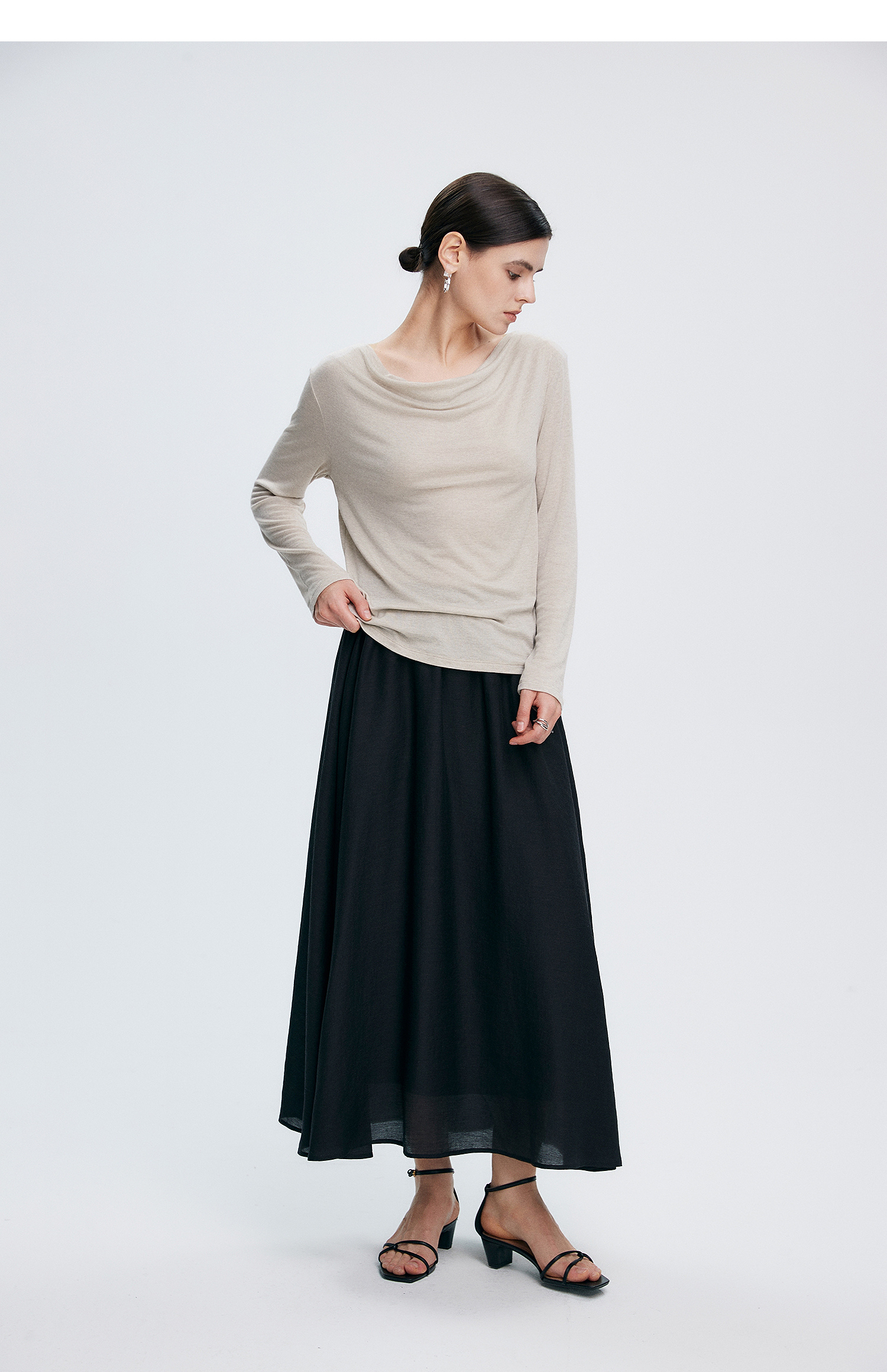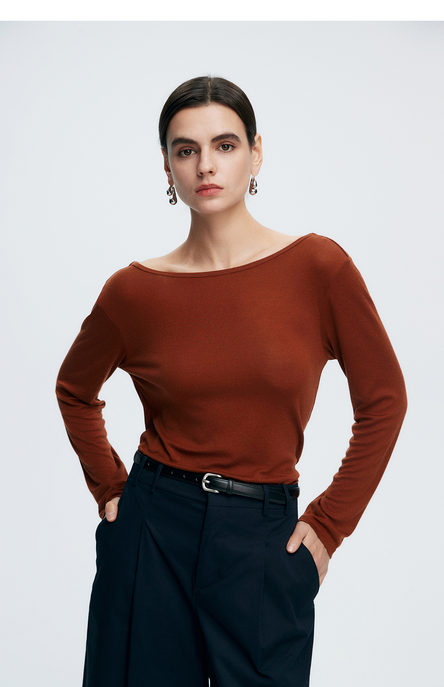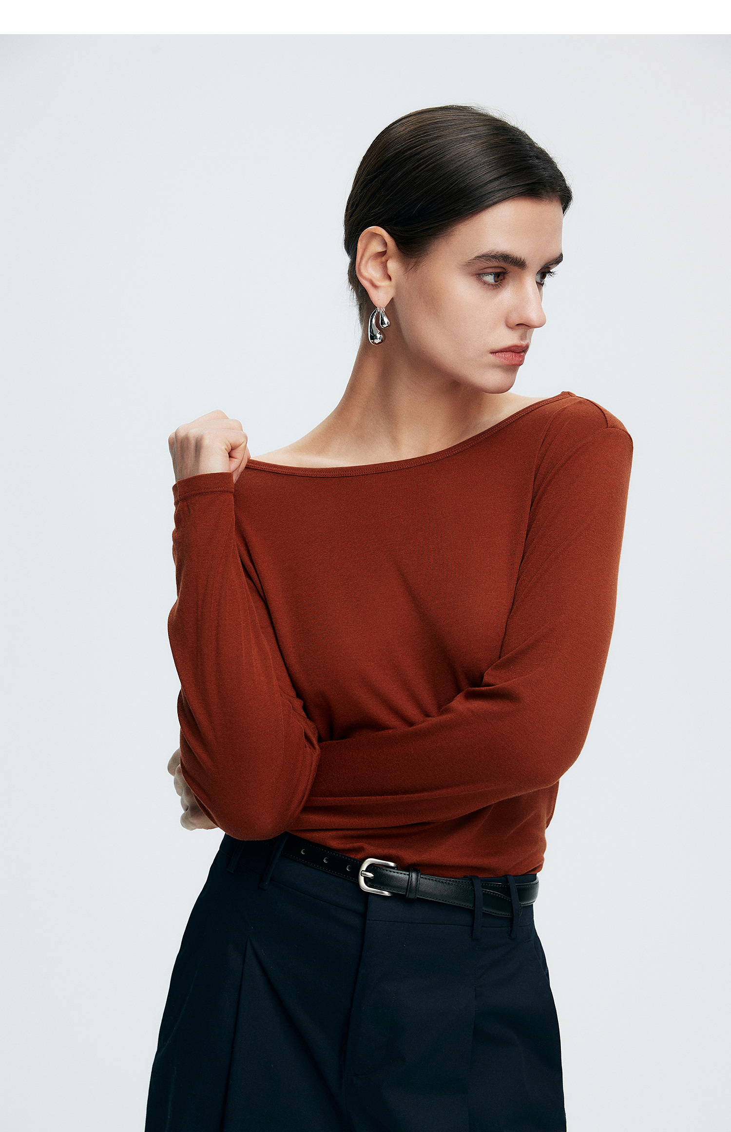 初棉362601007-初棉天丝羊毛荡领正反可穿打底衫奢感微透舒适软糯打底衫