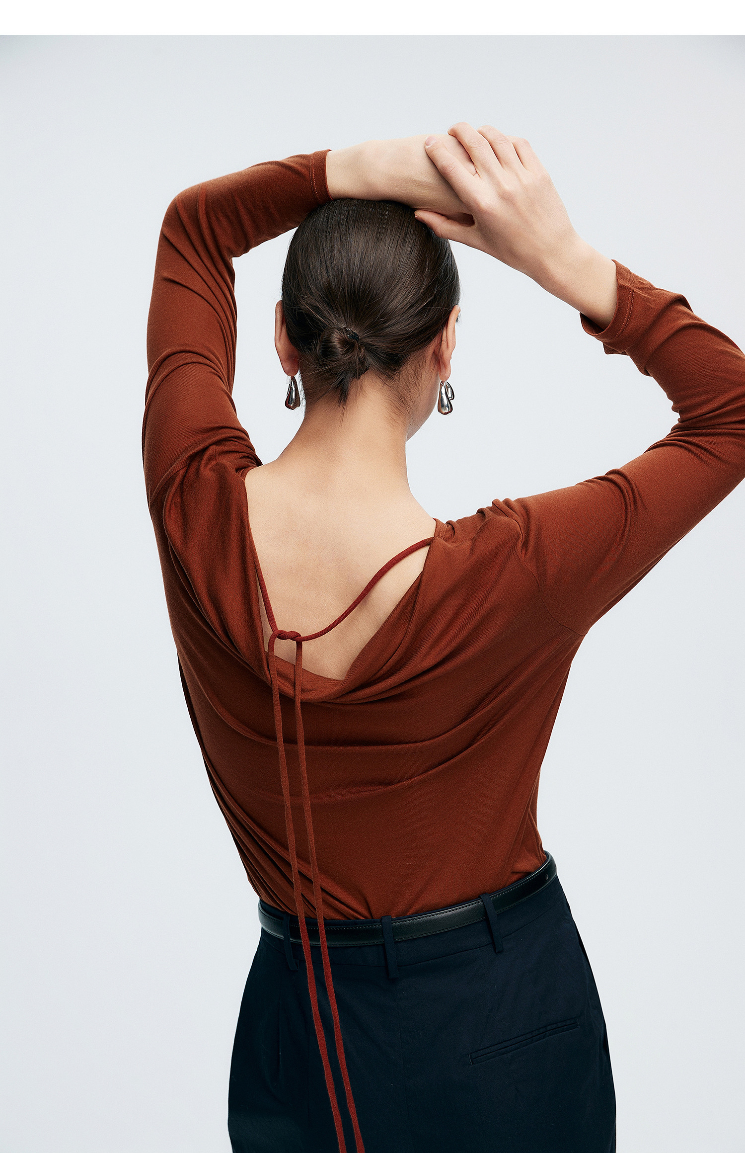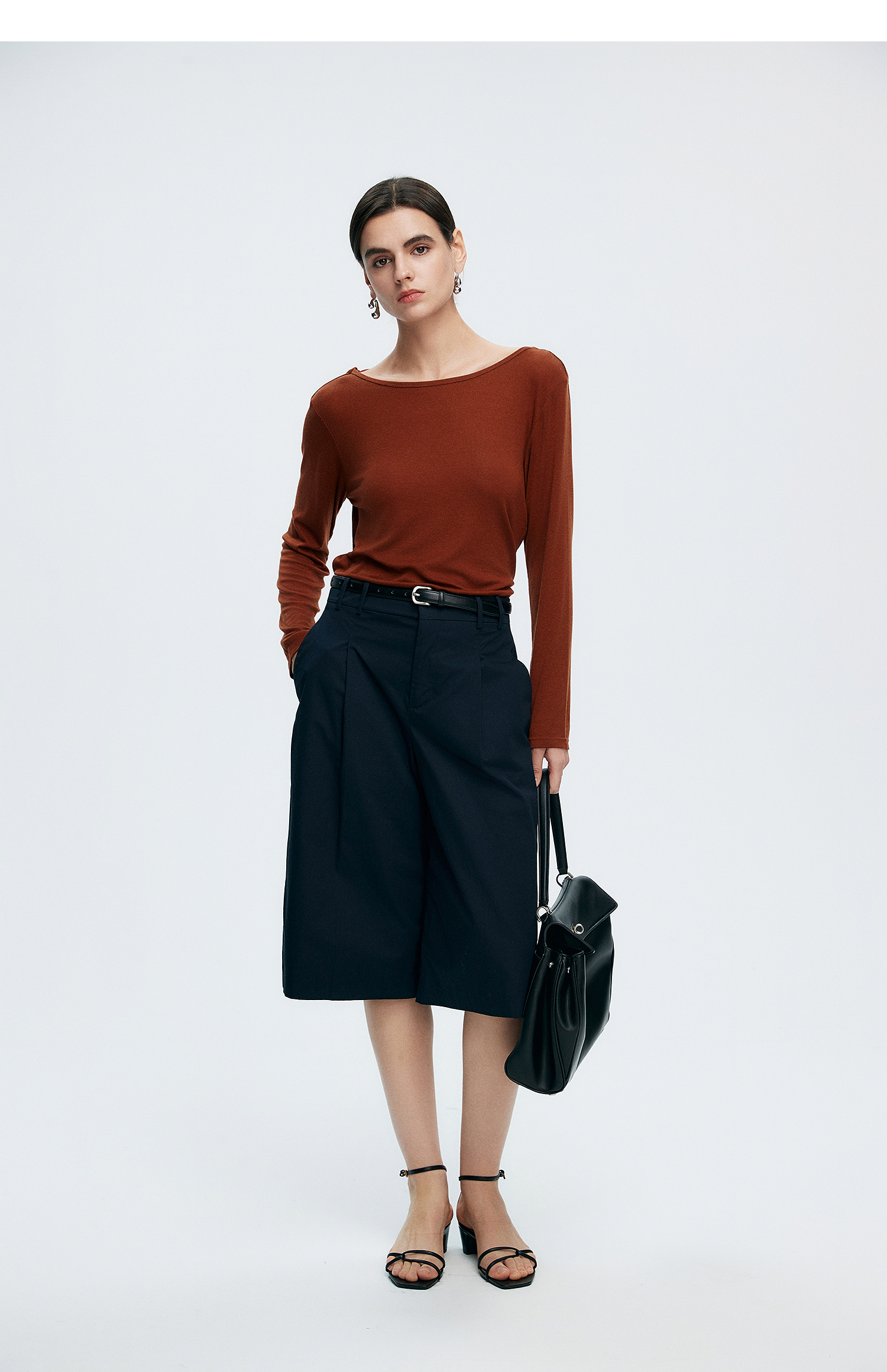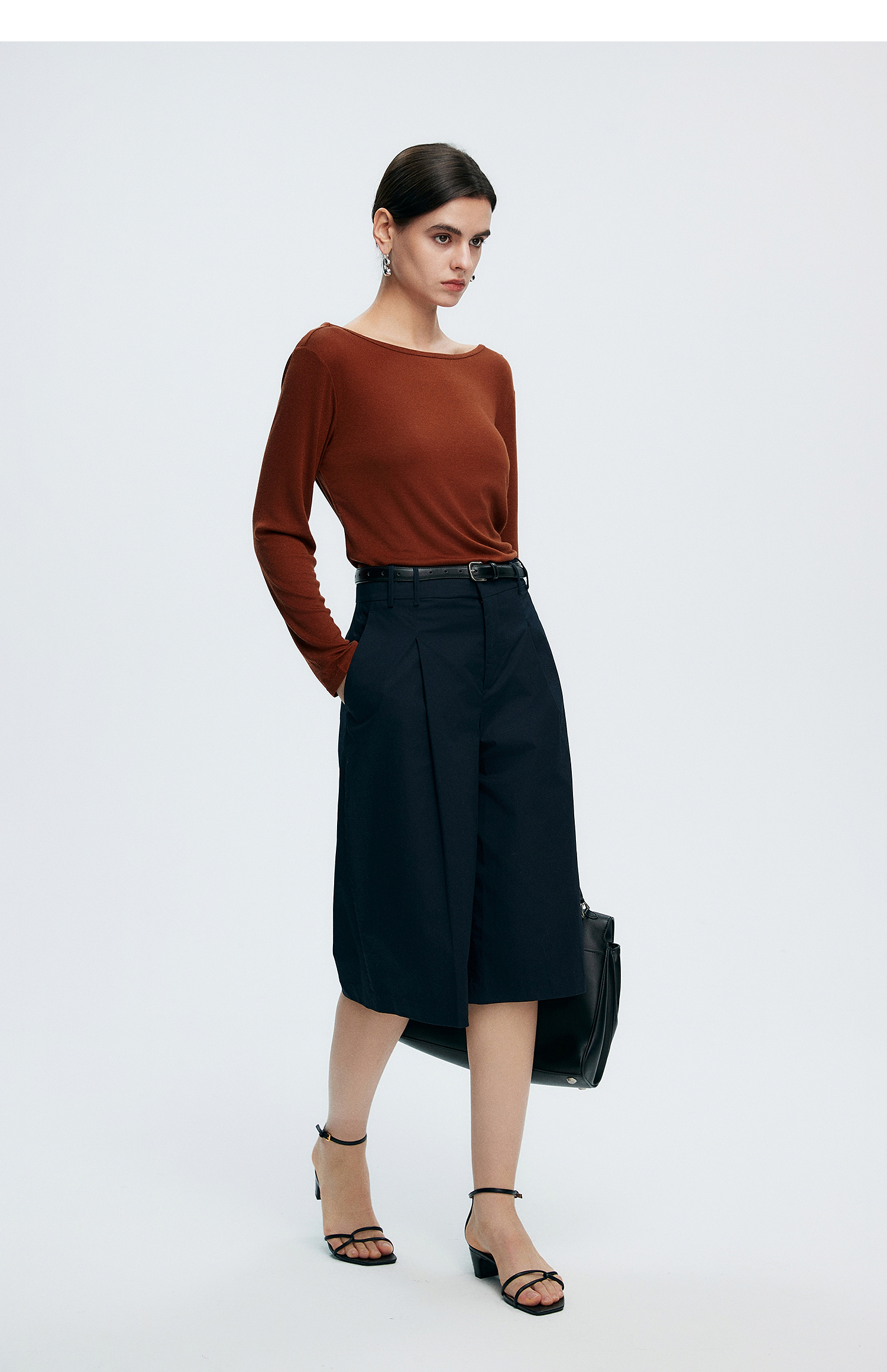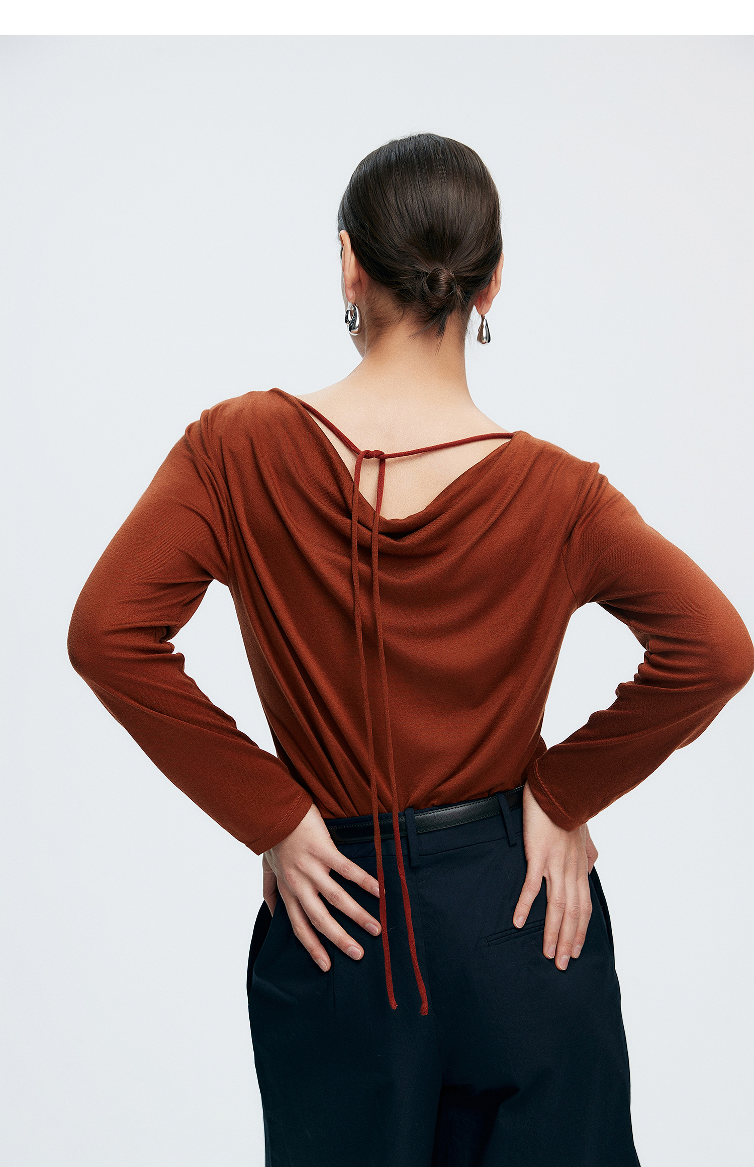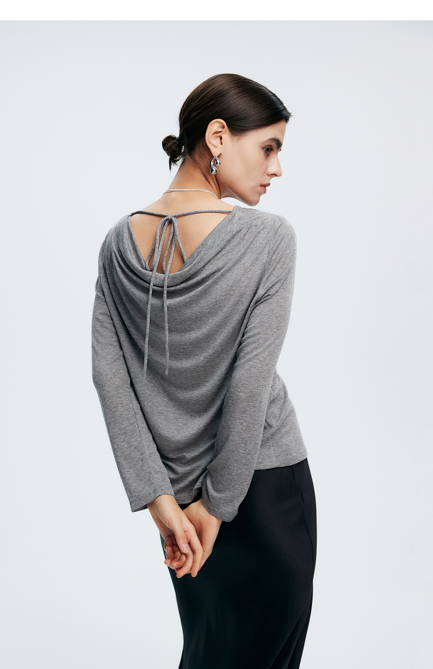 初棉362601007-初棉天丝羊毛荡领正反可穿打底衫奢感微透舒适软糯打底衫
