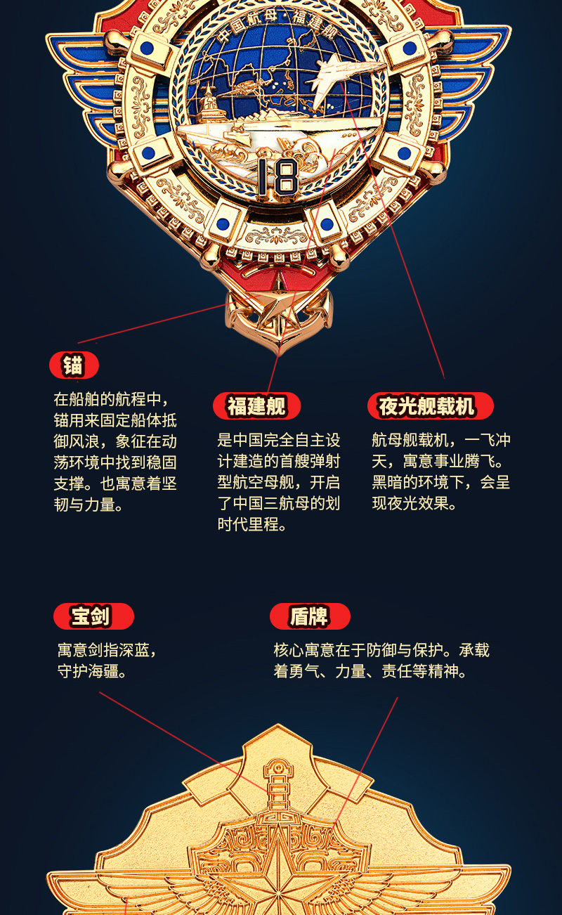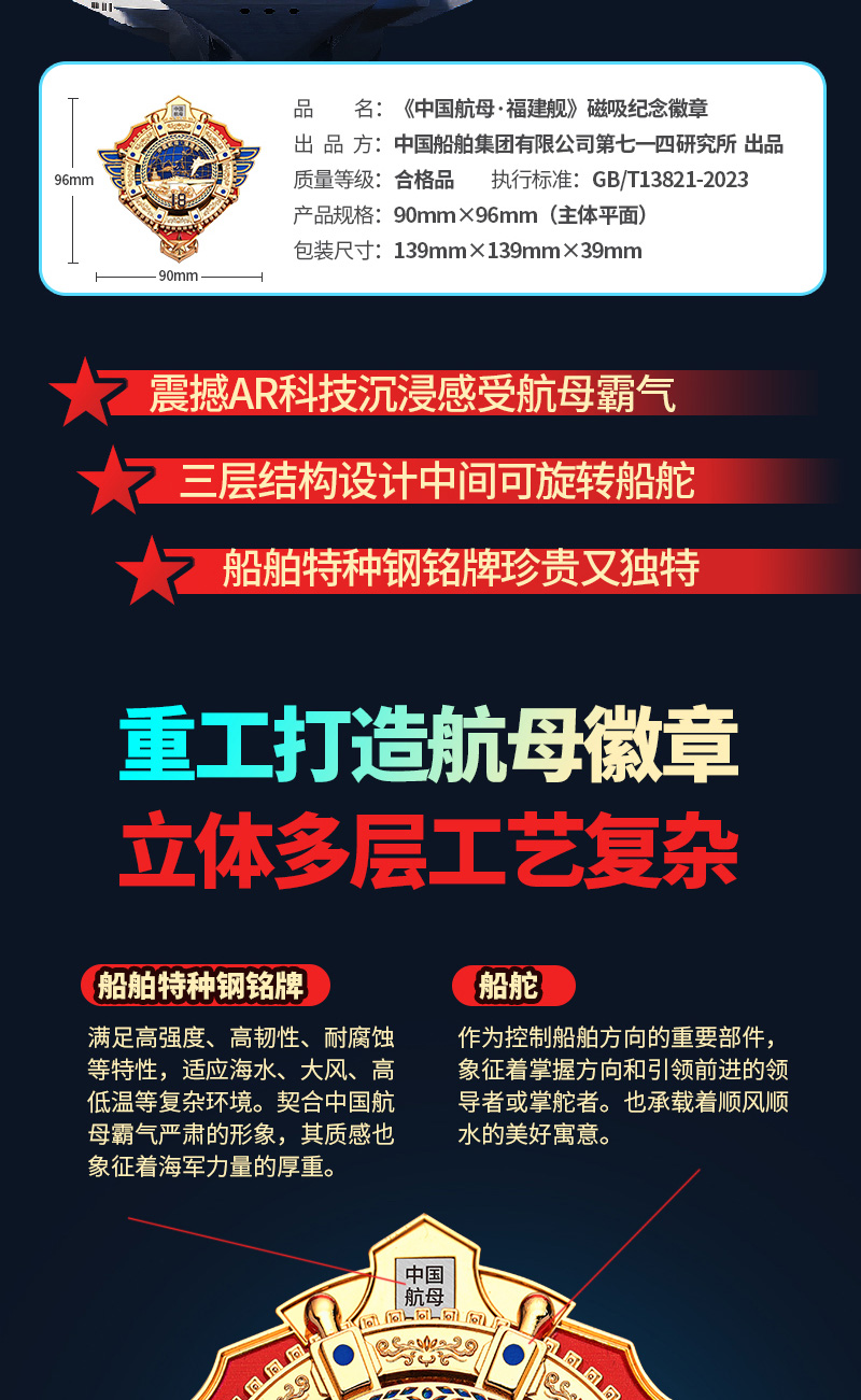 少库存 火爆预定中!【中船第七一四研究所出品】中国航母·福建舰磁吸纪念徽章 (周彦君大师设计 立体多层工艺+可旋转船舵+夜光设计 极具收藏价值 已爆仓 20天左右发出 )
