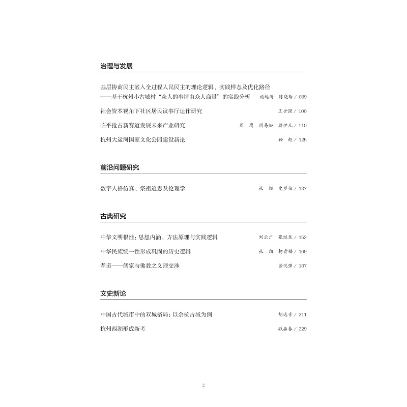 《杭州社会科学》围绕“十五五”时期杭州全面深化改革和经济社会发展重大战略,紧扣“加快建设世界一流的社会主义现代化国际大都市”和“努力成为中国式现代化城市范例”奋斗目标,重点围绕进一步全面深化改革任务、共同富裕示范区建设、经济社会高质量发展、培育和发展新质生产力、教育科技人才一体发展、历史文化名城建设、保障和改善民生、新时代美丽杭州建设、城乡融合发展、推进国家安全体系和能力现代化、全面加强党的建设等重大理论问题和实践问题,积极关注群众普遍关心的热点难点问题,通过呈现浙江特别是杭州的历史文化传统和社会建设成果的研究,凝练杭州特色、总结浙江经验,助推中国式现代化建设。本辑关注历史文化名城建设。