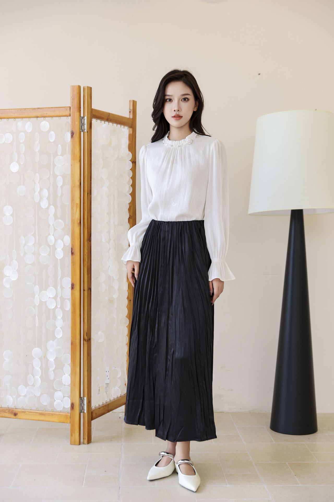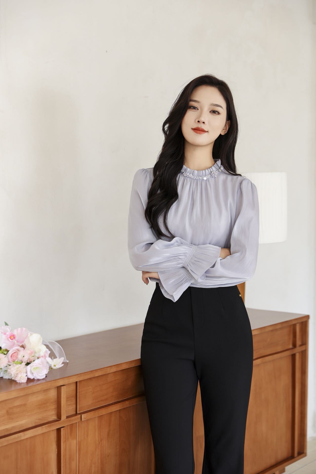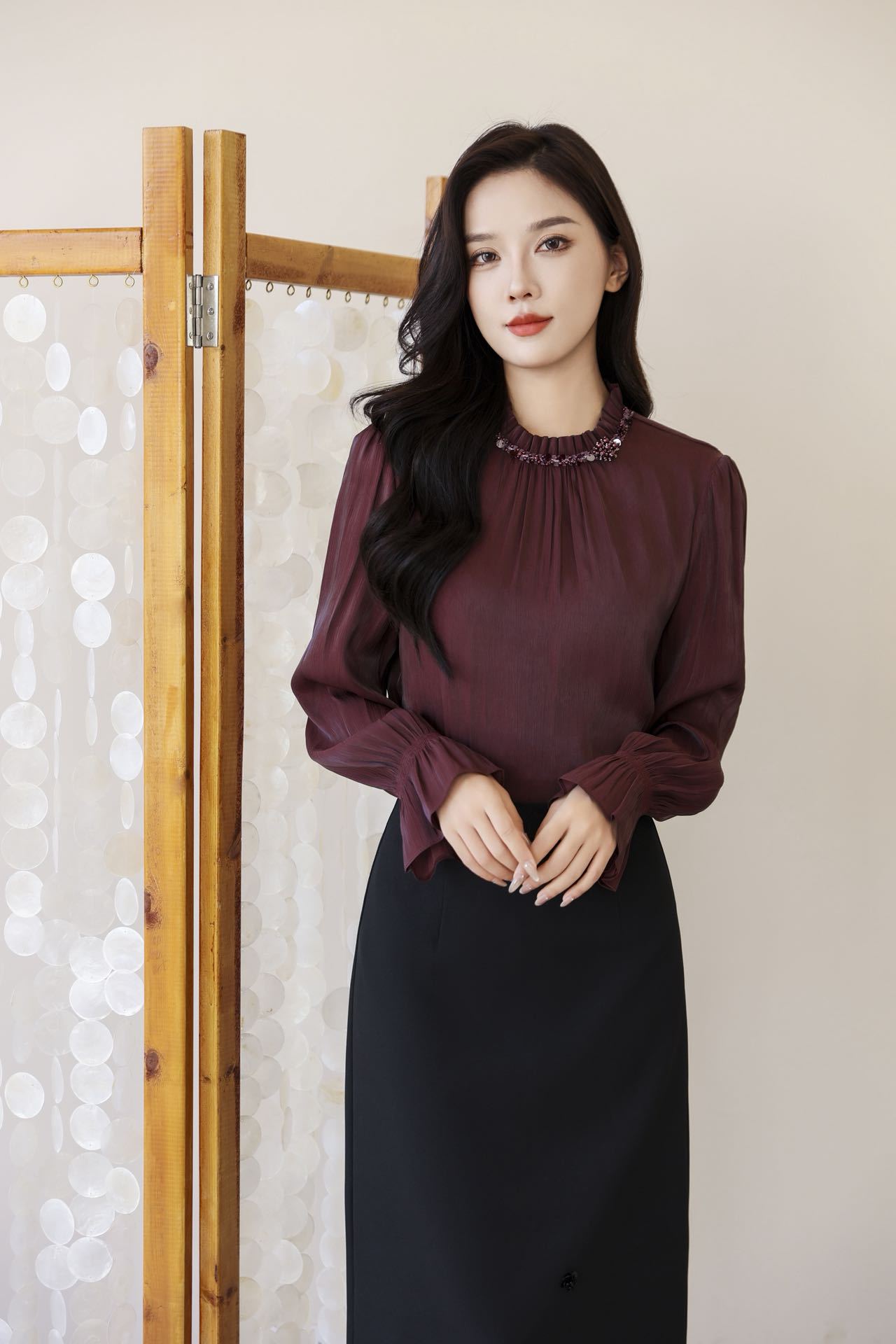 「自」全新升级【铂金会员183/天猫239/差价56】(05022)洛诗琳新款时尚缎面衬衣2025秋季新款气质钉珠雪纺上衣女