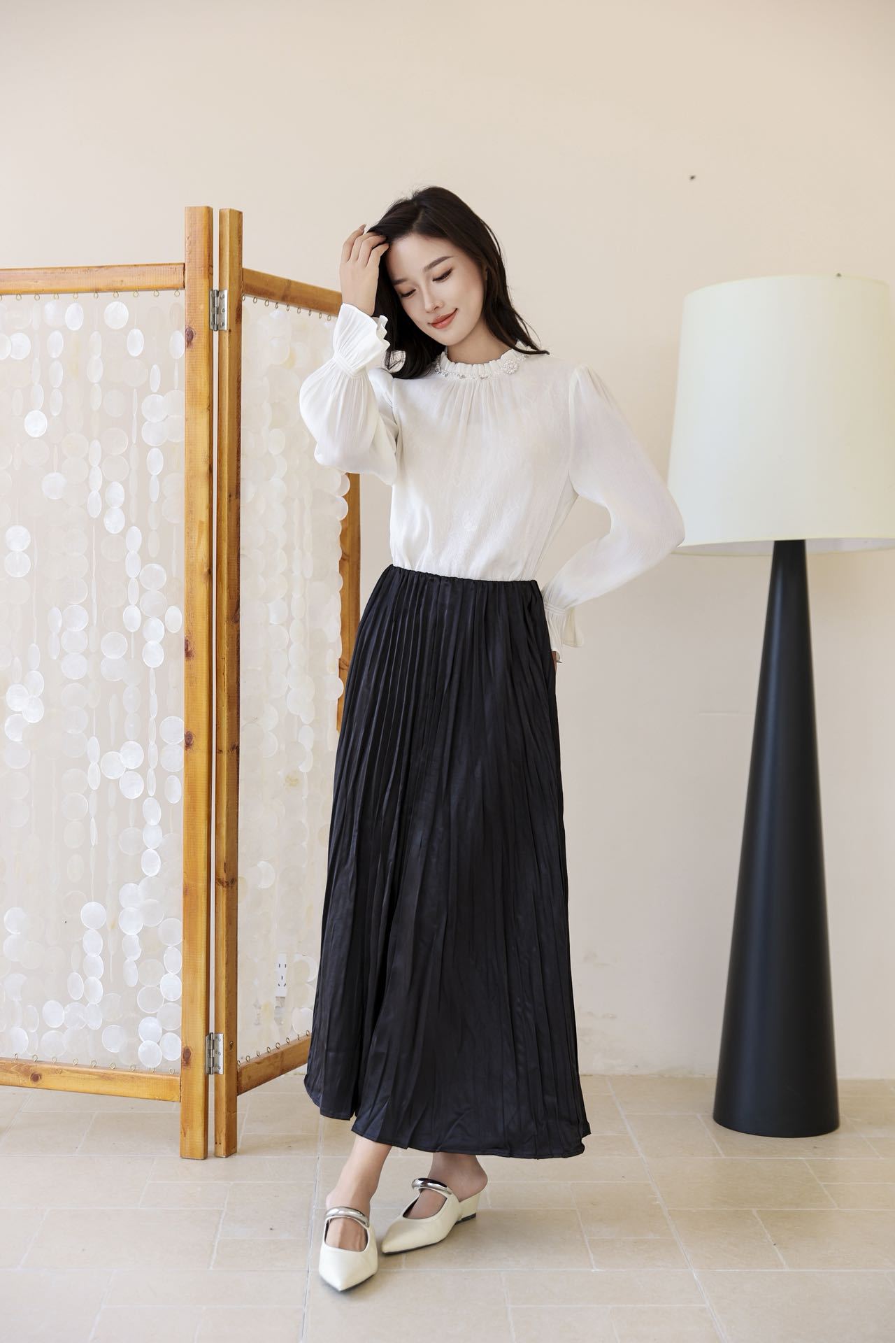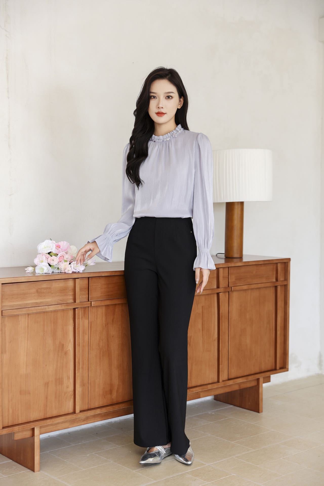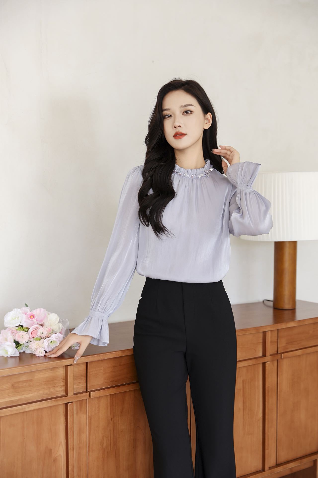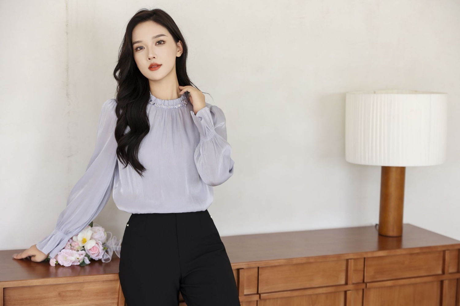 「自」全新升级【铂金会员183/天猫239/差价56】(05022)洛诗琳新款时尚缎面衬衣2025秋季新款气质钉珠雪纺上衣女