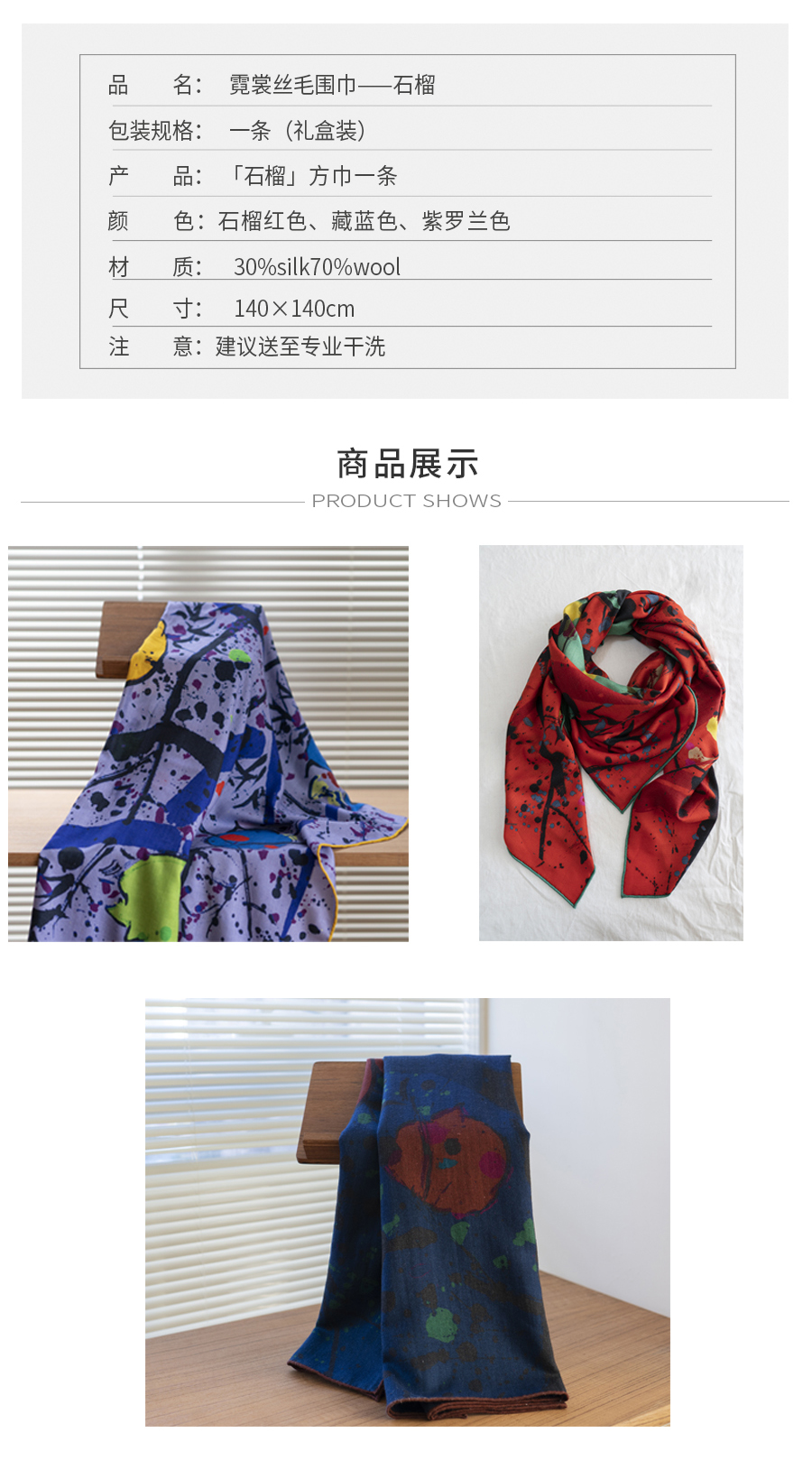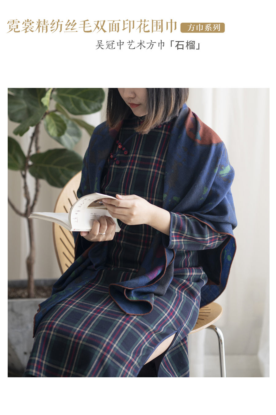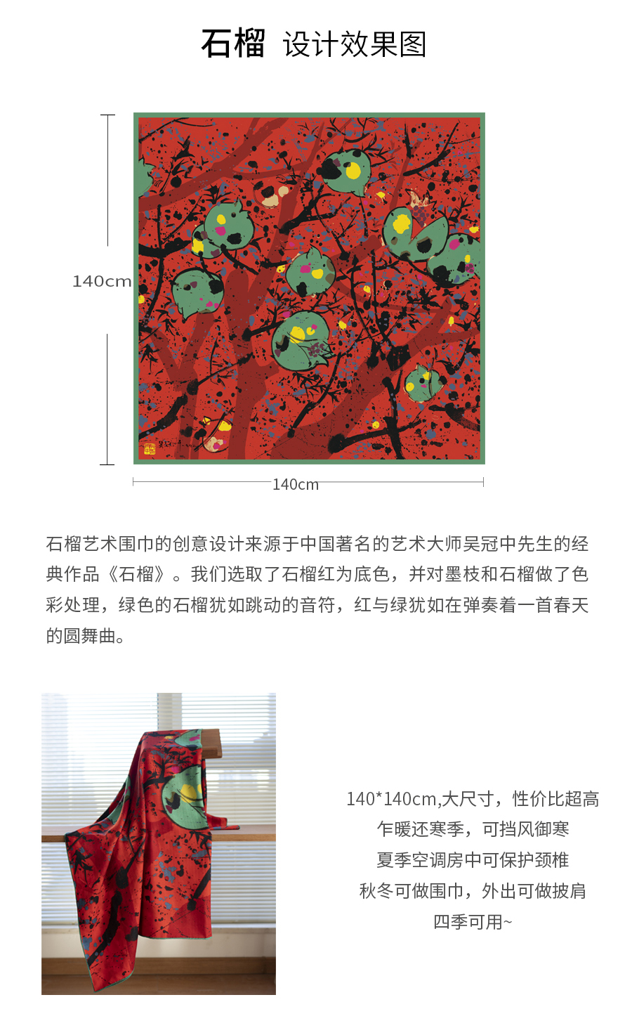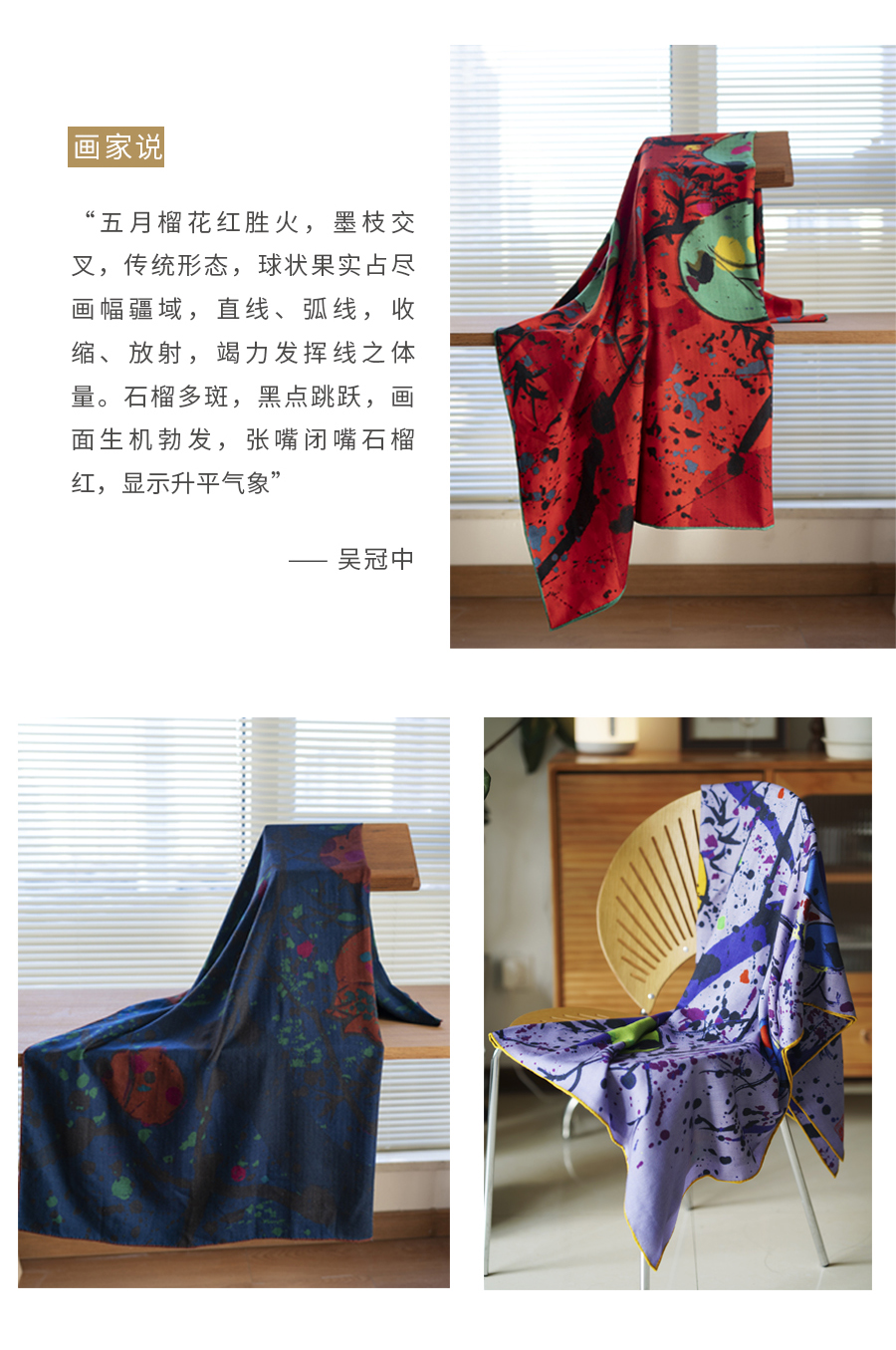 吴冠中艺术围巾《石榴》双面印花丝毛精纺大方巾