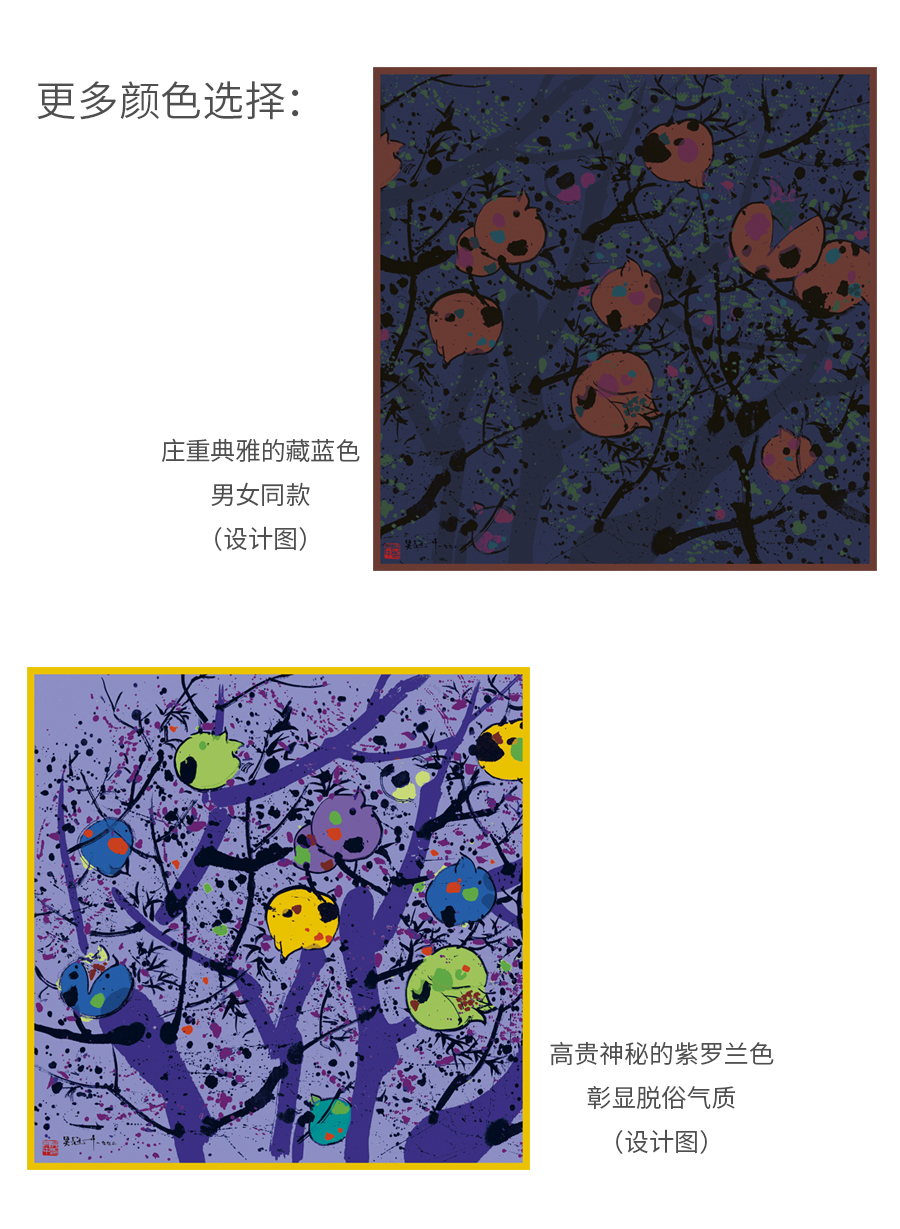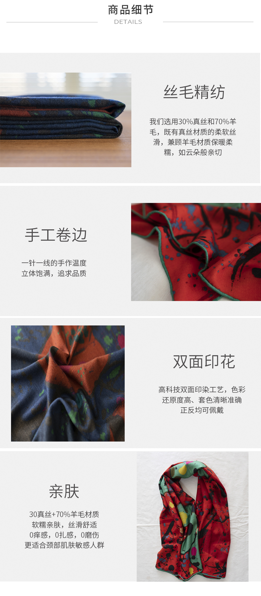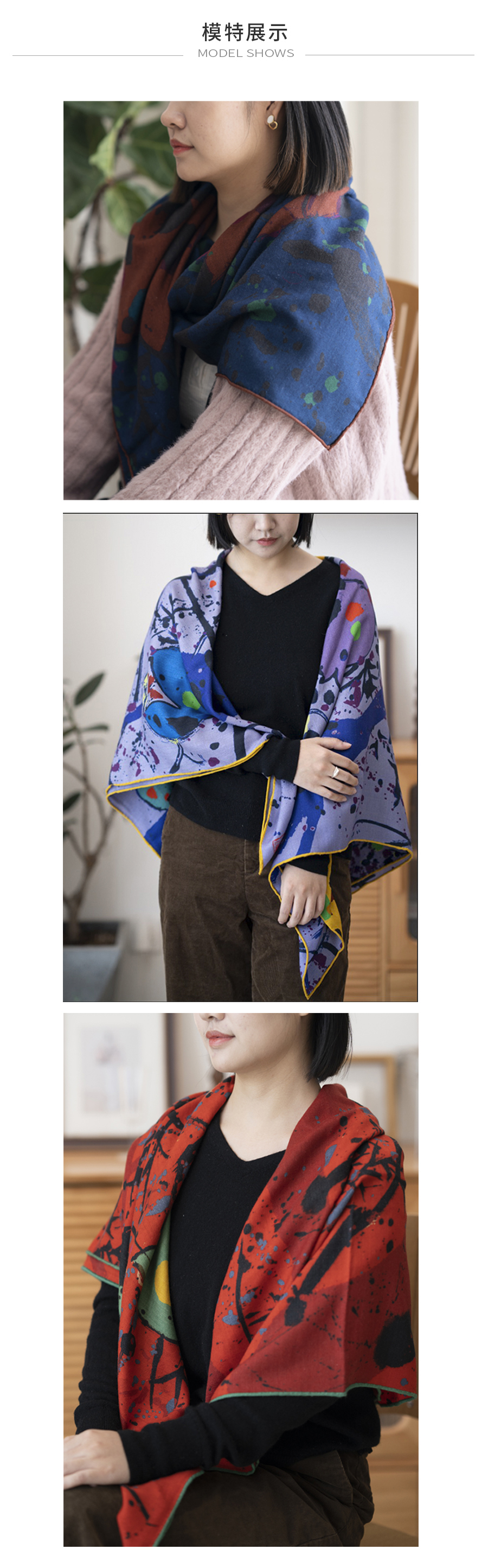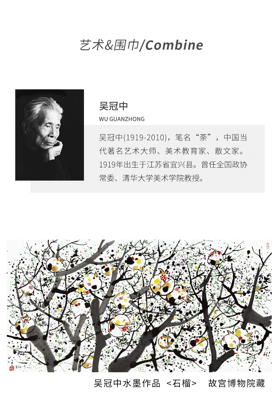 吴冠中艺术围巾《石榴》双面印花丝毛精纺大方巾