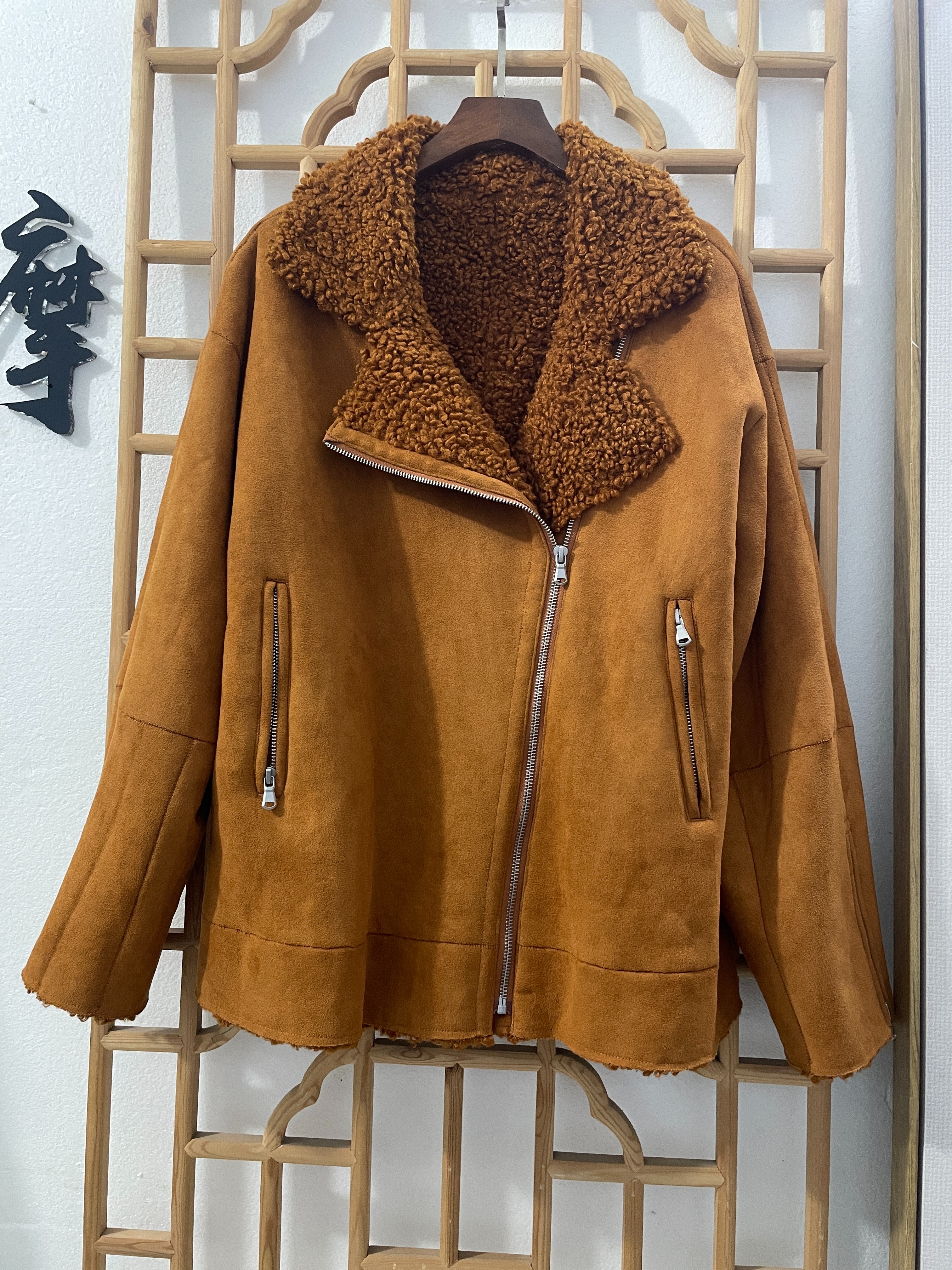 「断码清仓」优质复合仿羊羔毛皮毛一体大衣颗粒羊剪绒外套 L码 ZFYY229
