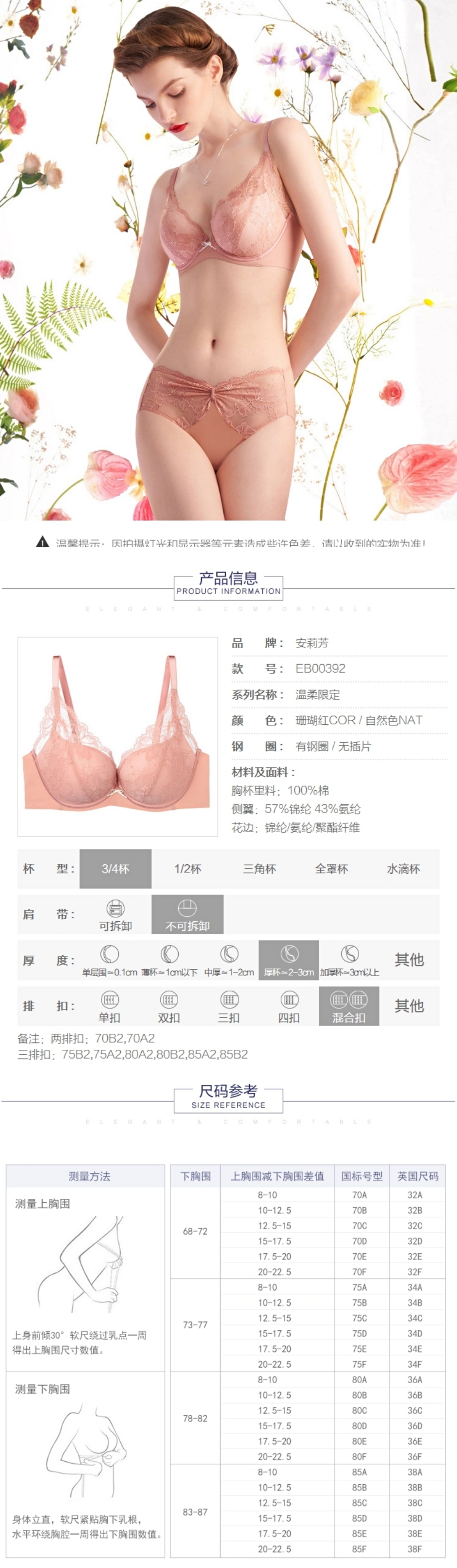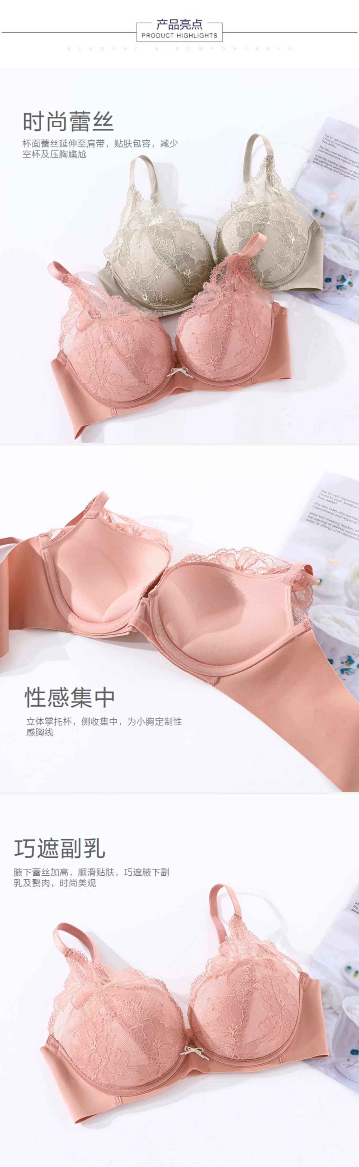 安莉芳小胸厚杯上托聚拢文胸女性感蕾丝收副乳内衣EB00392