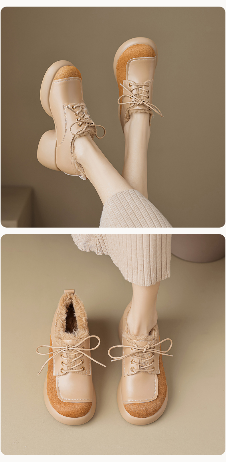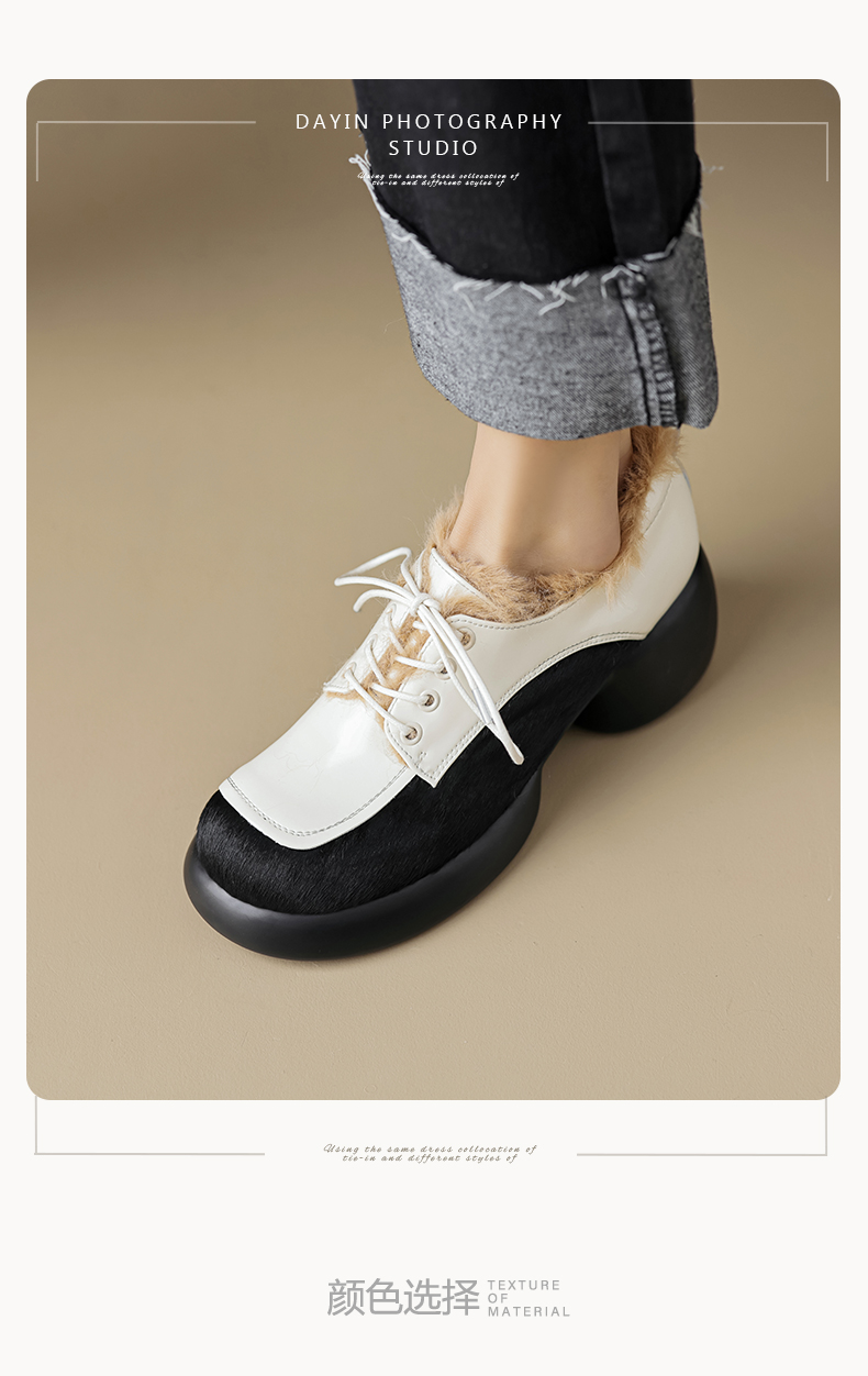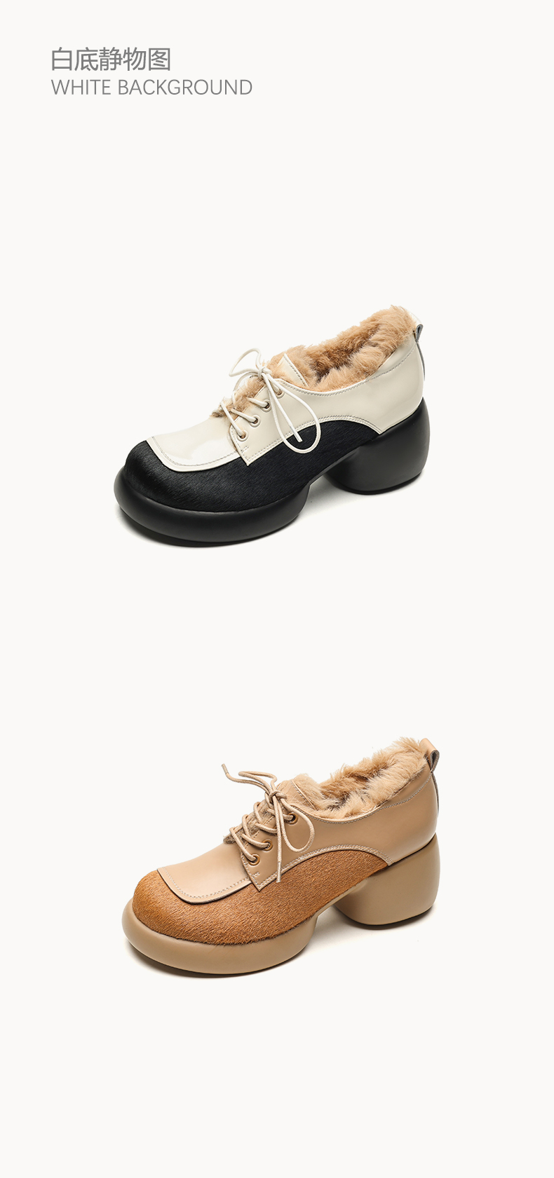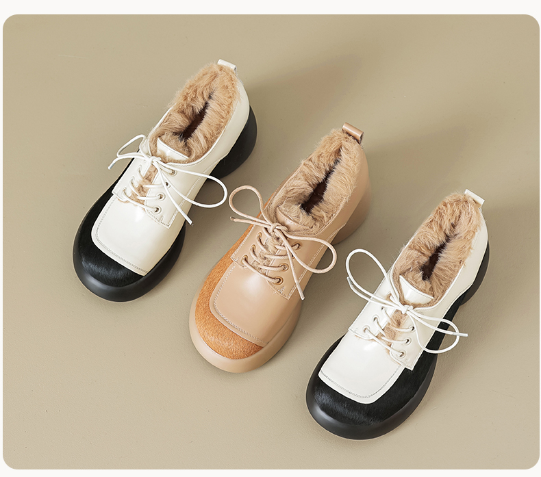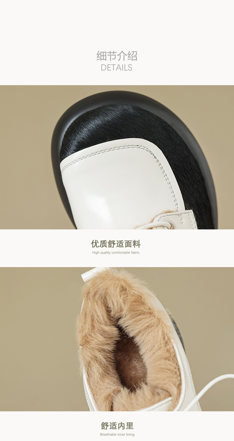 舒适百搭,圆头厚底拼接撞色保暖毛里单鞋QQ-168644