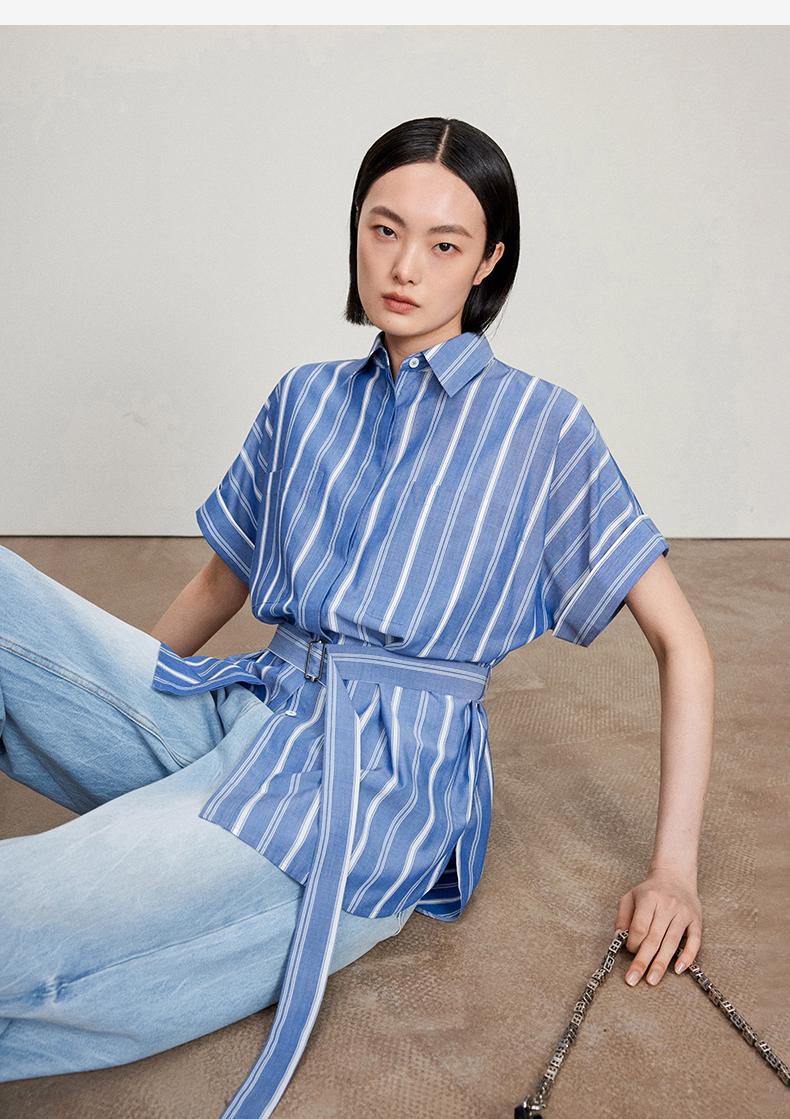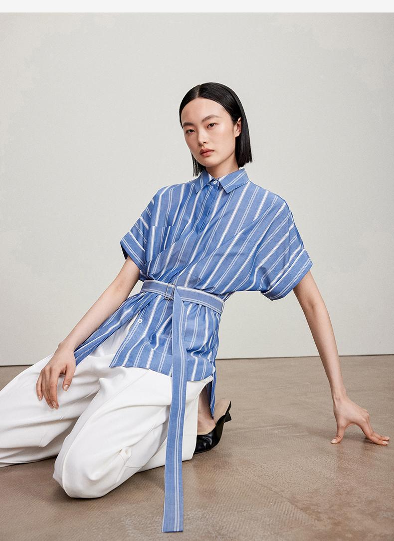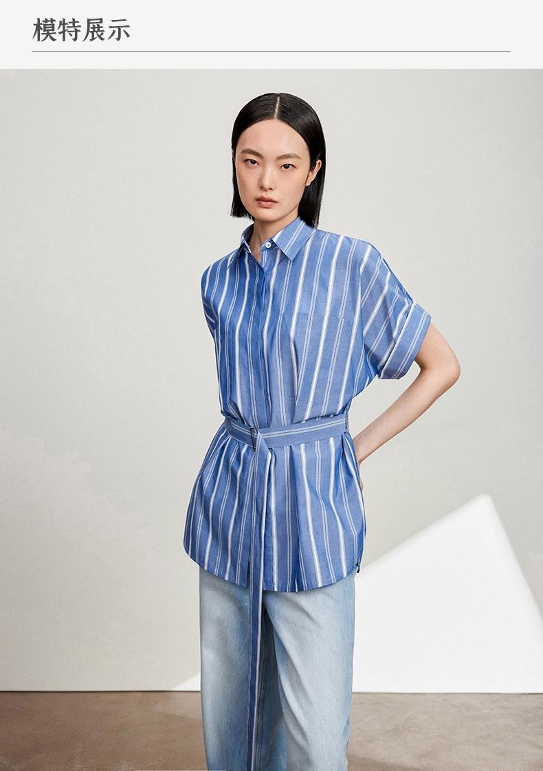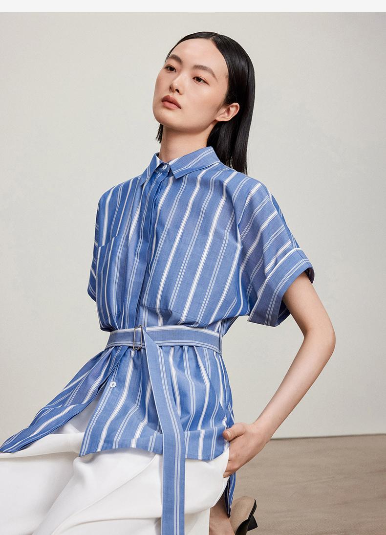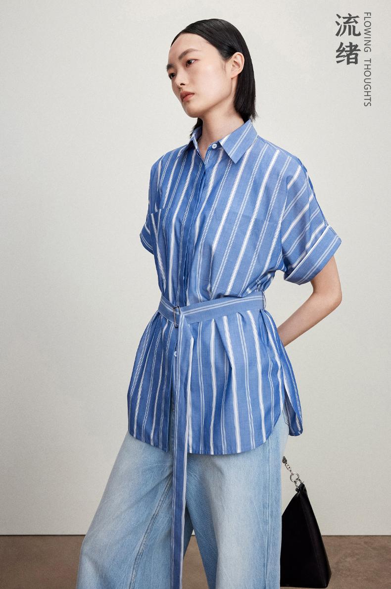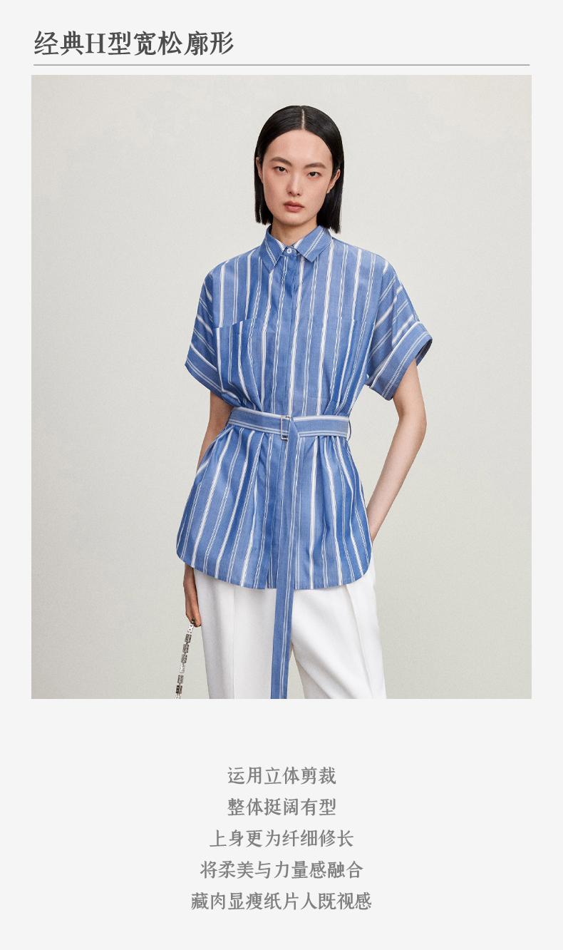 西嘉C+IMPRESS/西嘉法式气质通勤风铜氨竖条纹腰带衬衫女夏轻奢优雅CS2402013