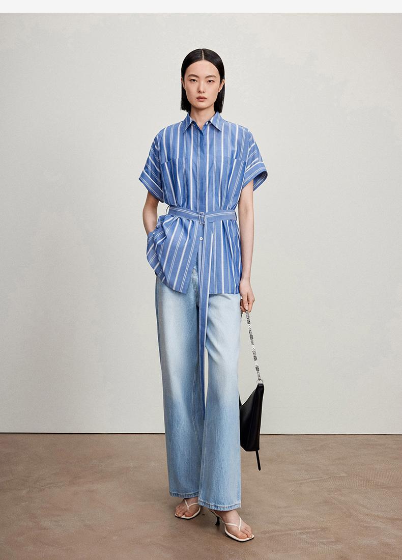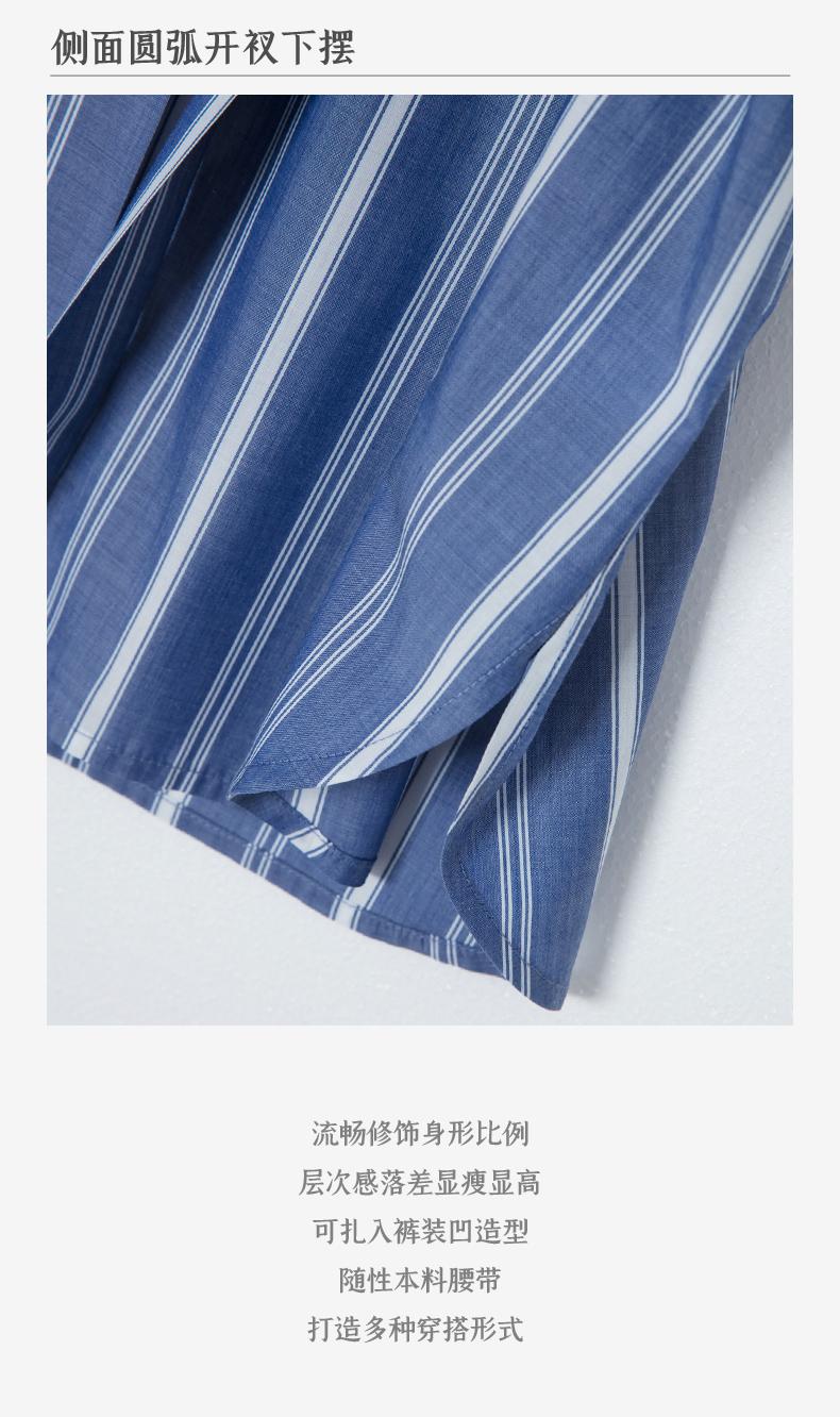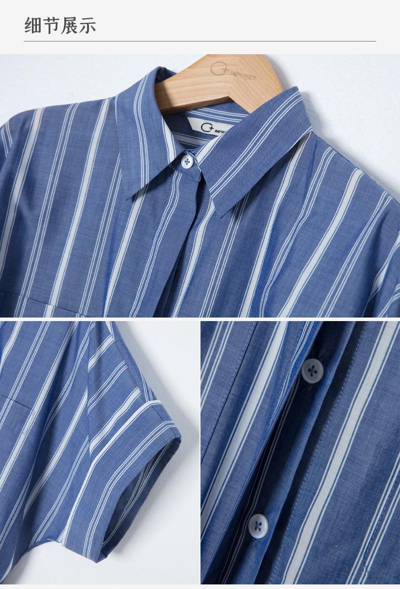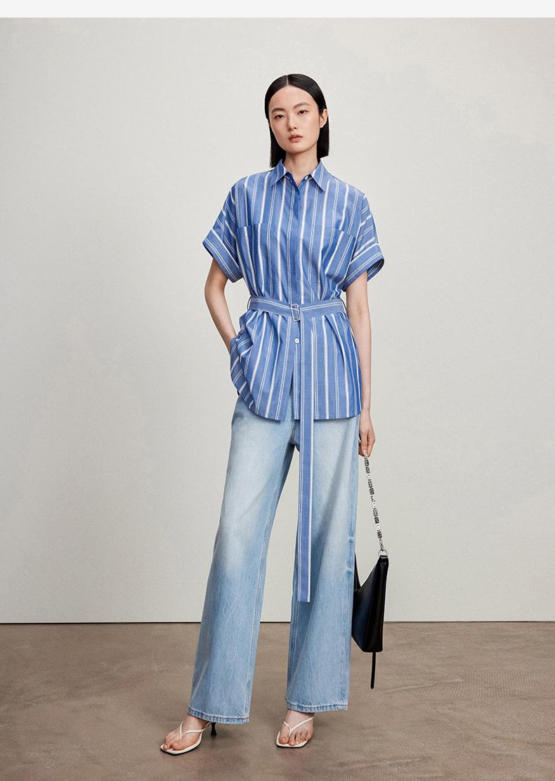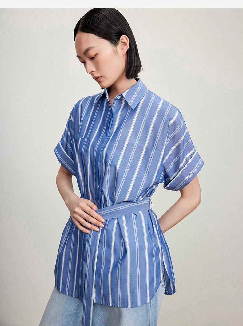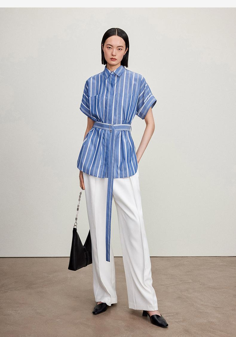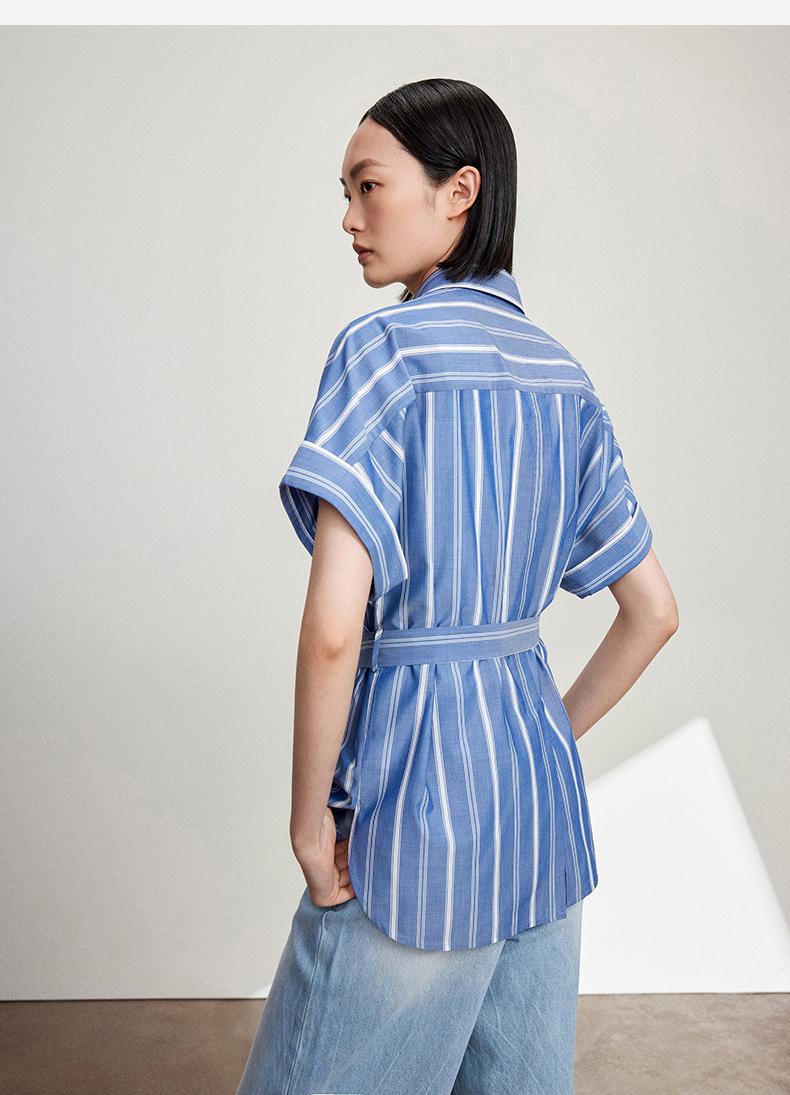 西嘉C+IMPRESS/西嘉法式气质通勤风铜氨竖条纹腰带衬衫女夏轻奢优雅CS2402013