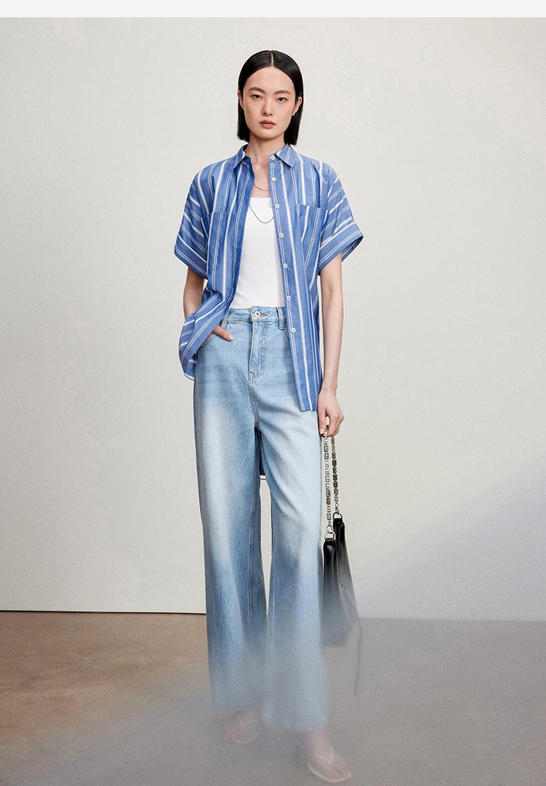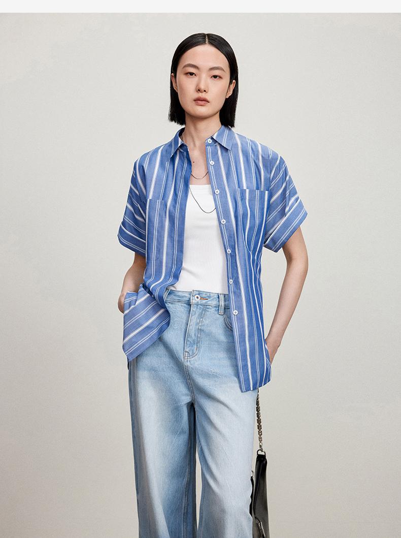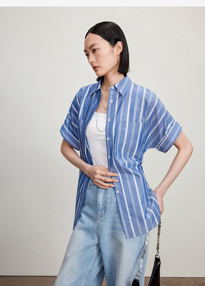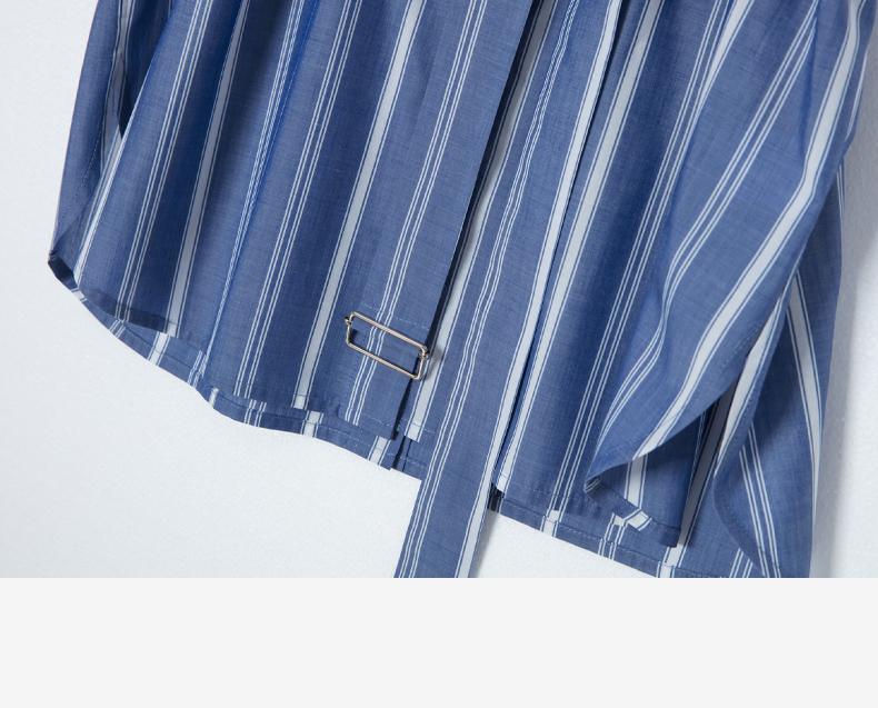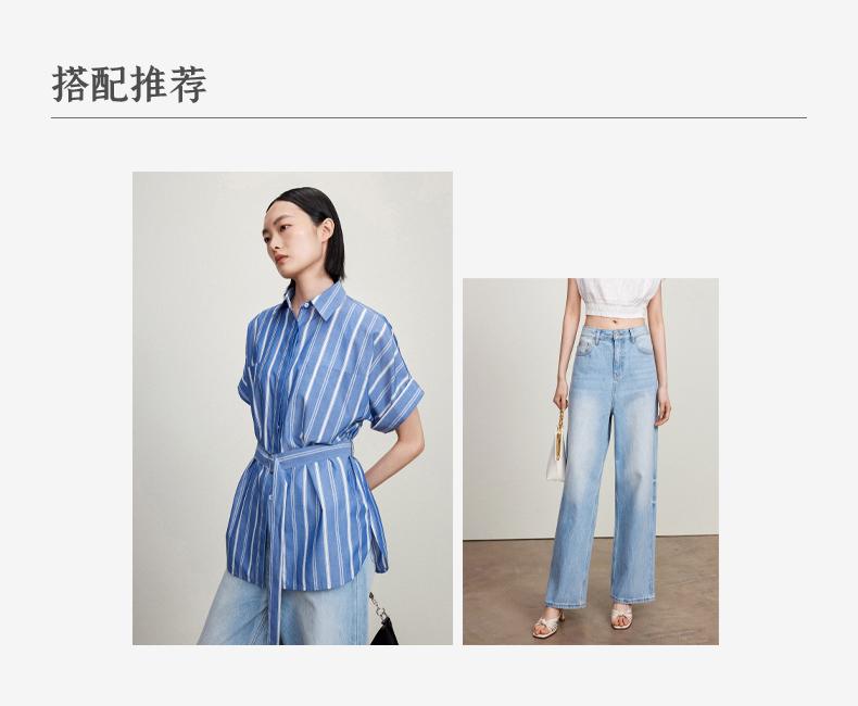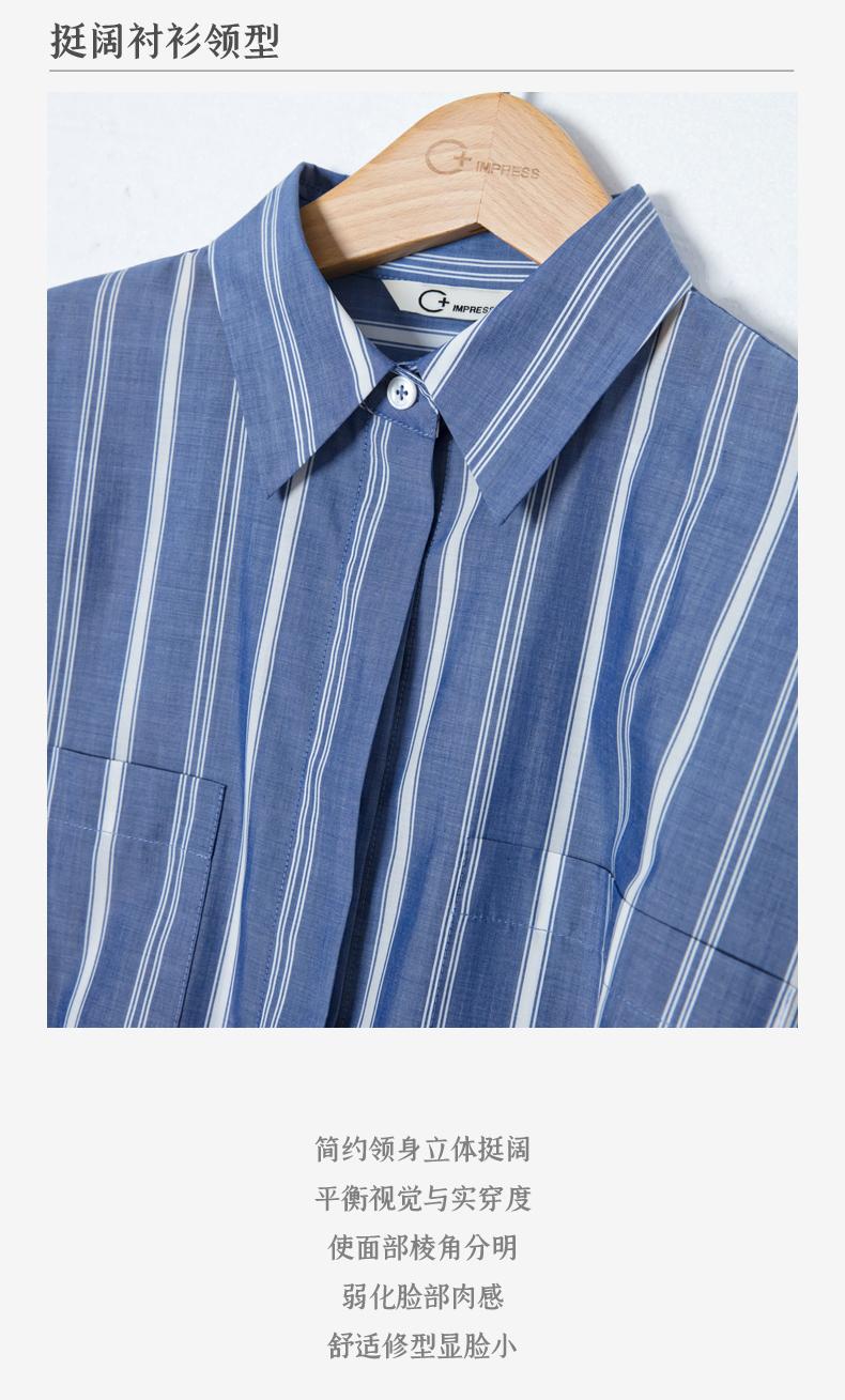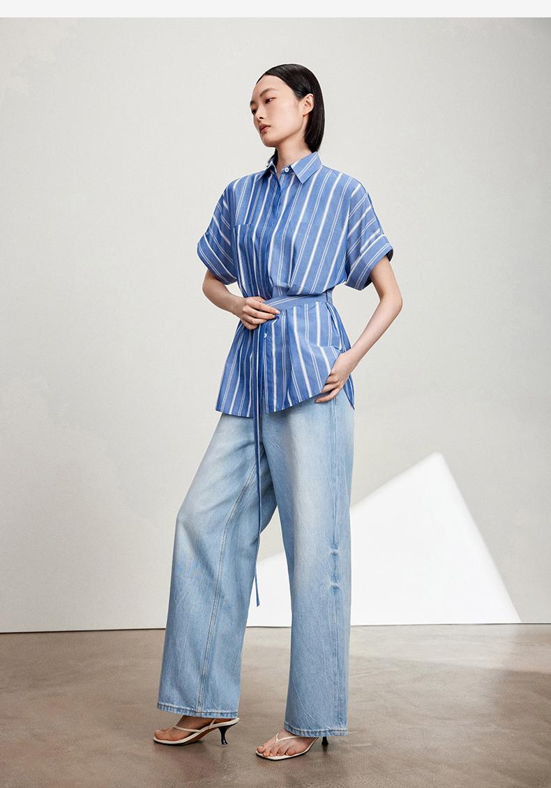 西嘉C+IMPRESS/西嘉法式气质通勤风铜氨竖条纹腰带衬衫女夏轻奢优雅CS2402013