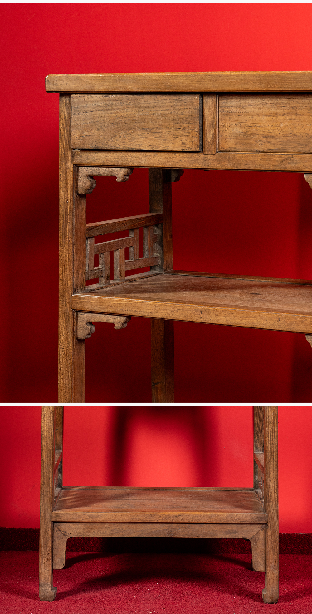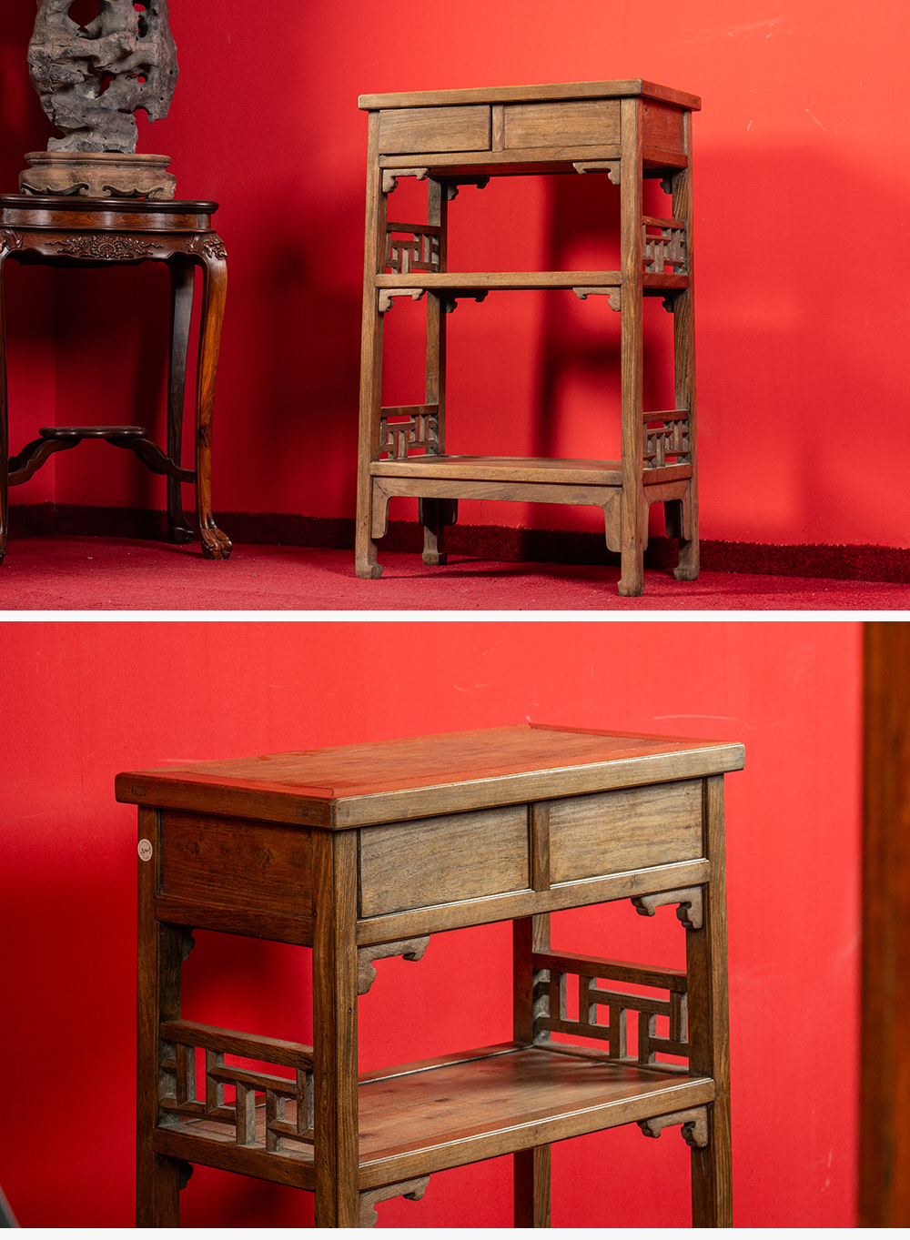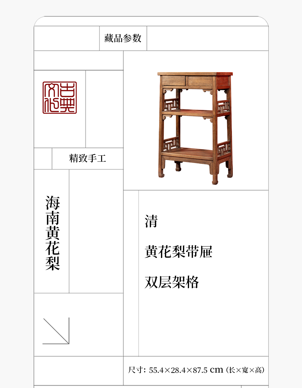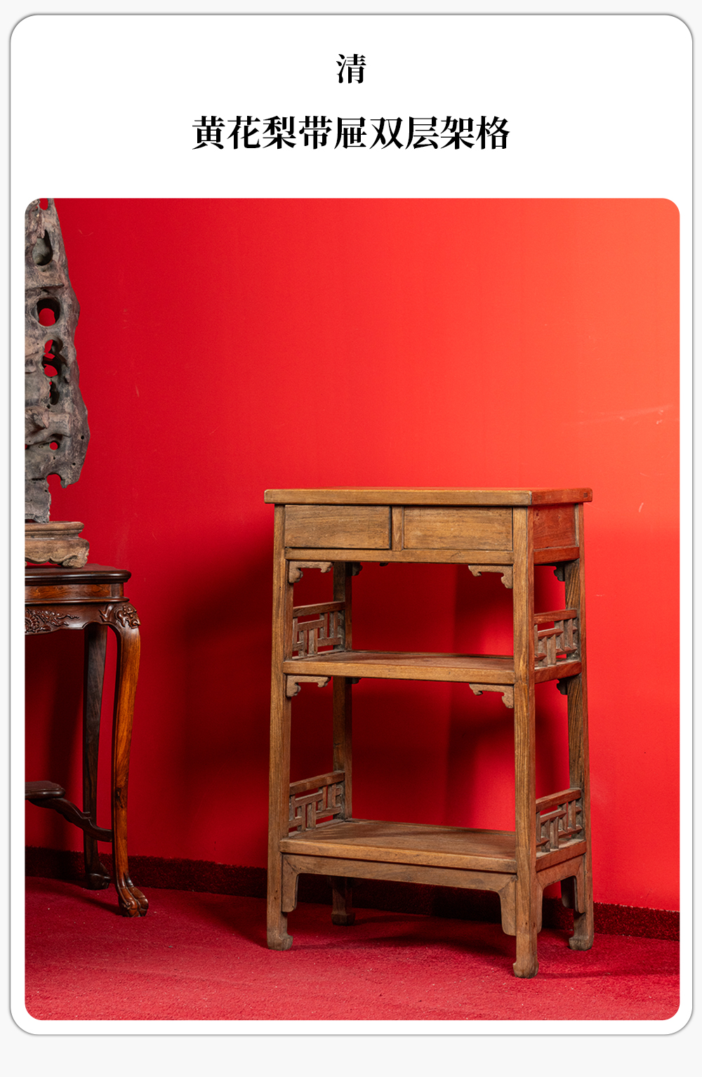 清 黄花梨带屉双层架格