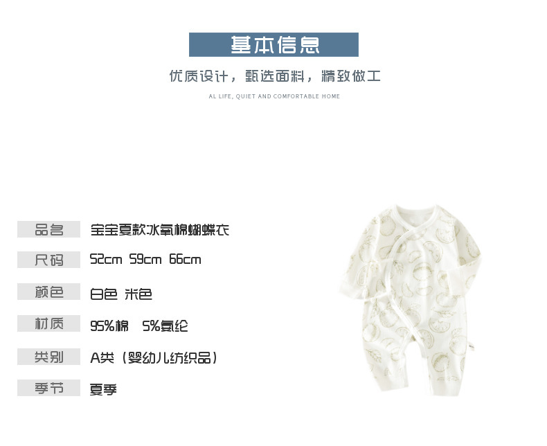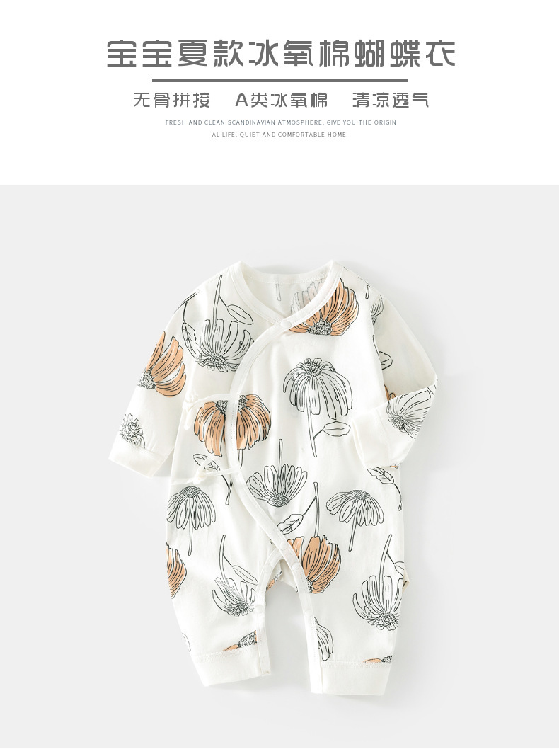 【无骨拼接,清凉透气~】新生婴儿薄款冰氧棉夏款连体衣 新生儿蝴蝶衣 宝宝哈衣 婴幼儿爬服-QQ