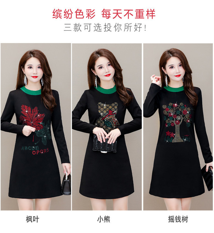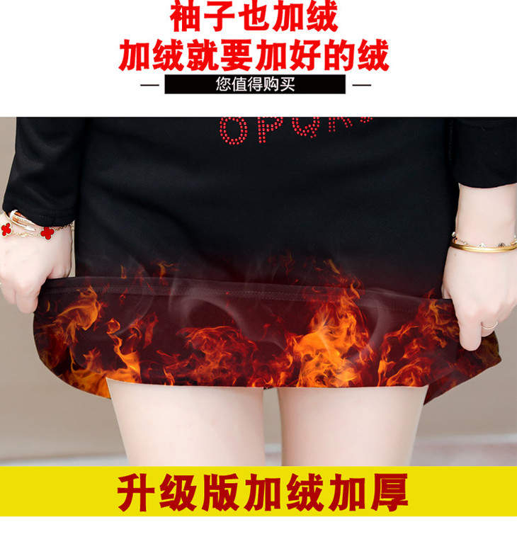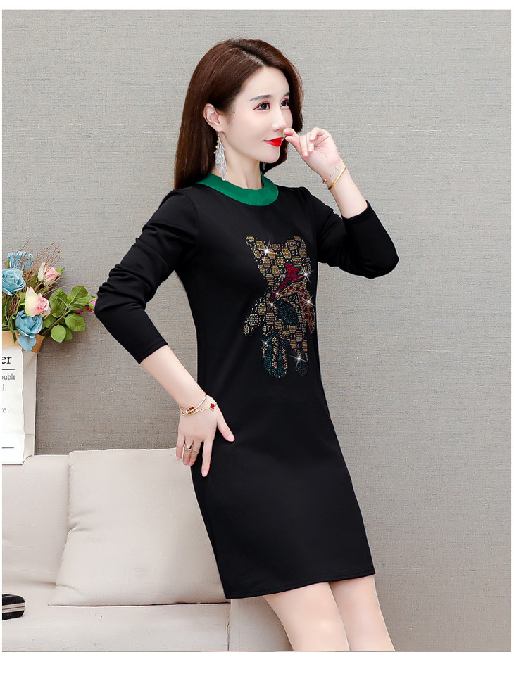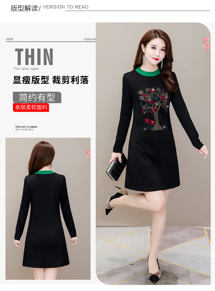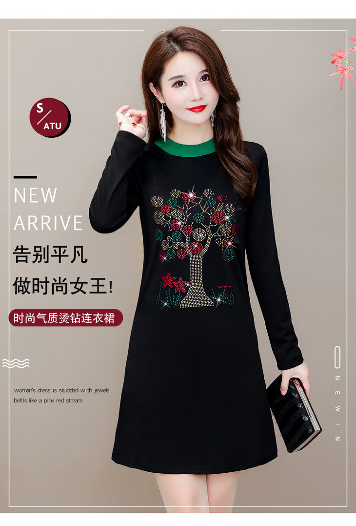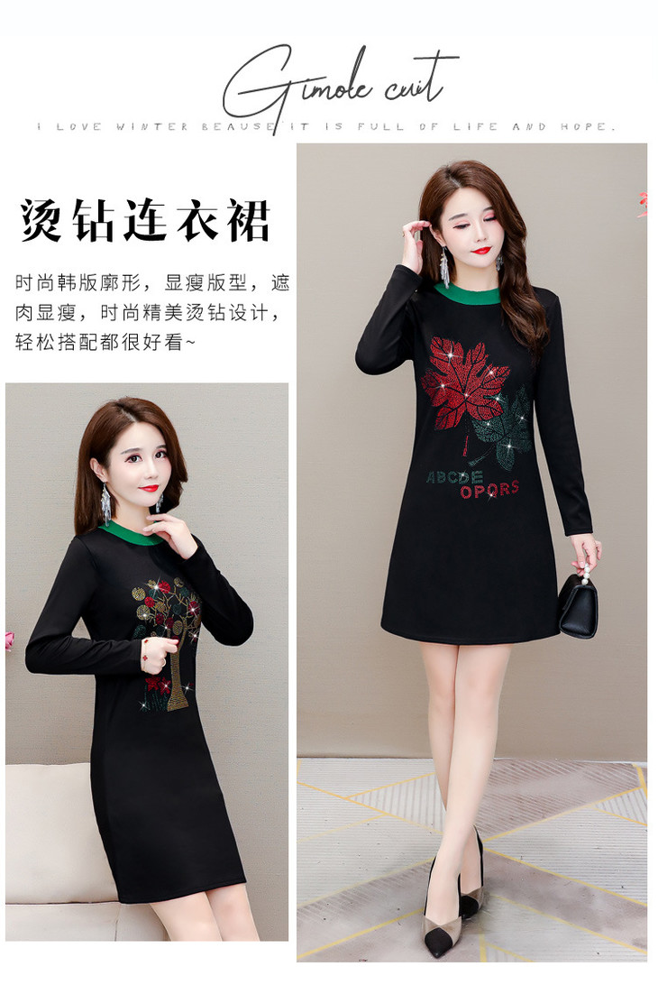 HT-320-1338 2020秋冬新款加绒加厚打底衫中长款大码显瘦烫钻洋气连衣裙