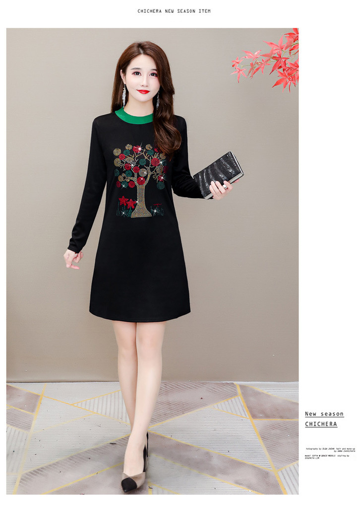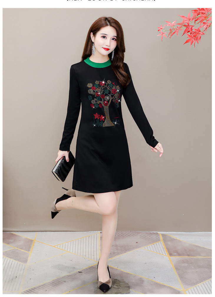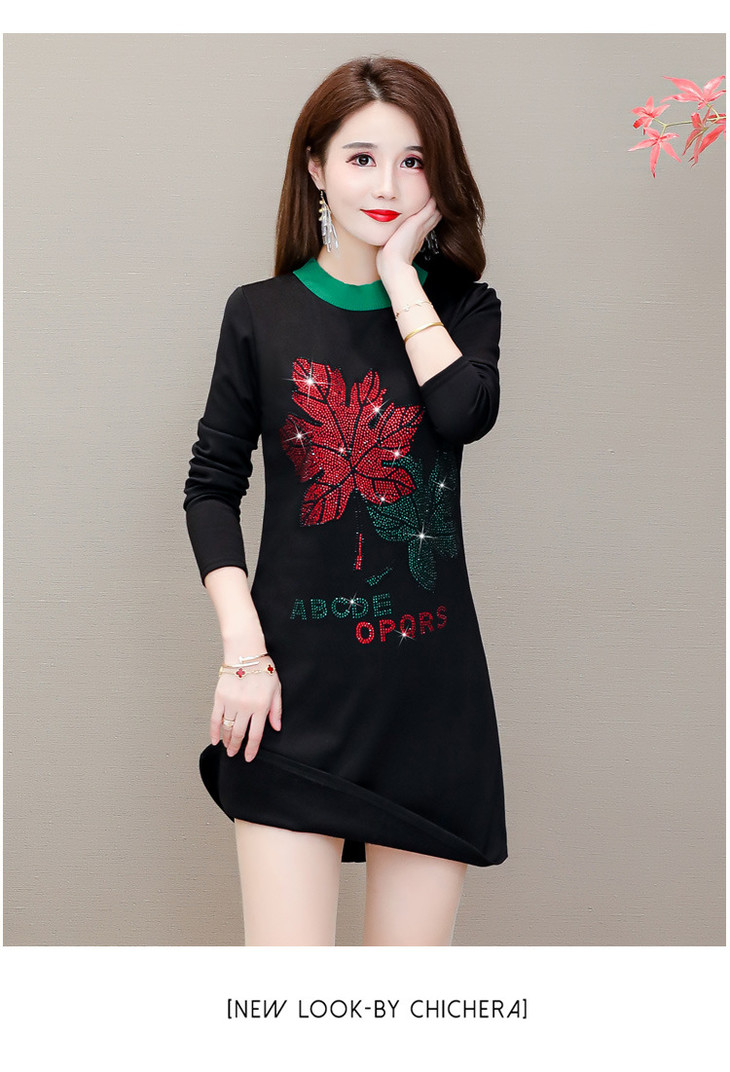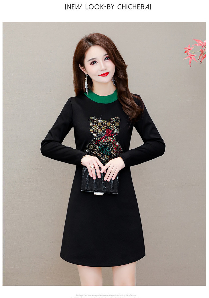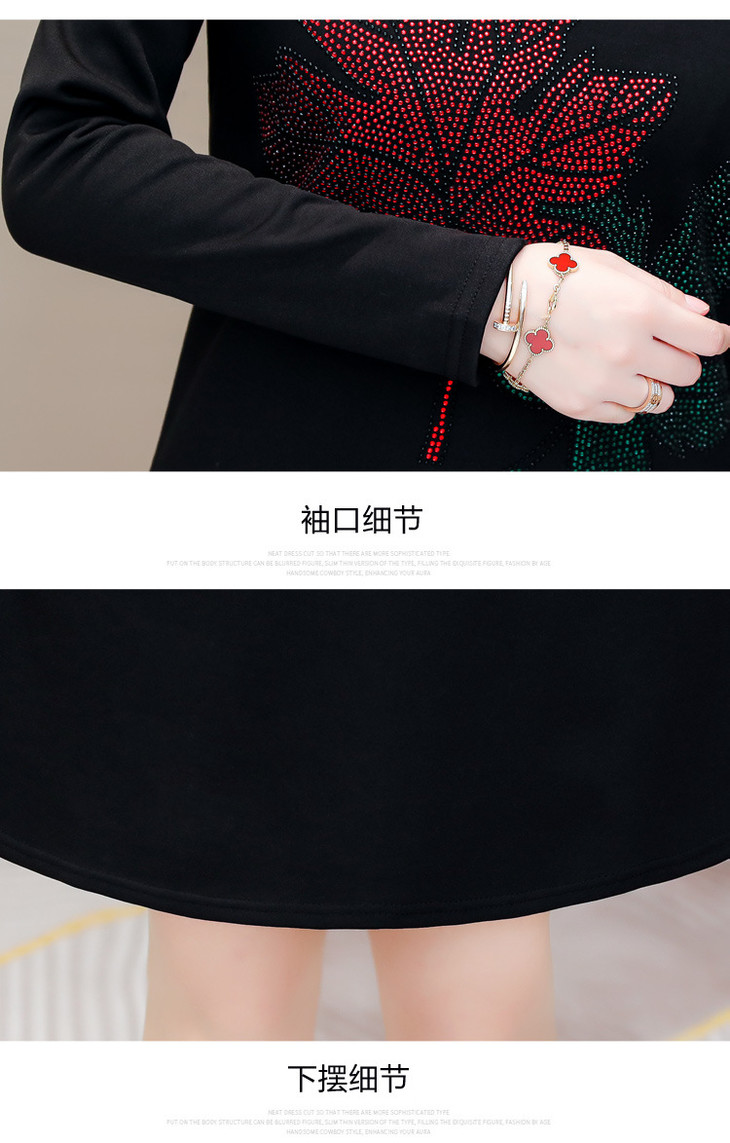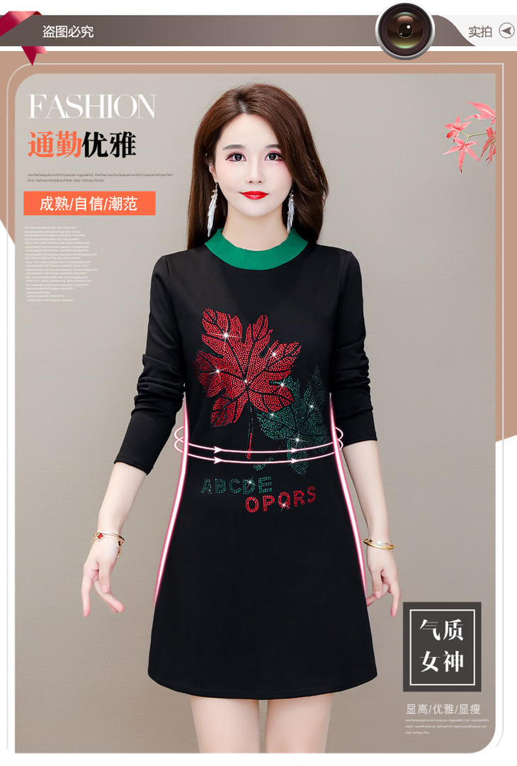 HT-320-1338 2020秋冬新款加绒加厚打底衫中长款大码显瘦烫钻洋气连衣裙
