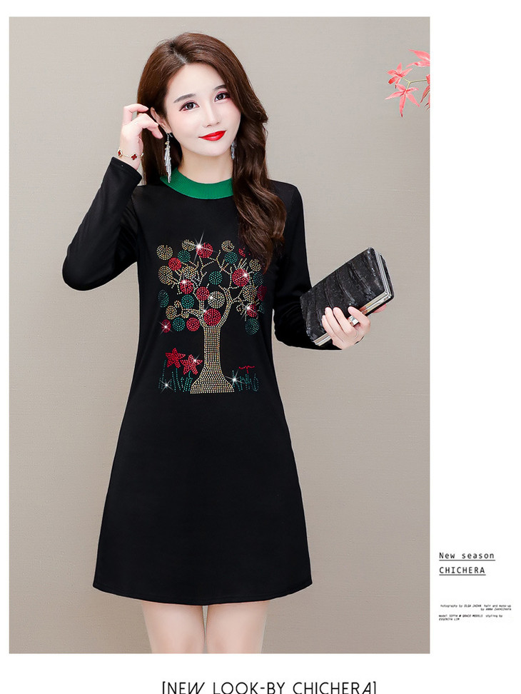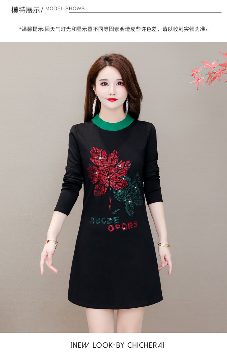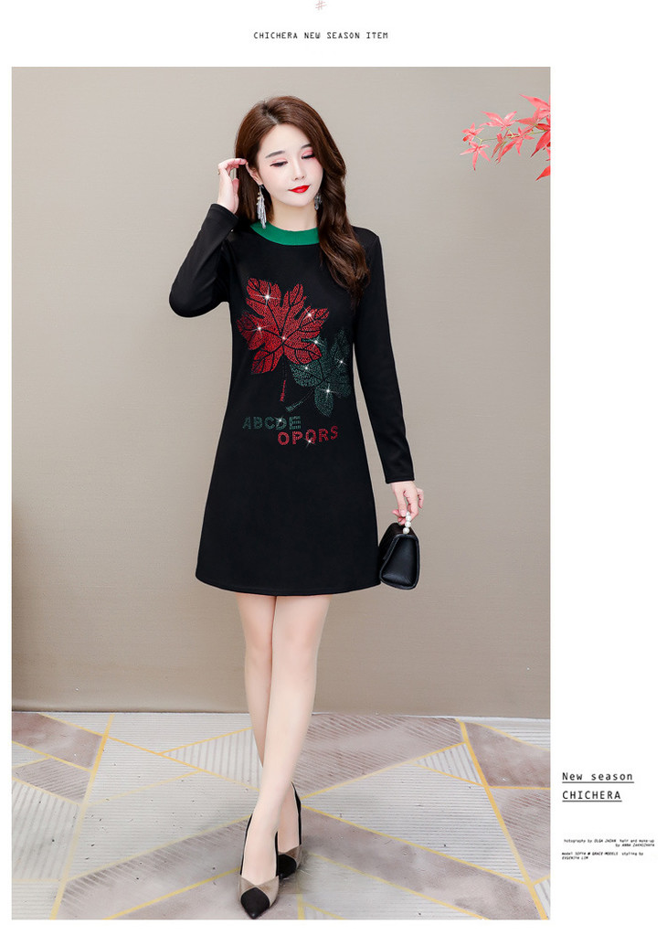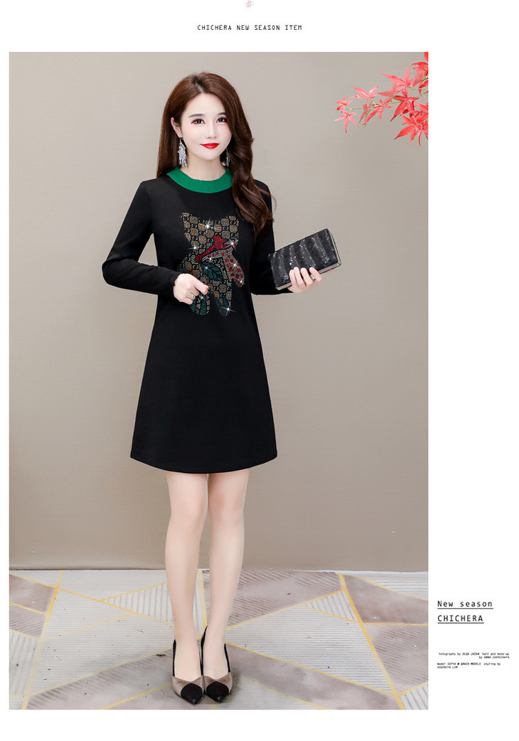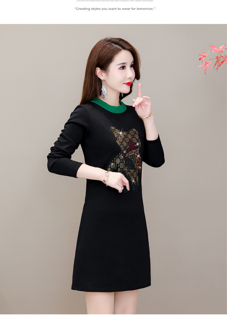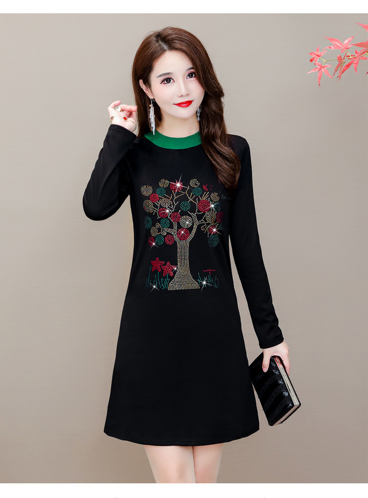 HT-320-1338 2020秋冬新款加绒加厚打底衫中长款大码显瘦烫钻洋气连衣裙
