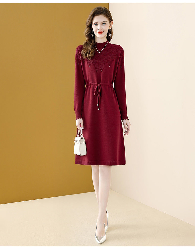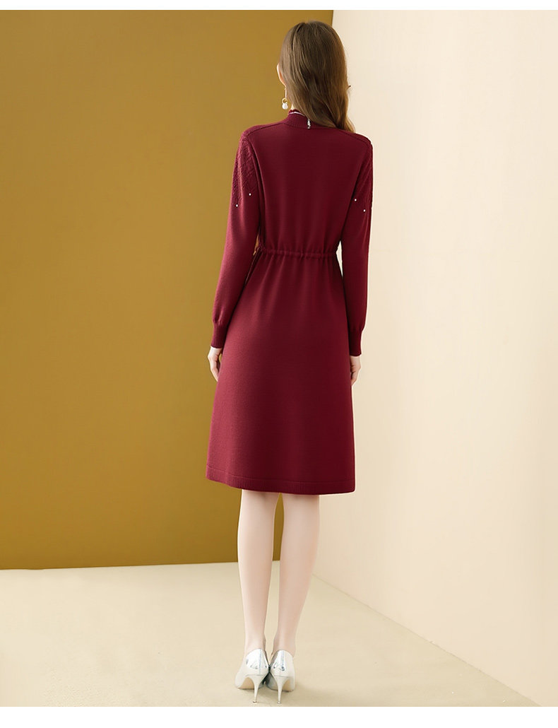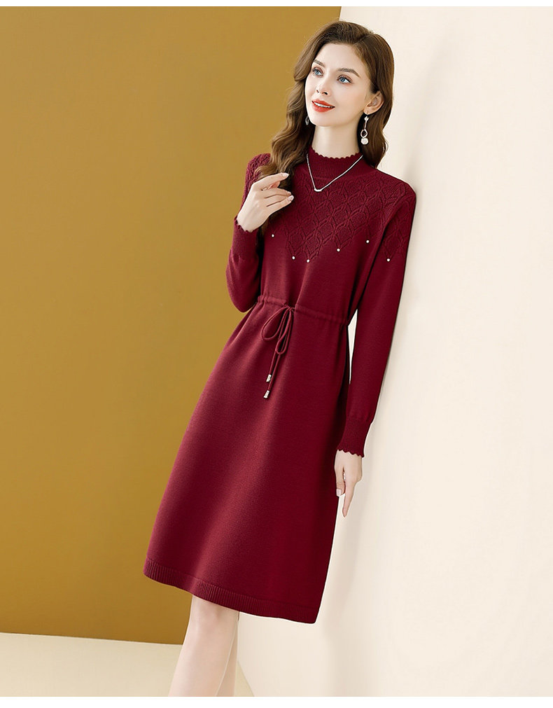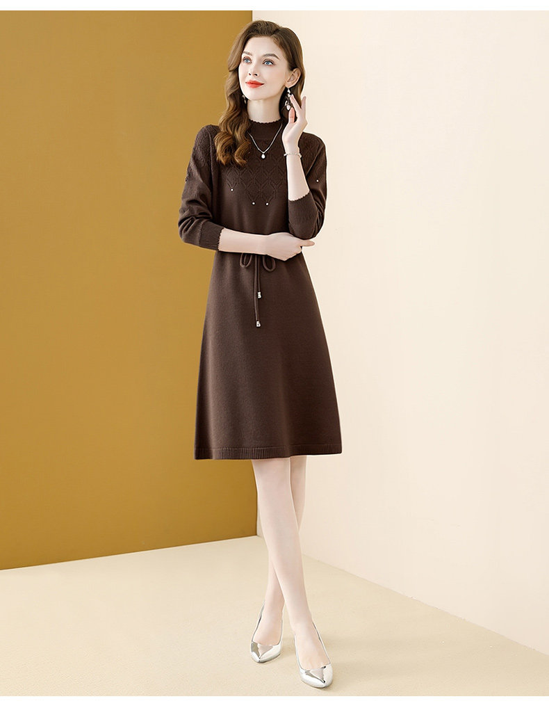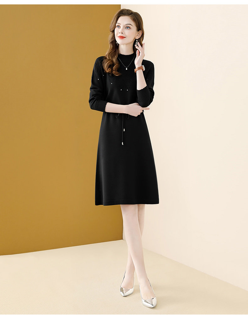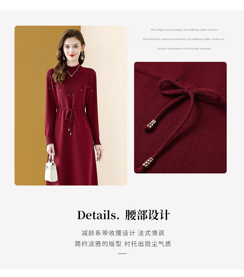 「自」全新升级【铂金会员201/天猫269/差价68】(35018)洛诗琳半高领长袖针织连衣裙女2025秋冬新款洋气镶钻系带显瘦打底裙