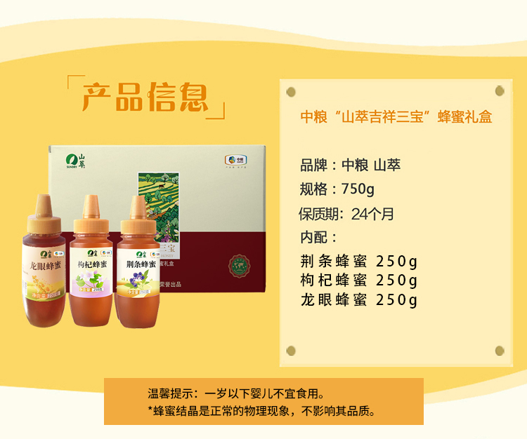 中粮山萃吉祥三宝蜂蜜礼盒750g