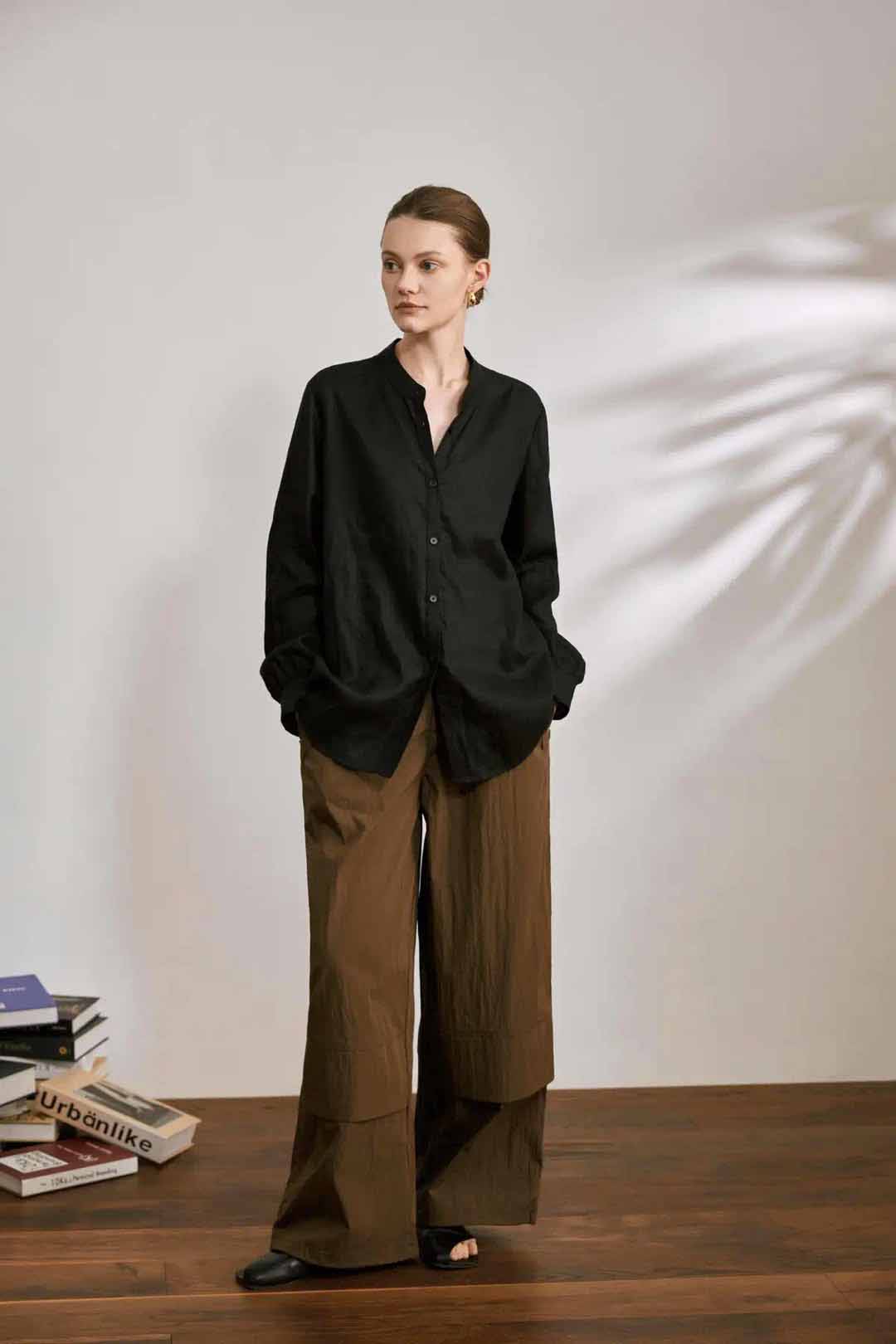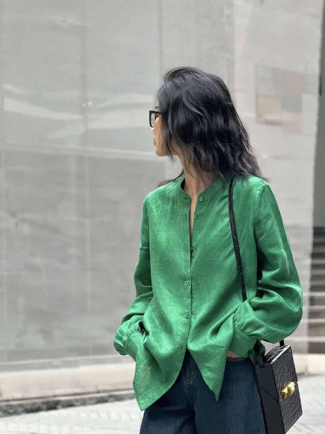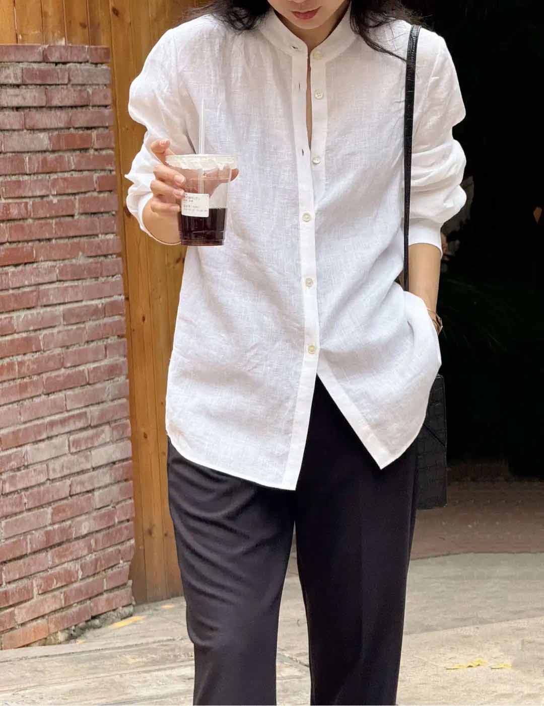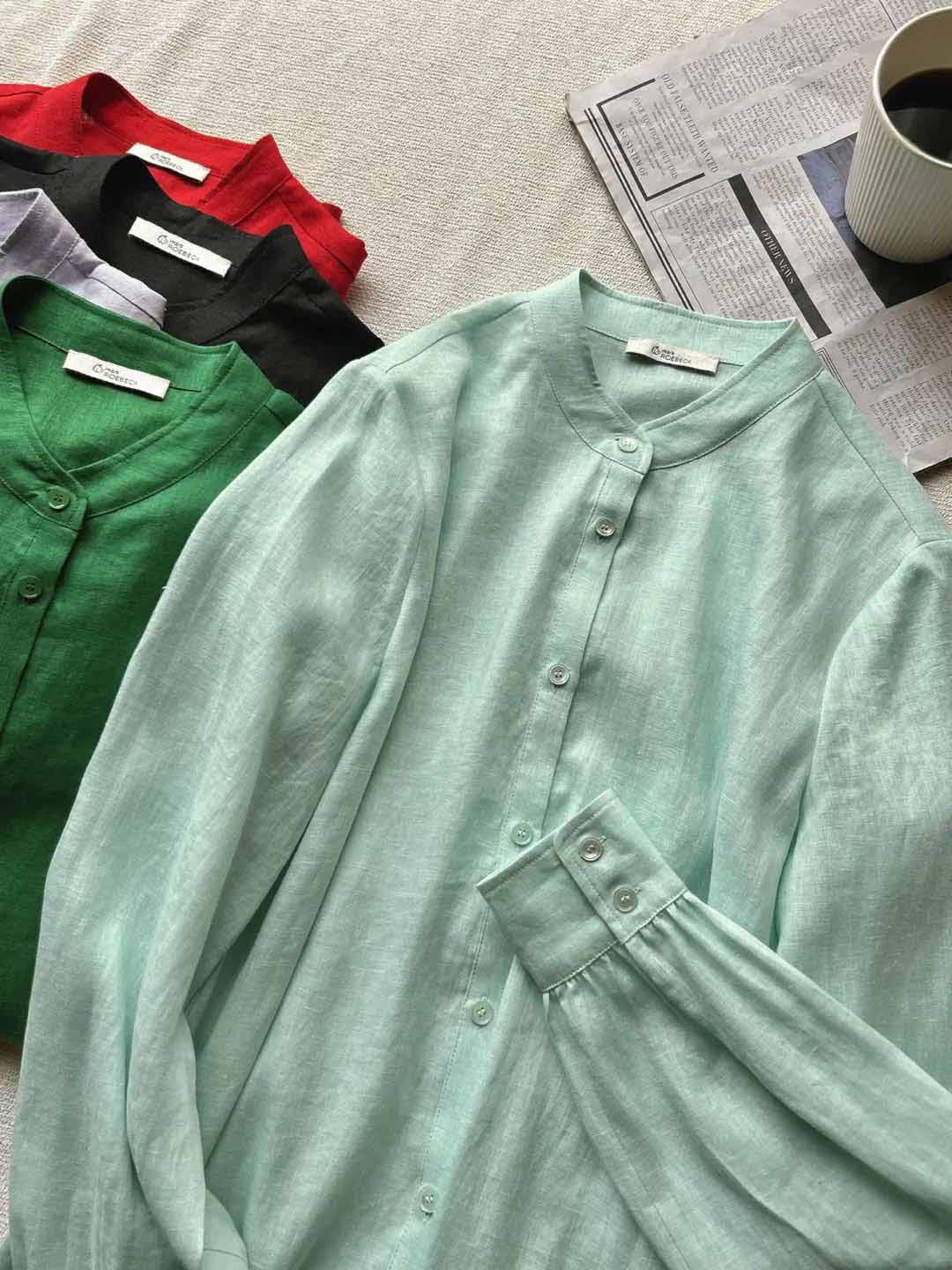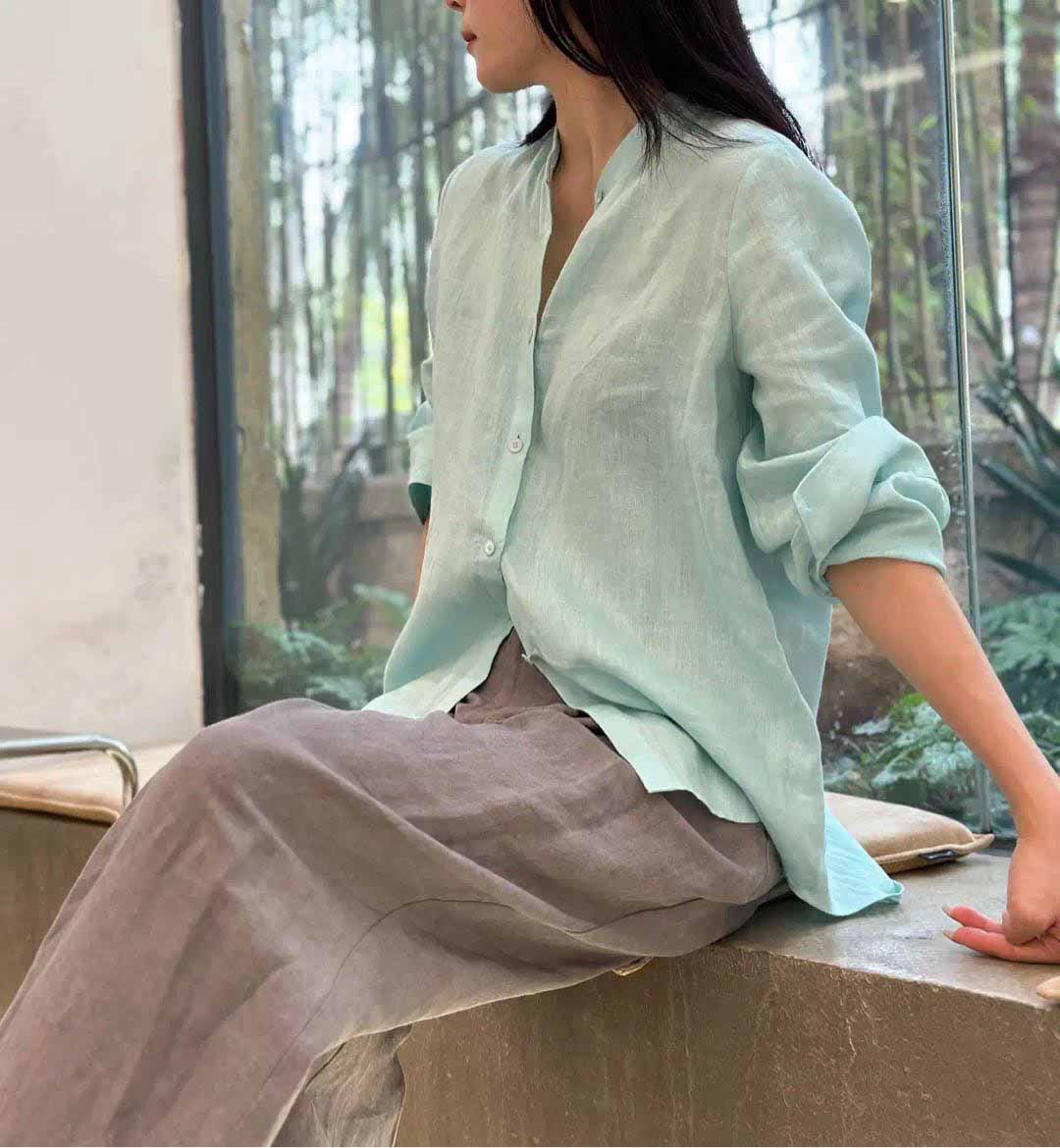 顺丰包邮40901洛诗琳新中式改良小立领禅意老钱风亚麻衬衫006