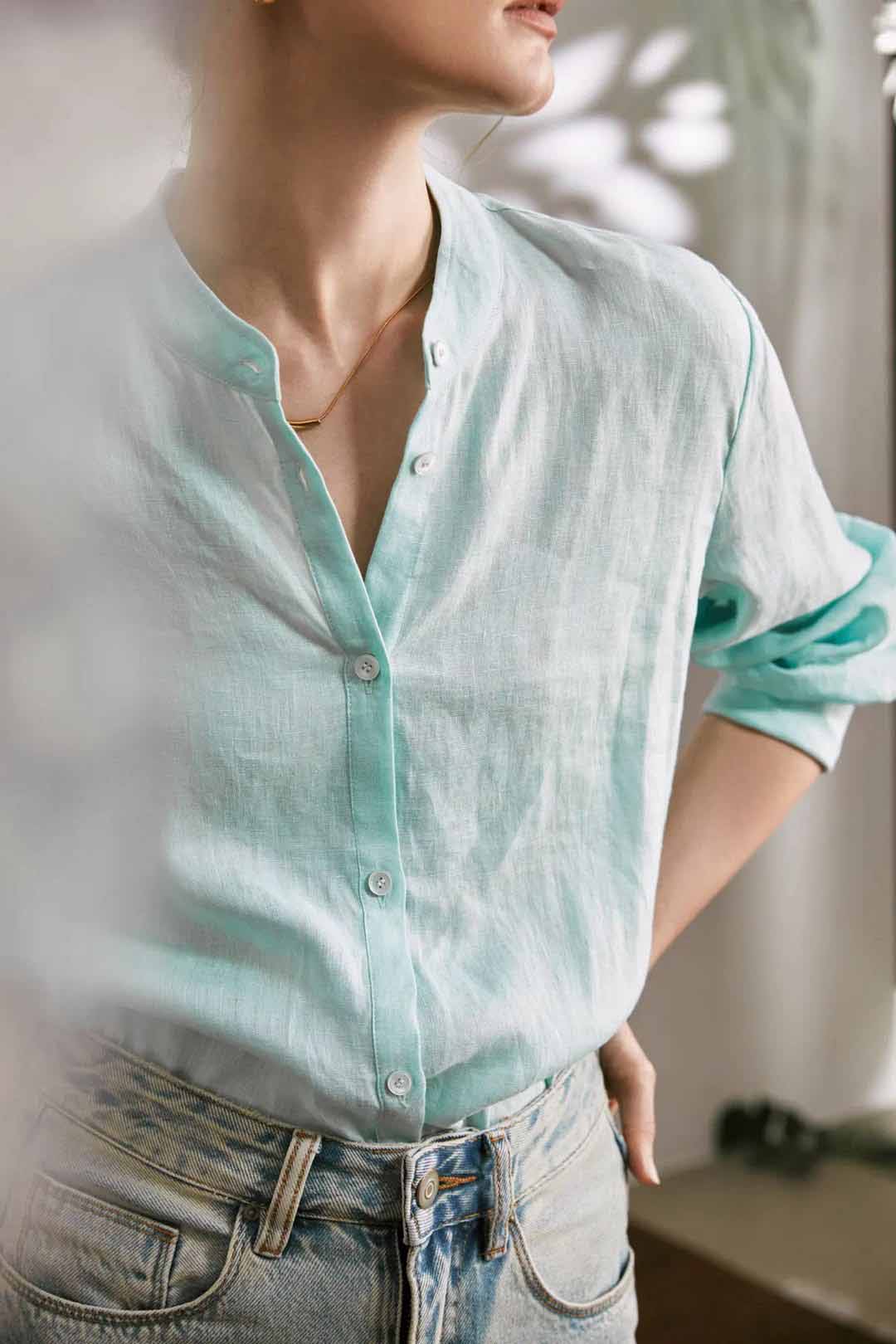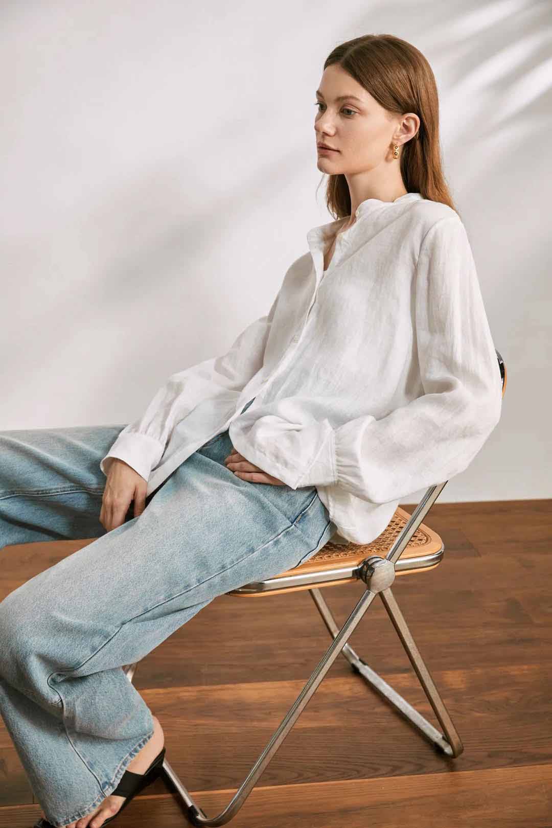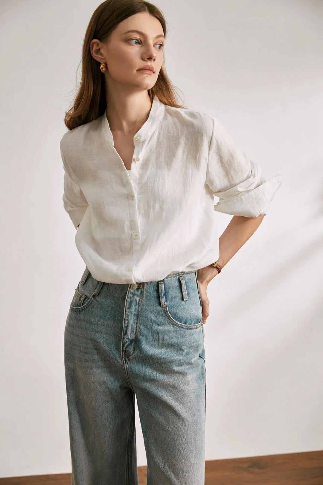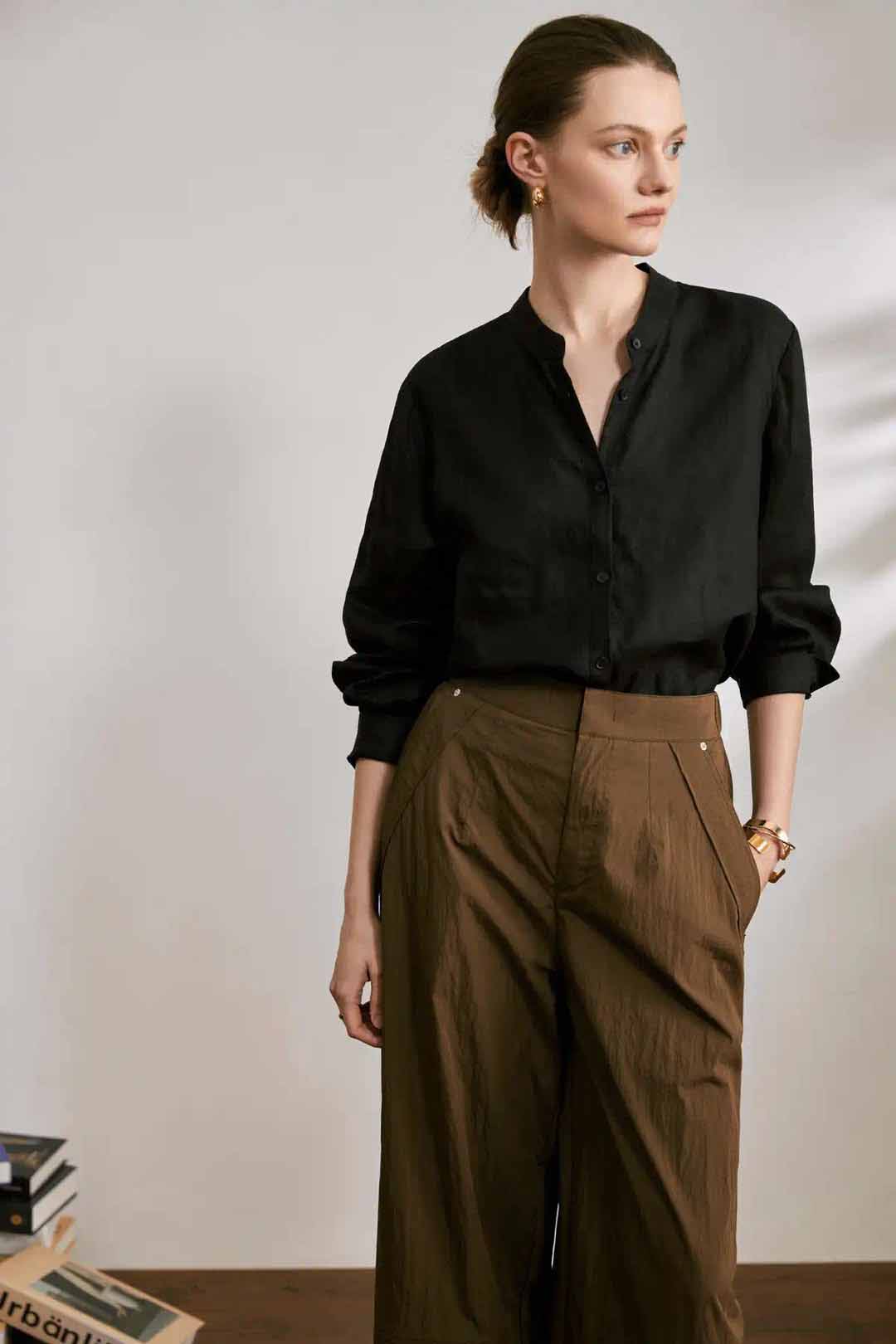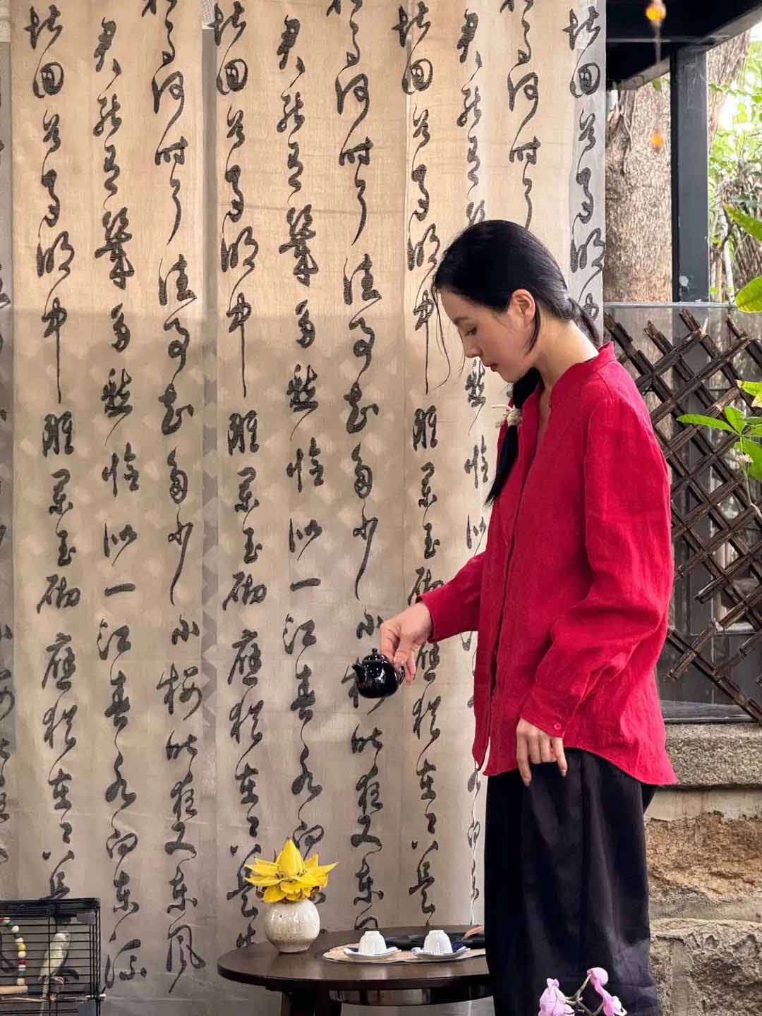 顺丰包邮40901洛诗琳新中式改良小立领禅意老钱风亚麻衬衫006