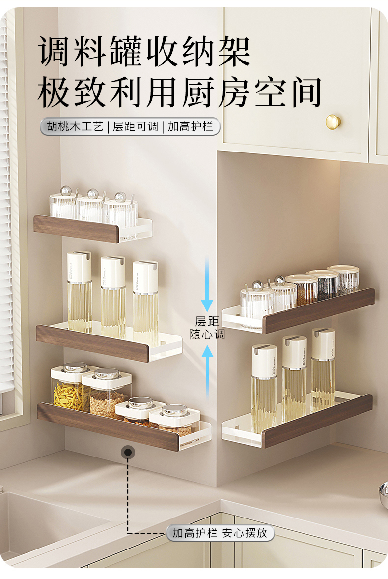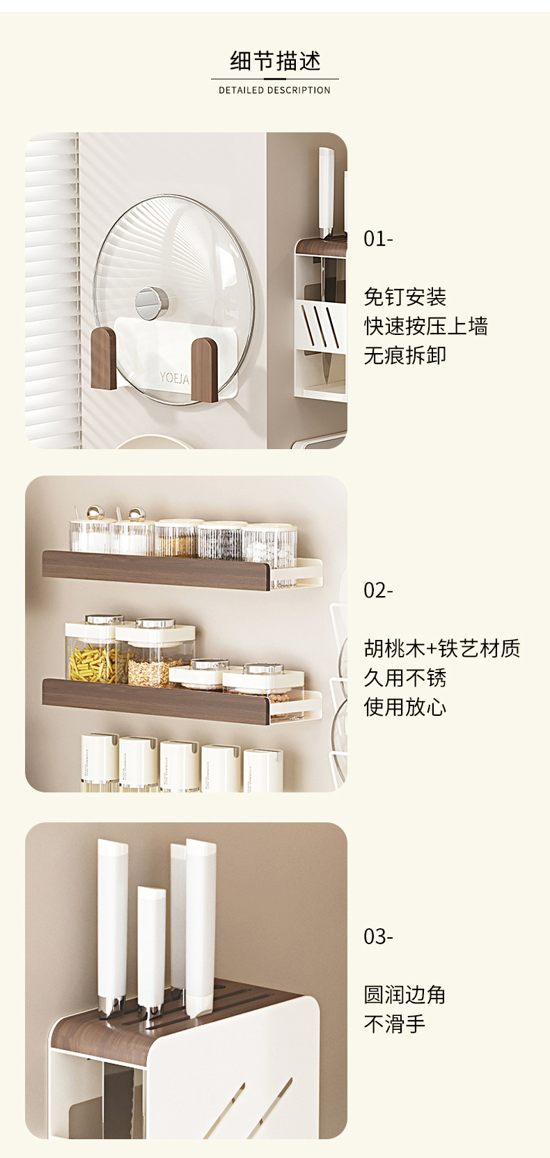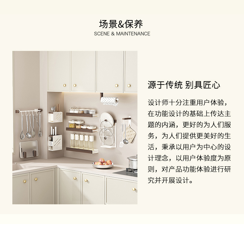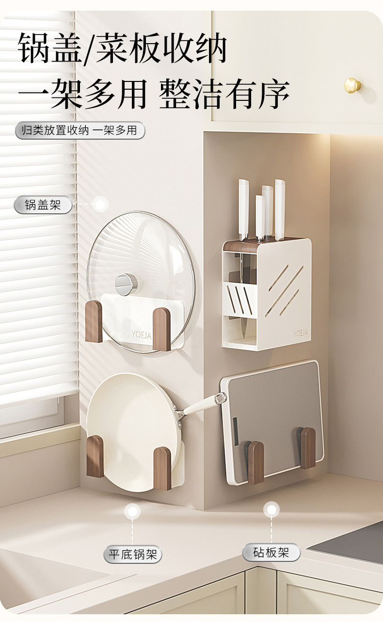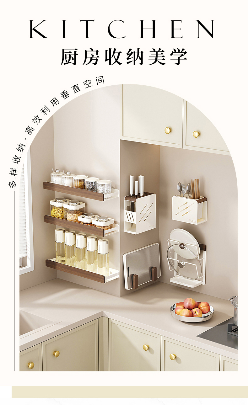 摩登主妇胡桃木厨房置物架壁挂式免打孔刀架锅盖多功能调料收纳架