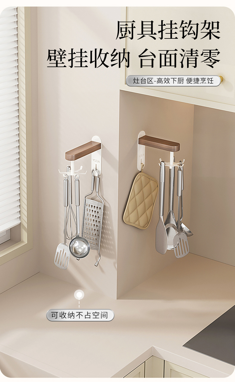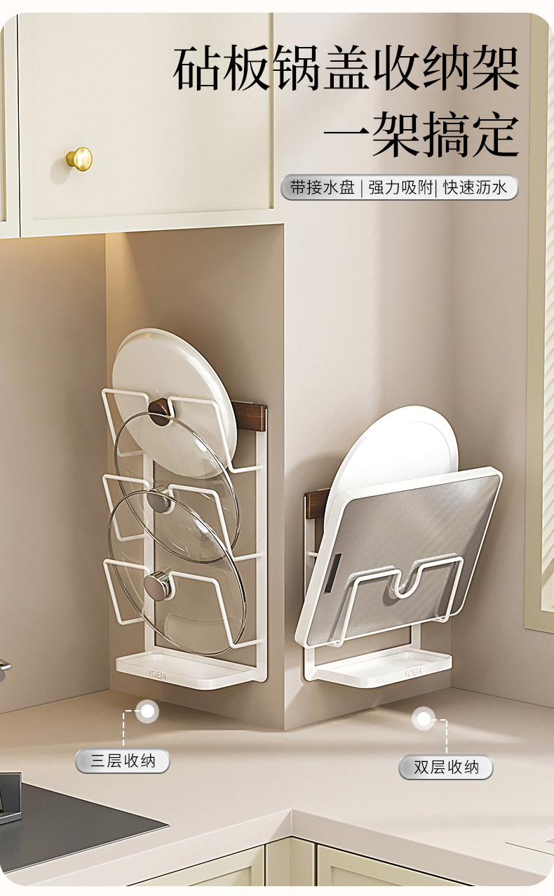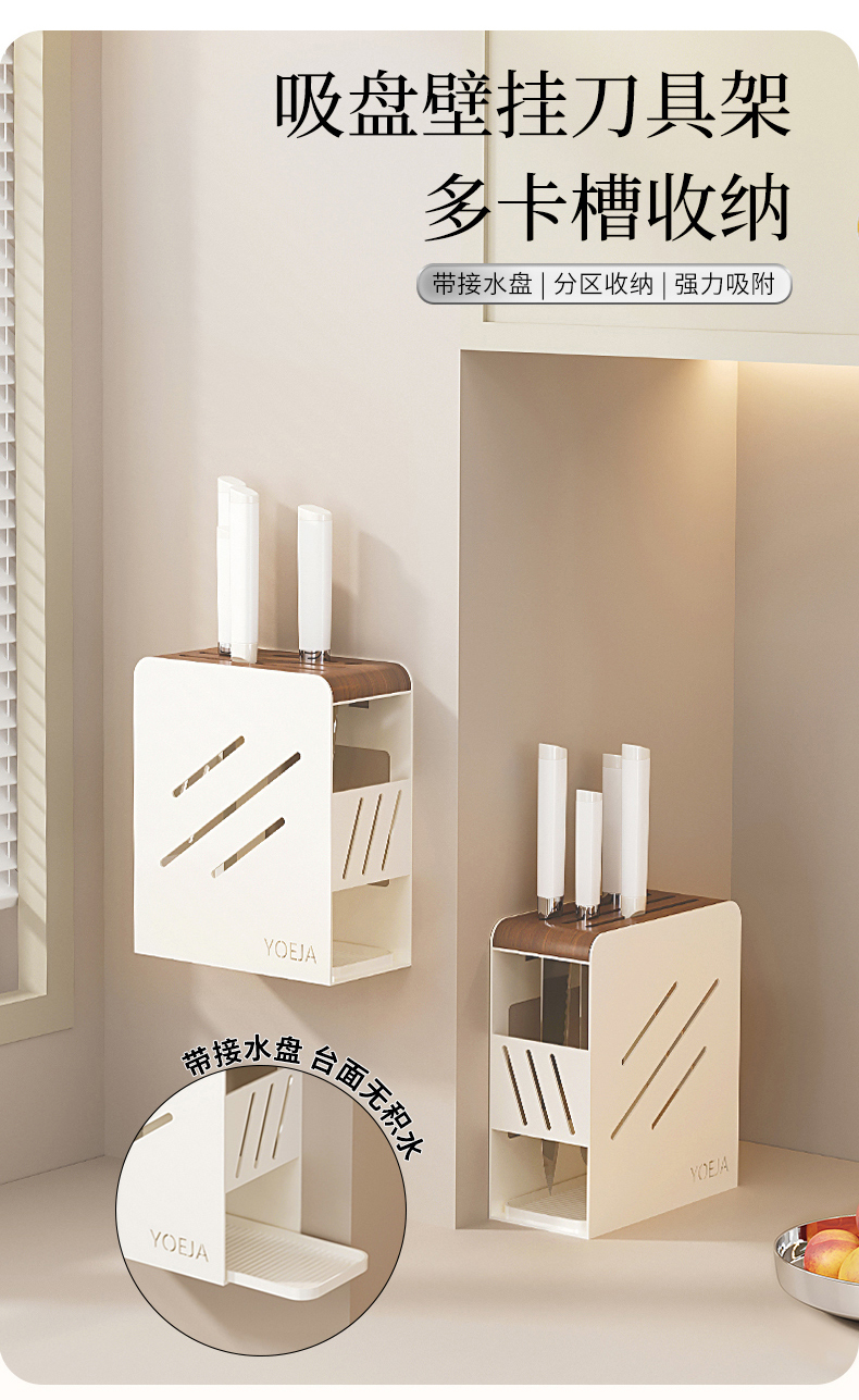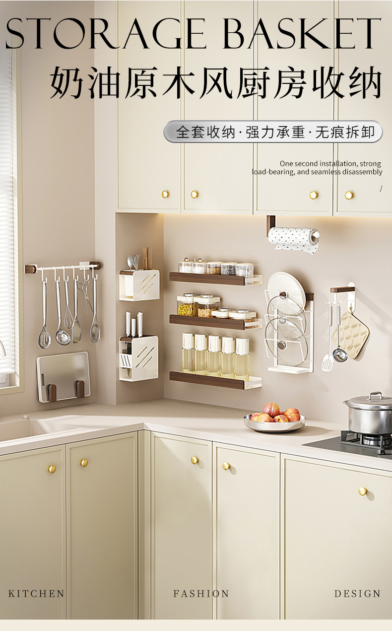 摩登主妇胡桃木厨房置物架壁挂式免打孔刀架锅盖多功能调料收纳架