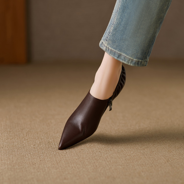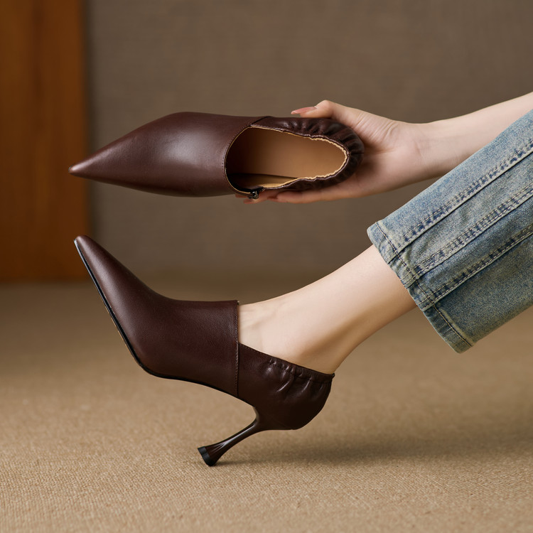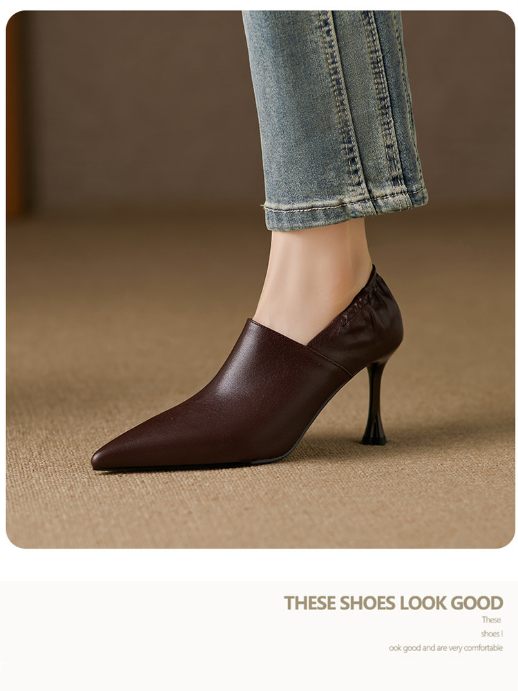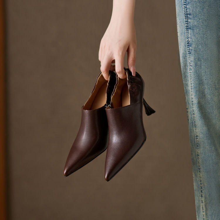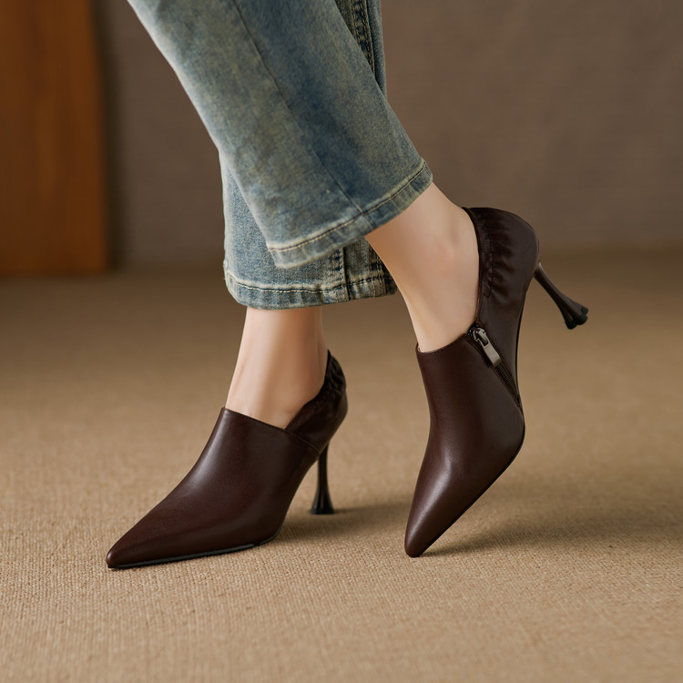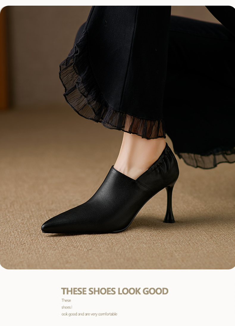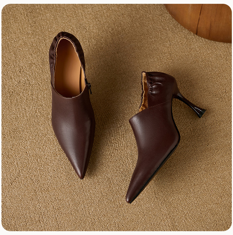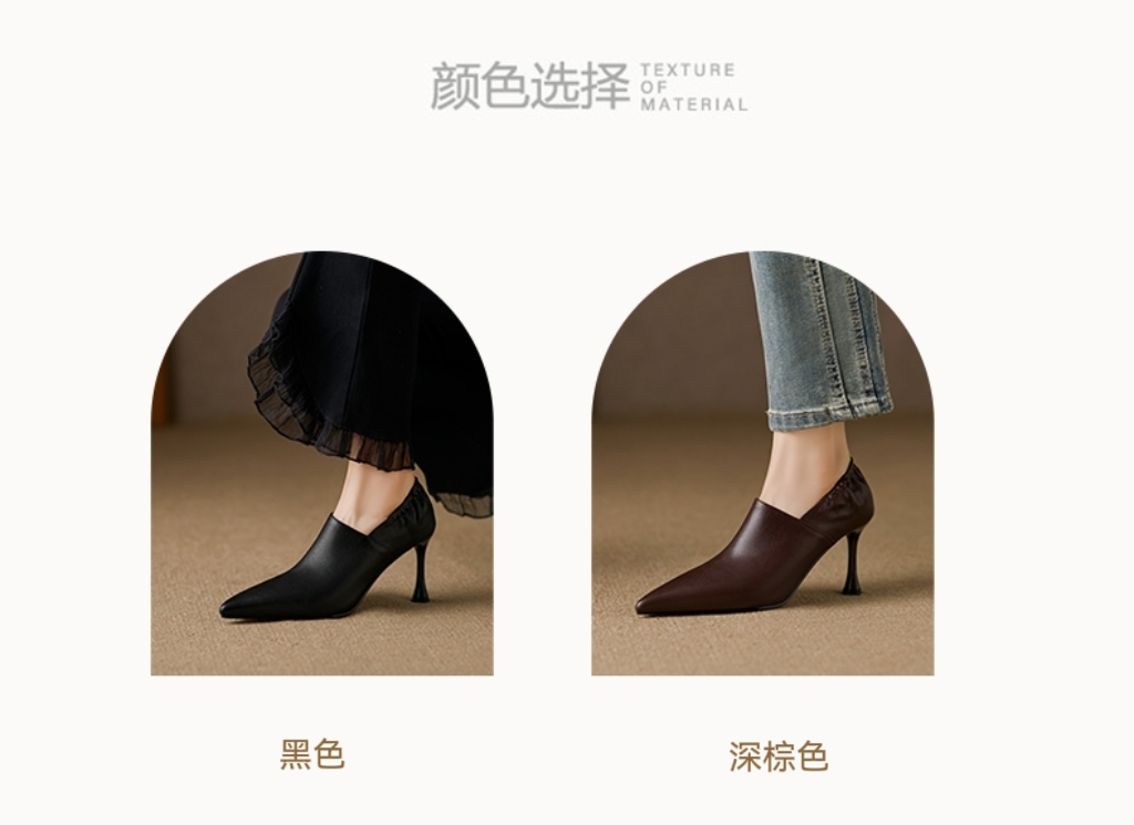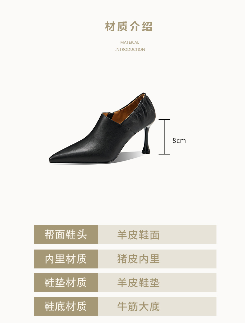 【鞋面材质】羊皮【鞋垫材质】猪皮【内里材质】羊皮【鞋底材质】牛筋底【跟 高】8.0cm【颜 色】黑色 深棕色【尺 码】34 35 36 37 38 39